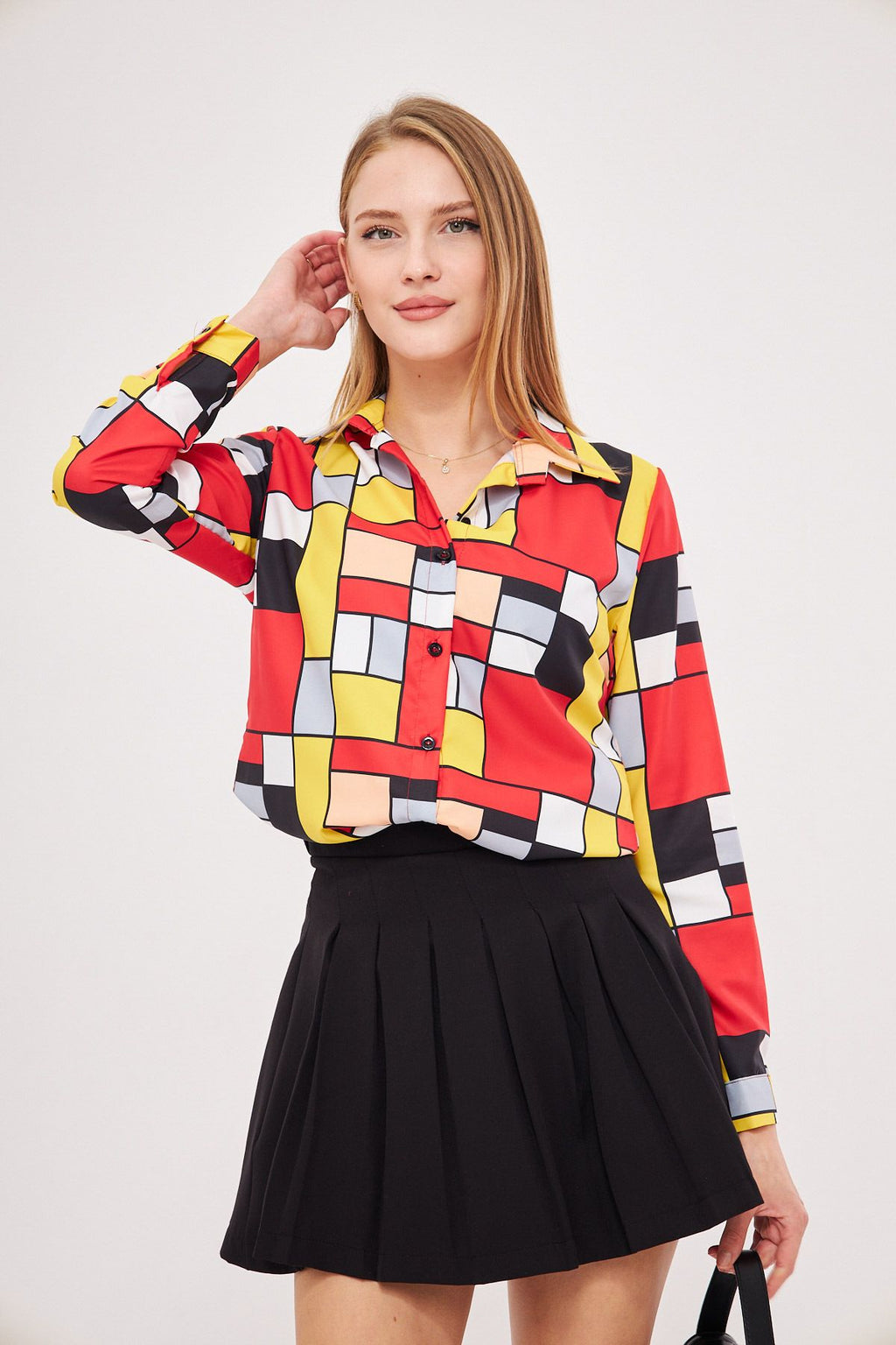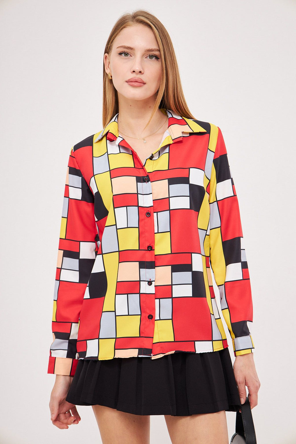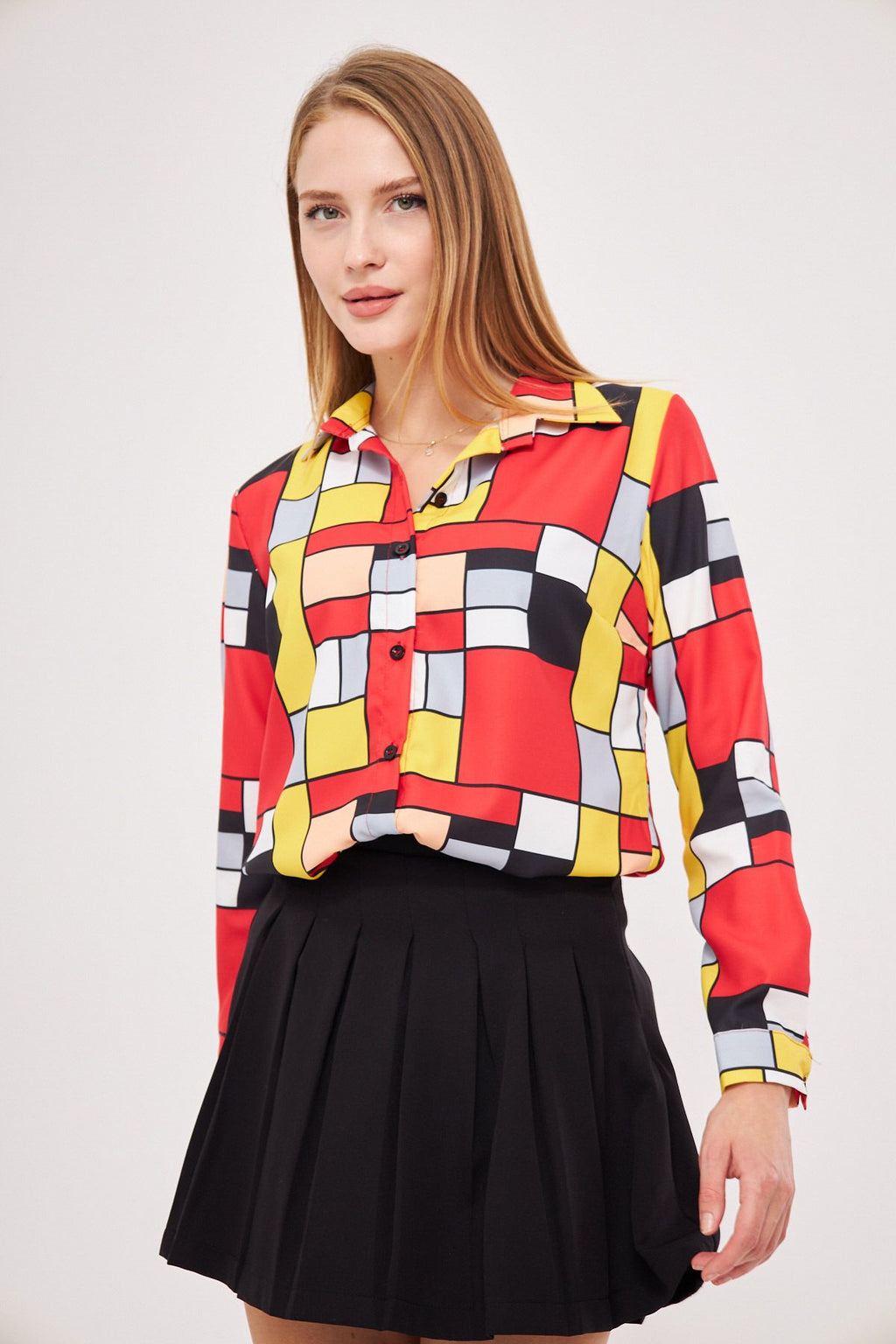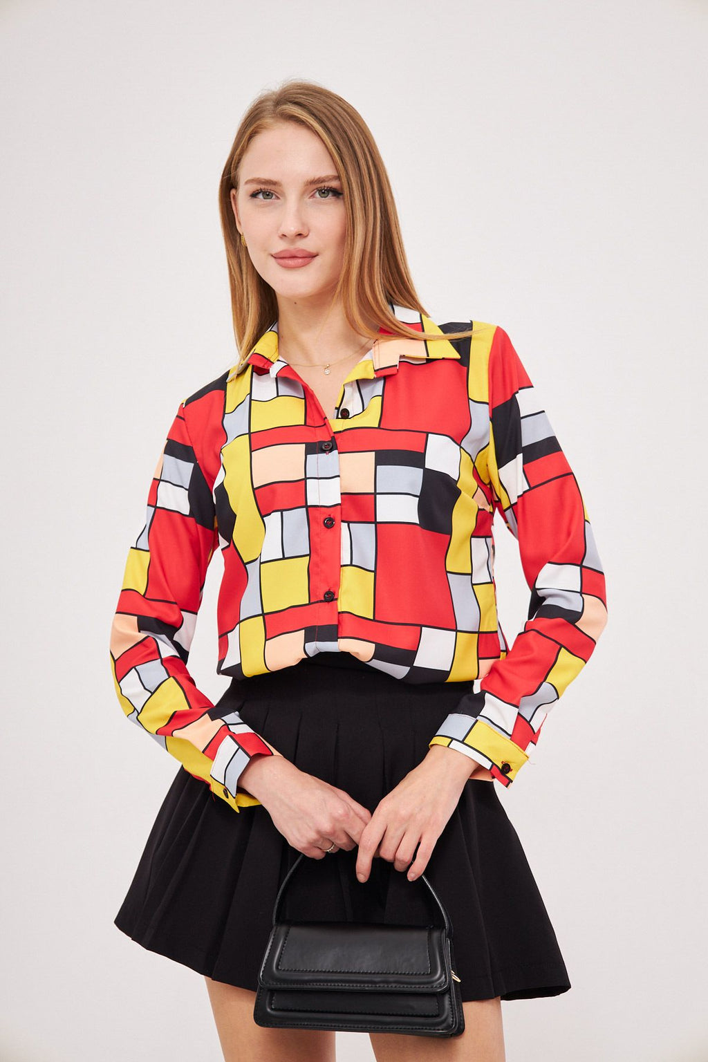 Woman Yellow Patterned Long Sleeve Shirt ARM-25K001040