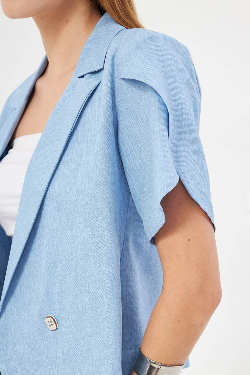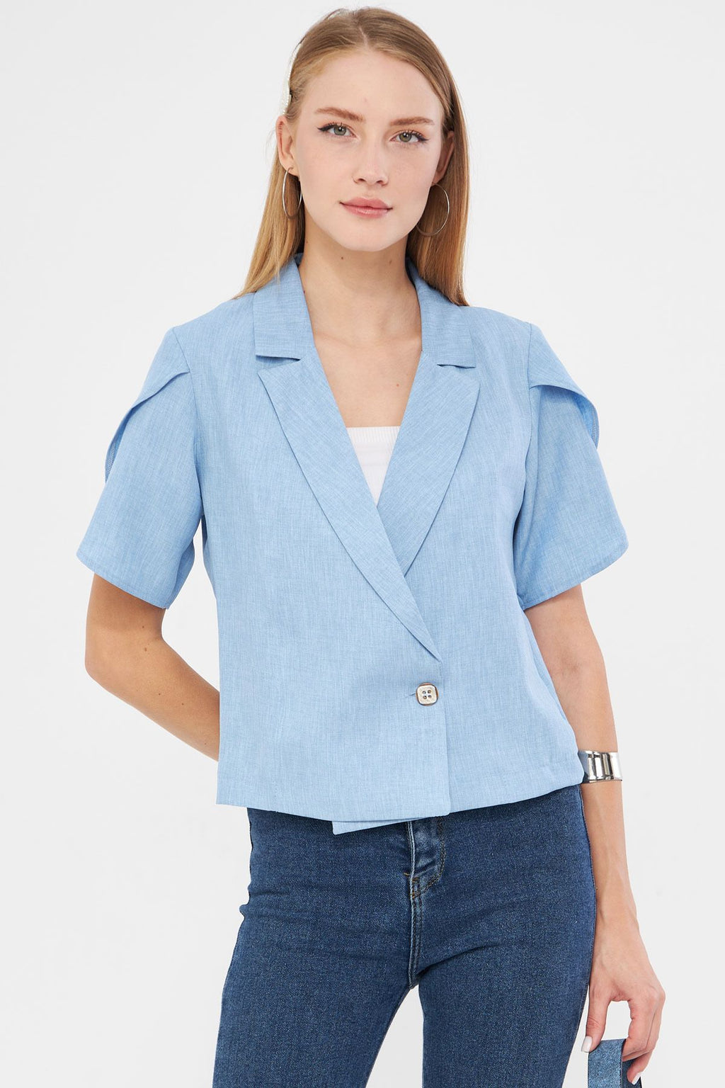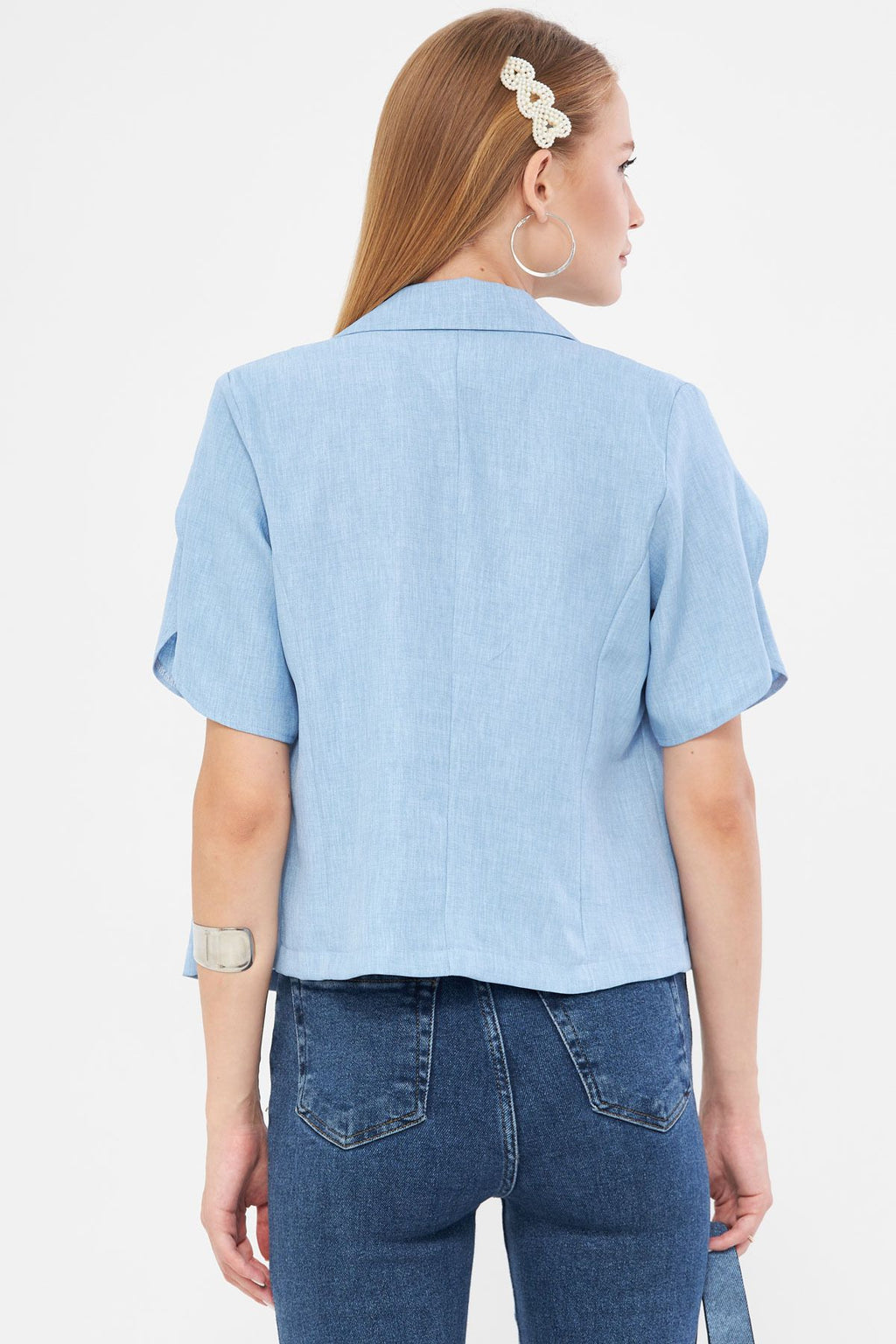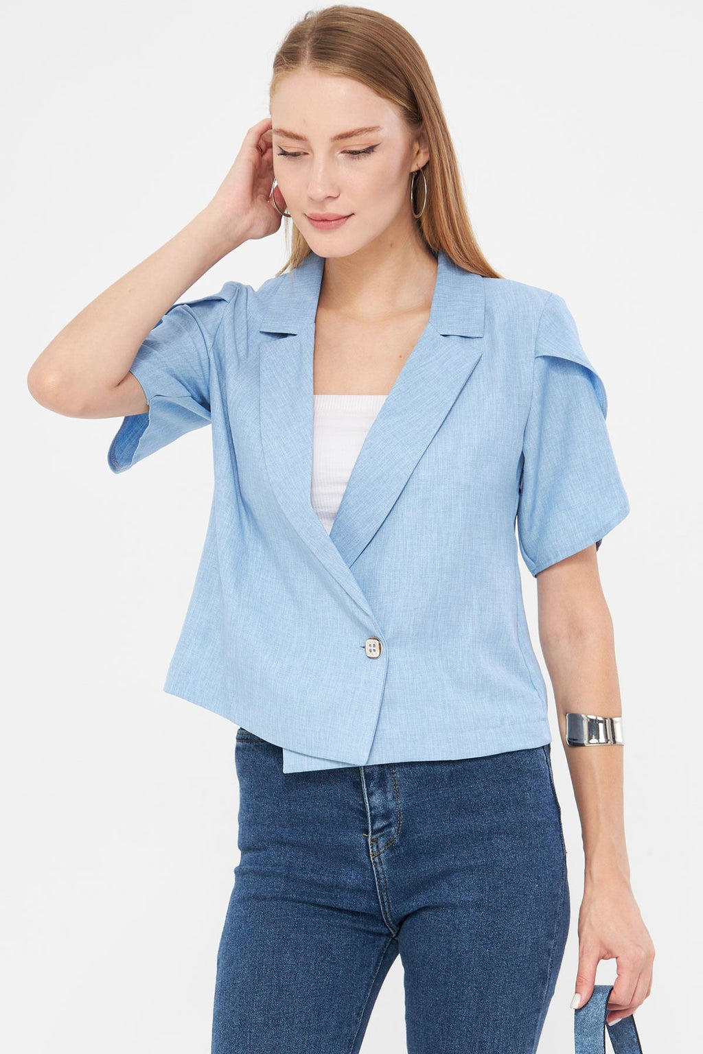 WOMEN BABY BLUE BLACK SPRING DETAILED Crop Short Sleeve Jacket ARM-24Y001048