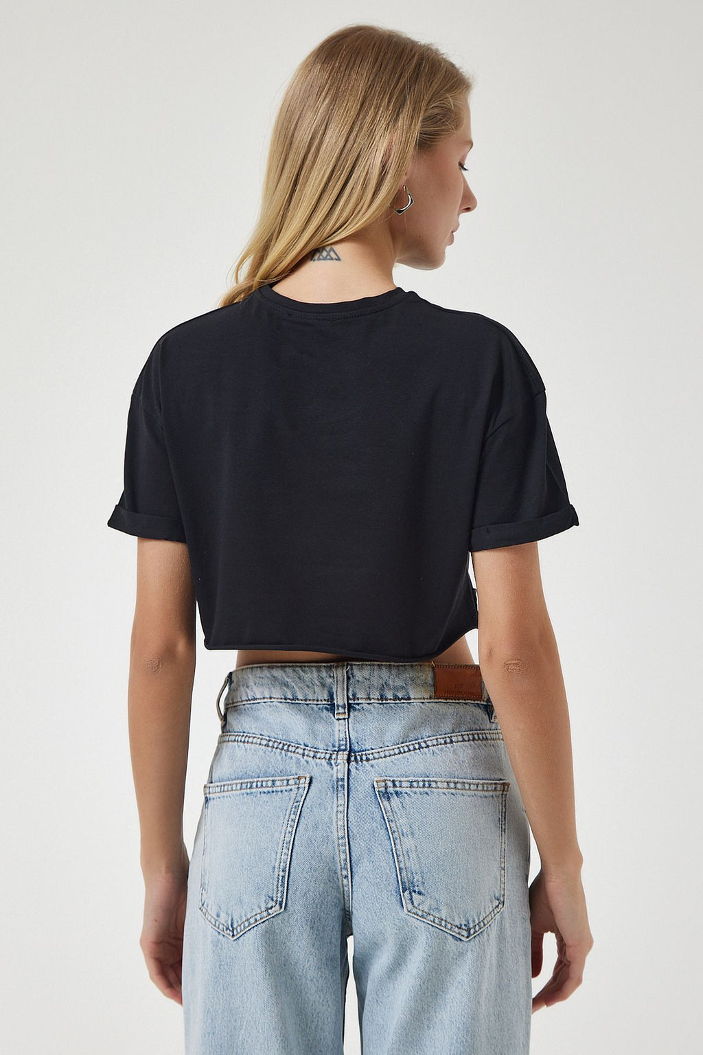 WOMEN BLACK BICYCLE BASIC CROP knitting T-shirt HW00004