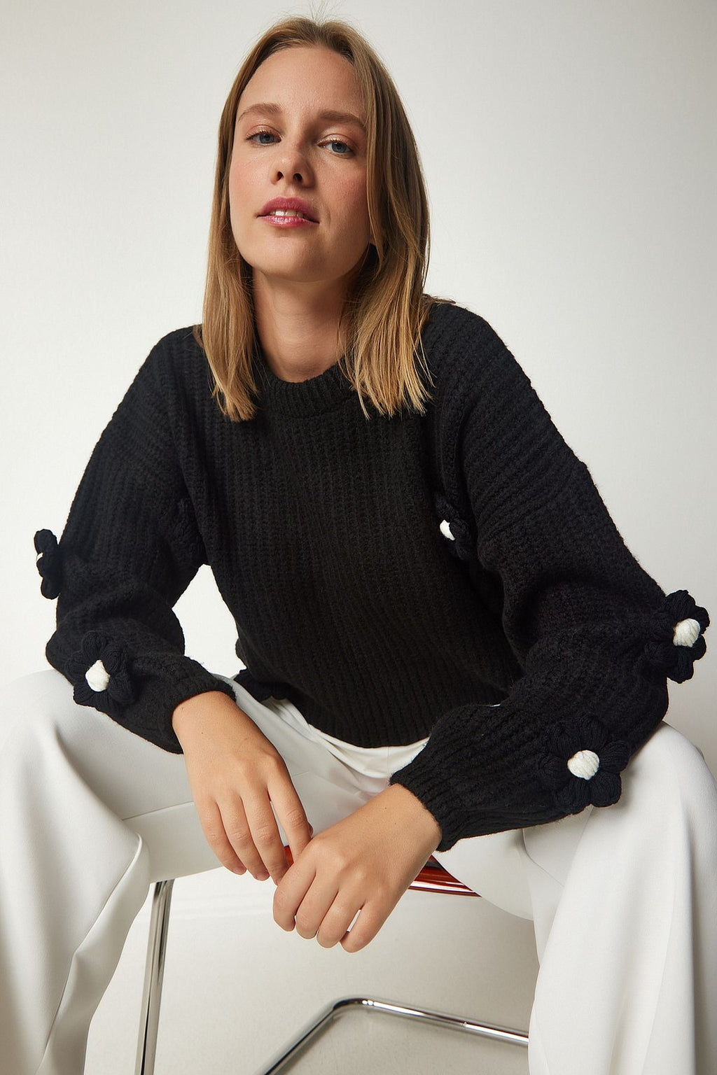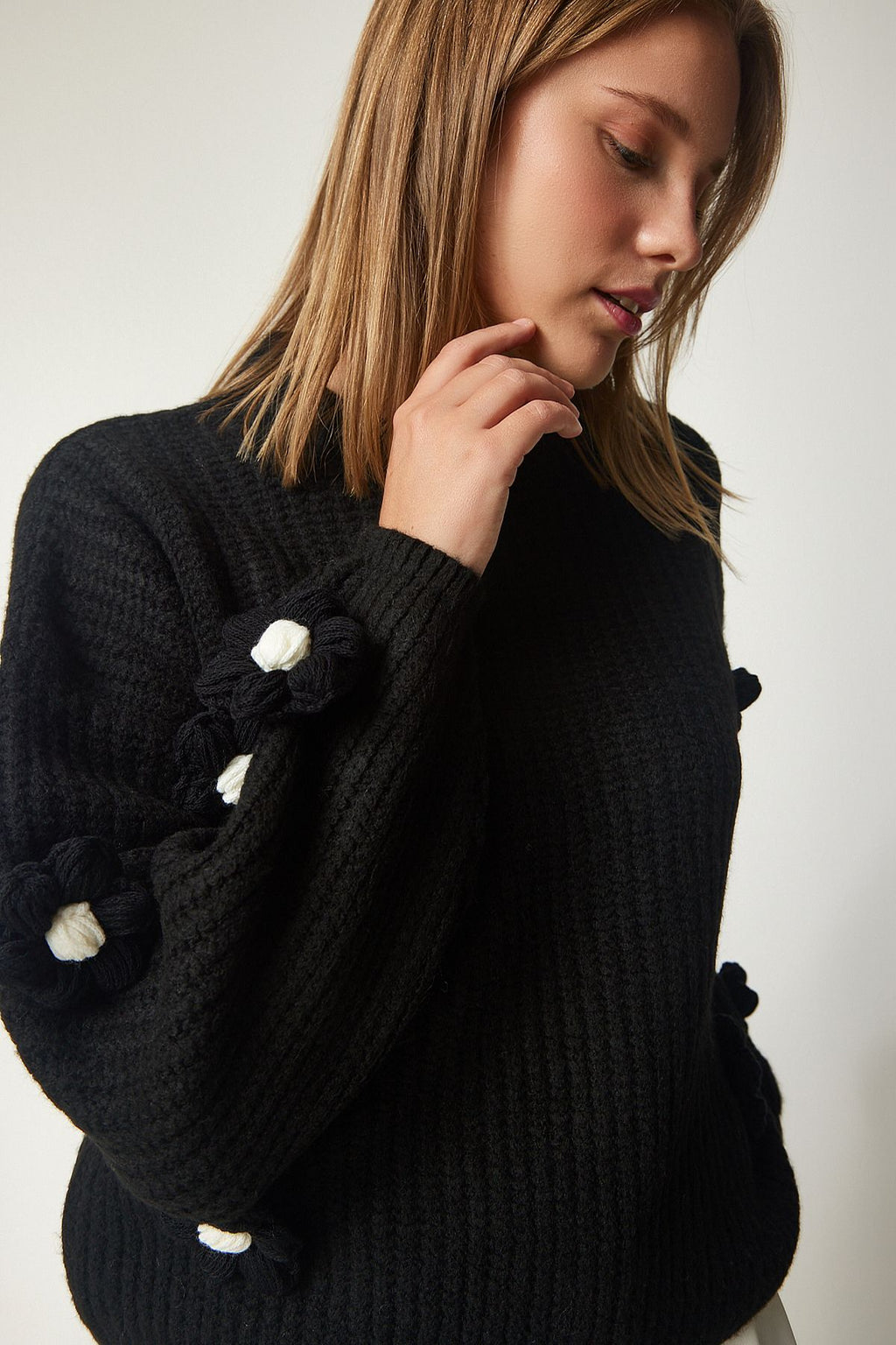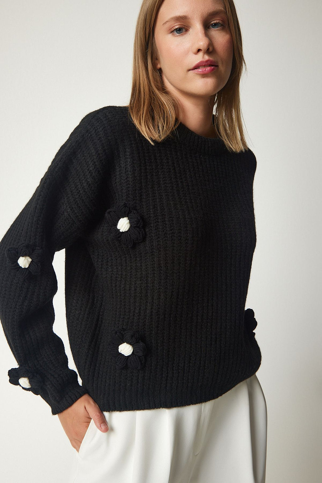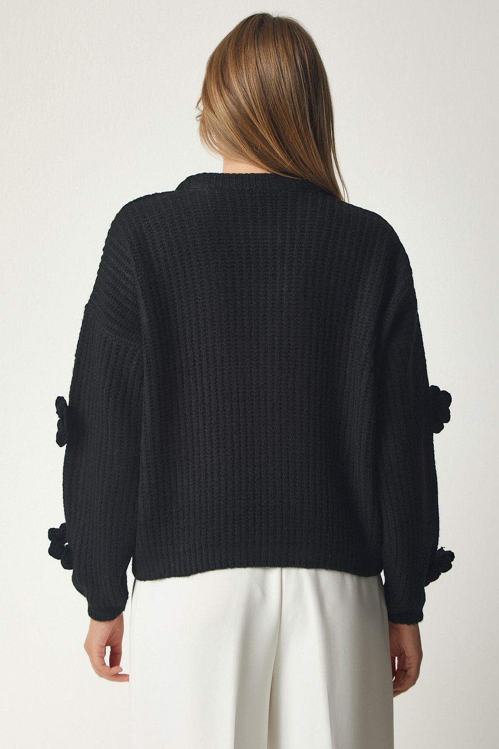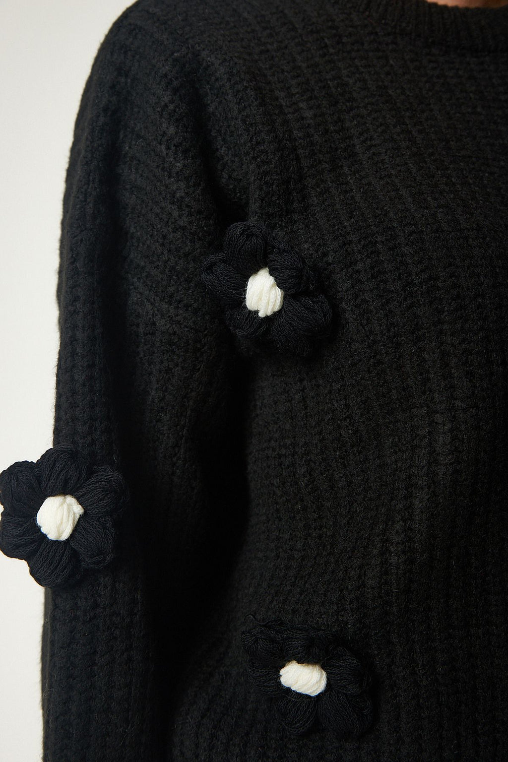 WOMEN BLACK FLOWER ACCESSORIES OVERSIZE knitwear sweater PF00031