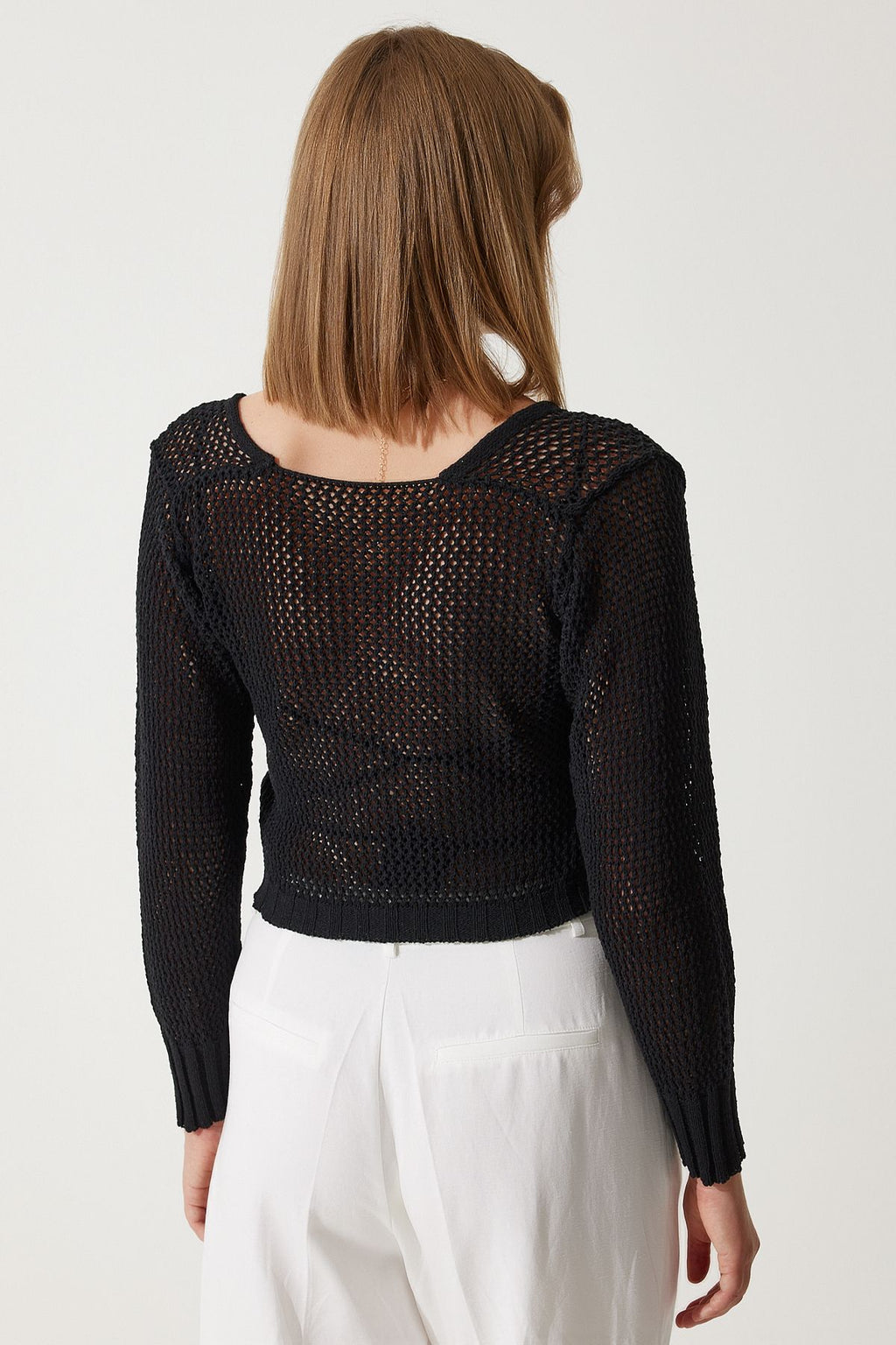 WOMEN BLACK HAPPY CROP knitwear blouse yy00212