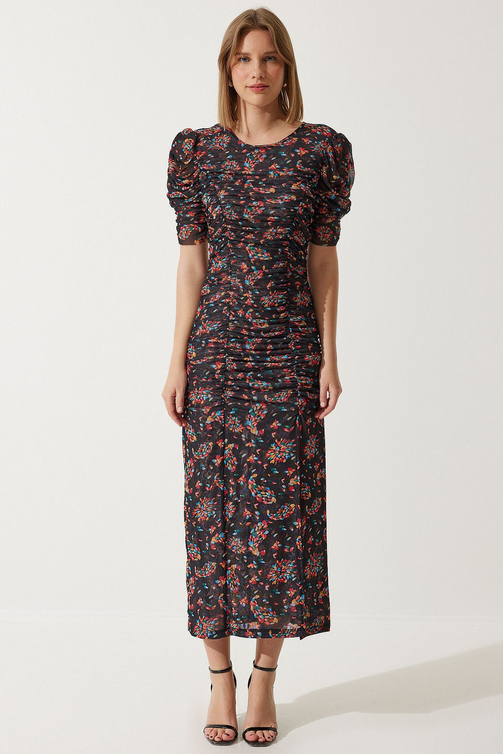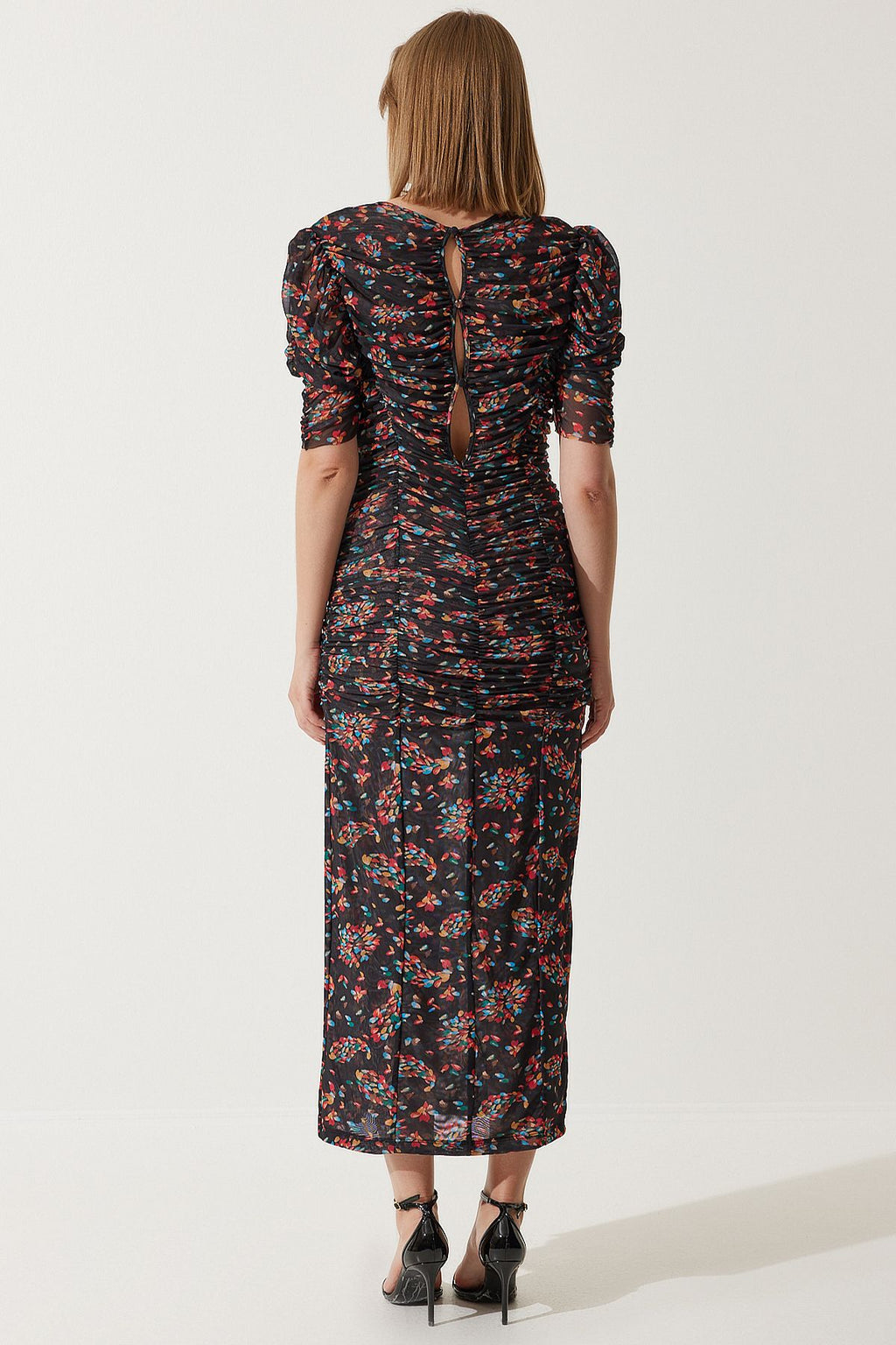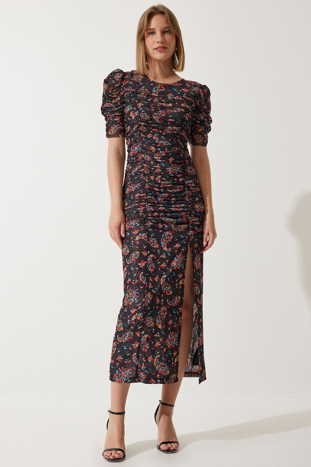 WOMEN BLACK SLIDED FLOWER TULL DRESS WO00040