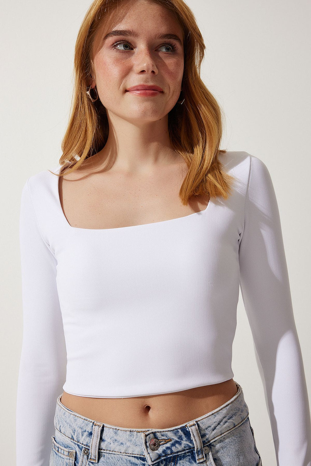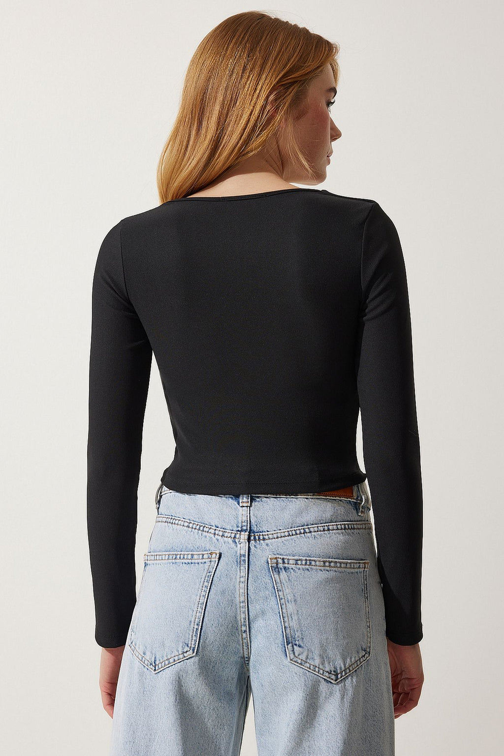 WOMEN BLACK WHITE SQUARE YAKA VURT 2 PC Package Crop knitted blouse AN00180