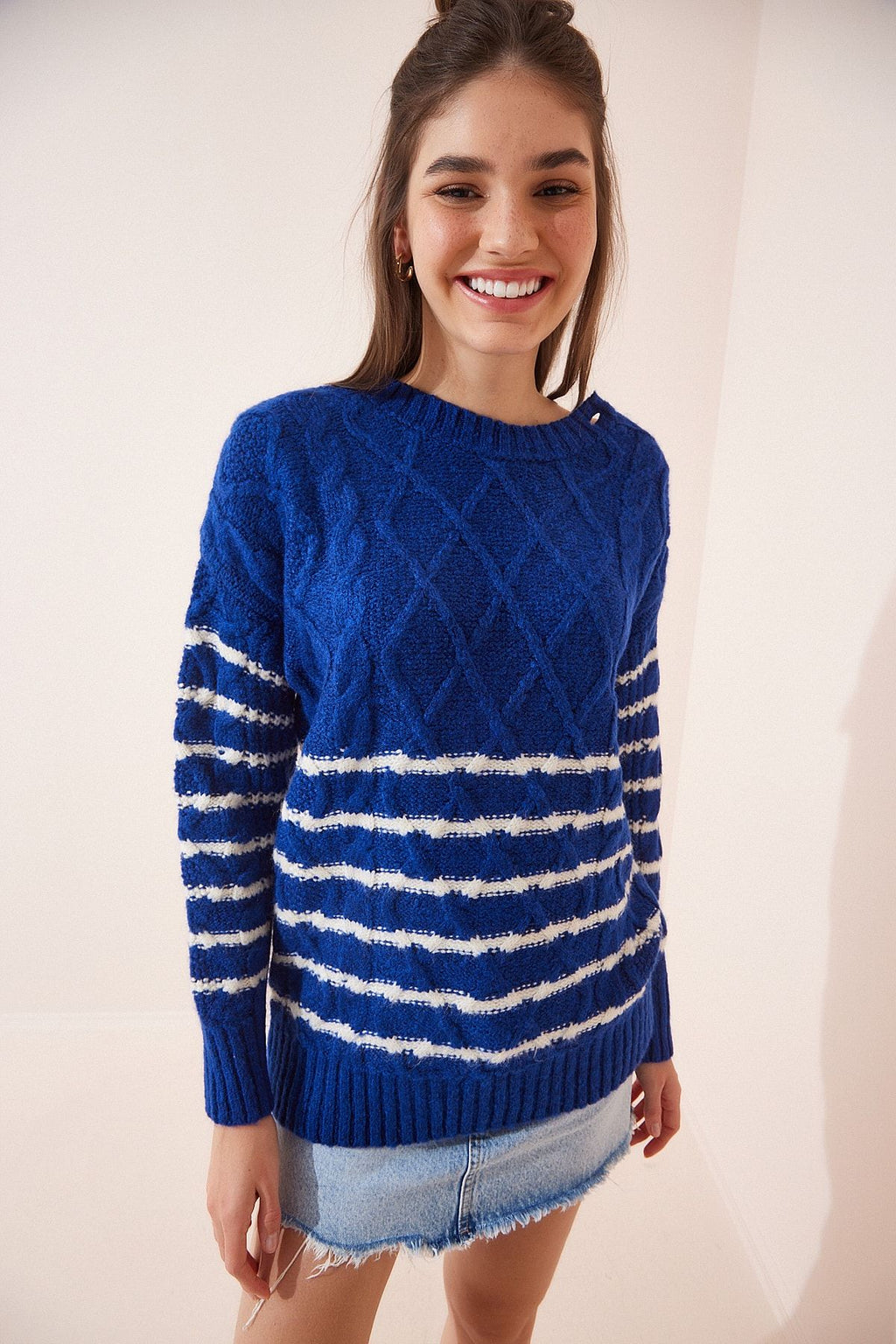 WOMEN BLUE SHOOT DETAILED TRIKO Sweater LX00039