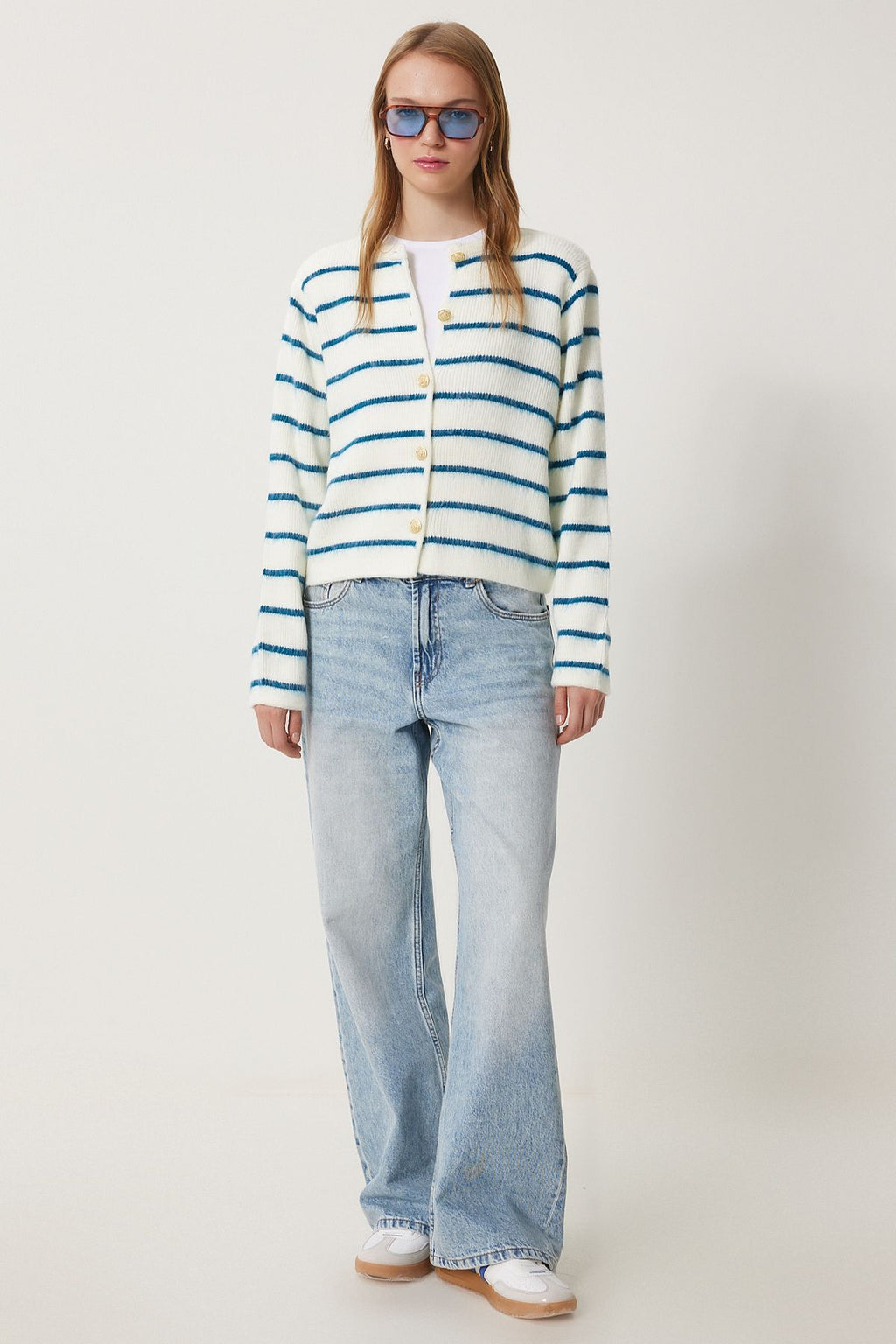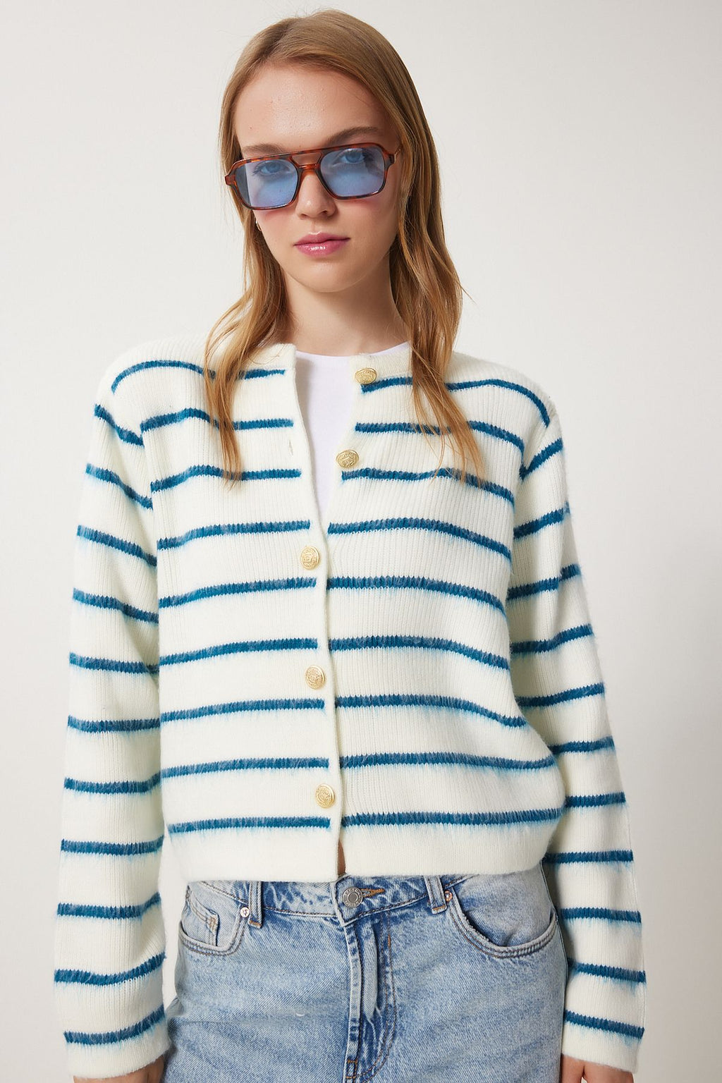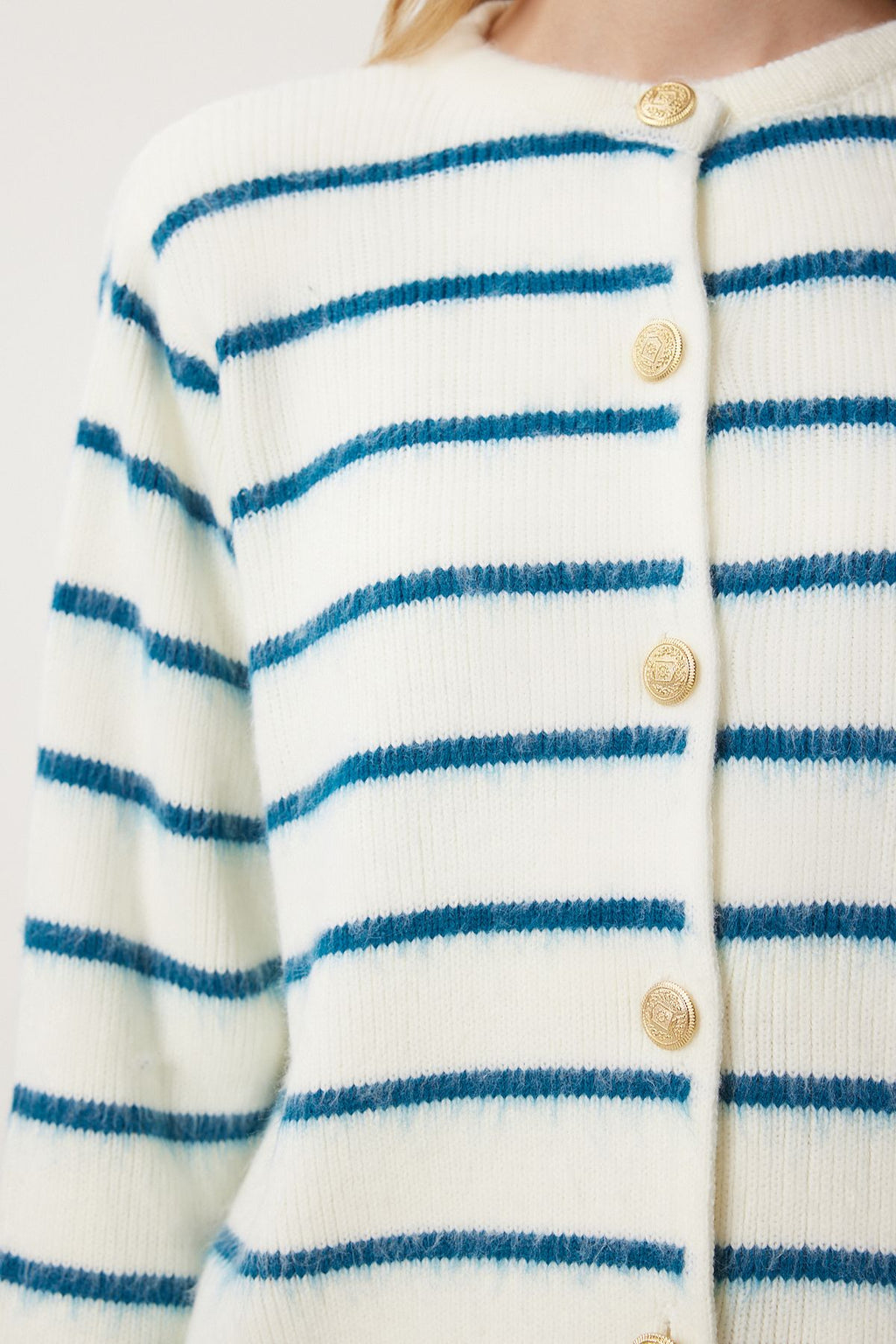 WOMEN BONE BLACK BLUE CHIC button striped knitwear cardigan PF00051