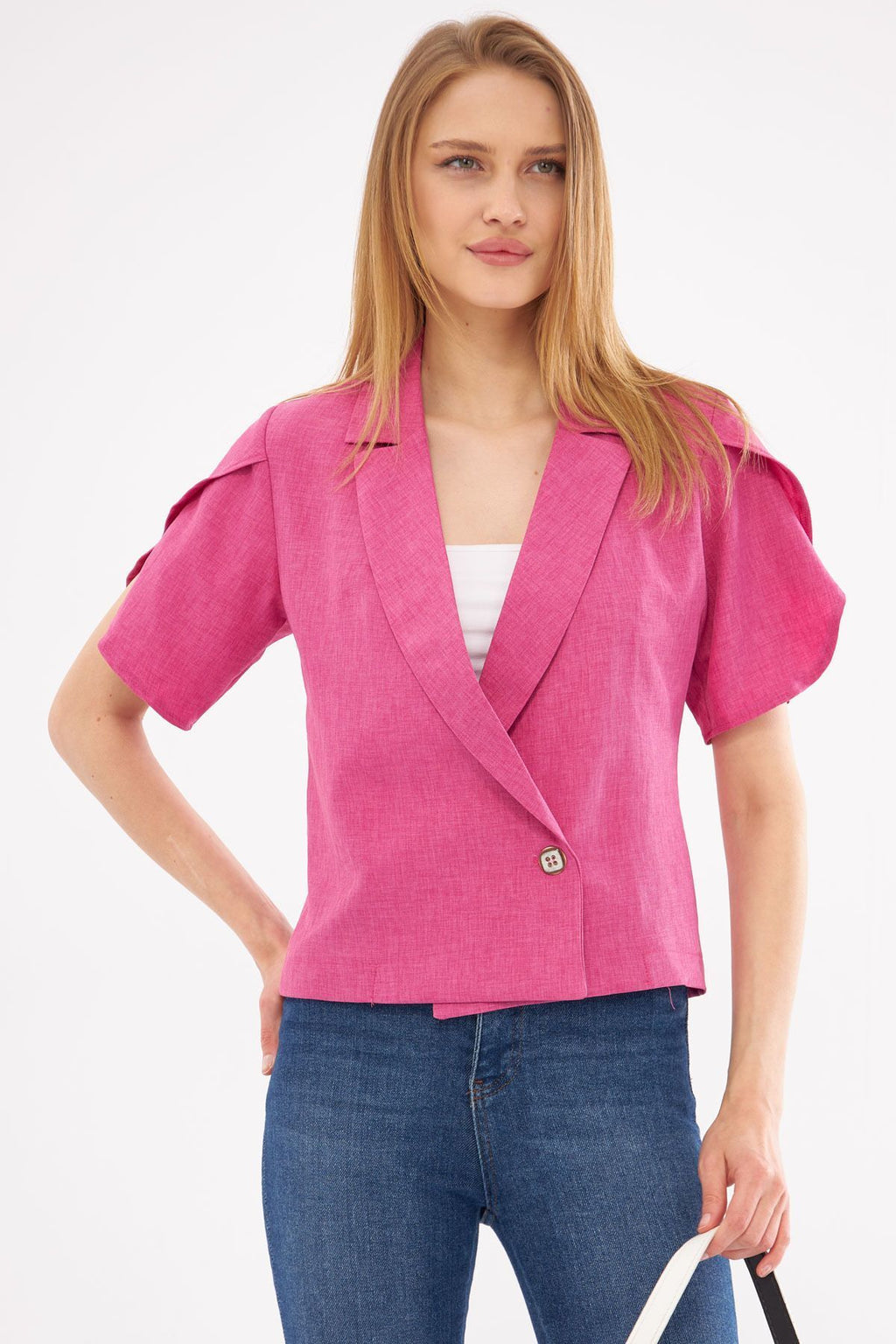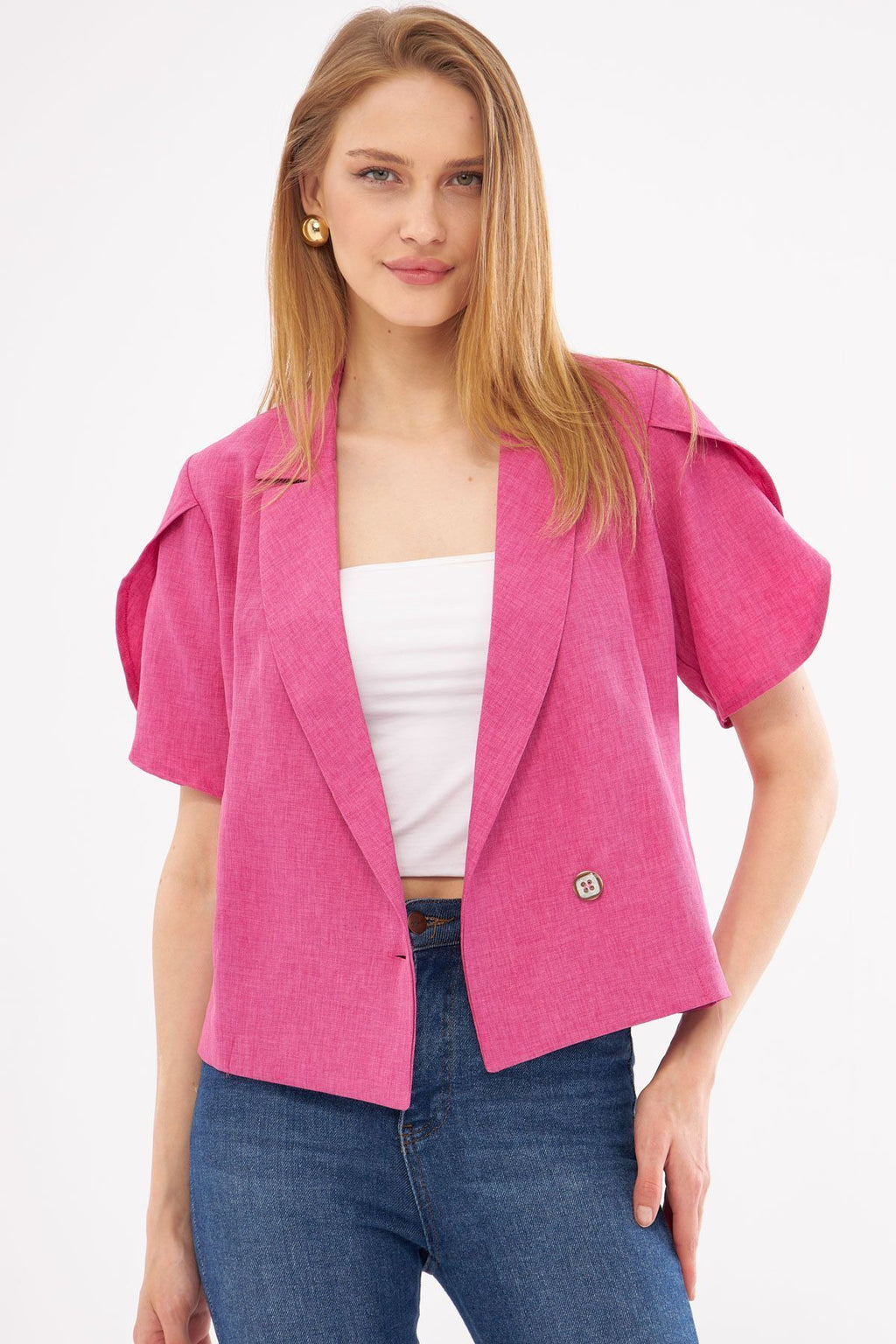 WOMEN EFLATUN AROUND SPRING DETAILED Crop Short Sleeve Jacket ARM-24Y001048