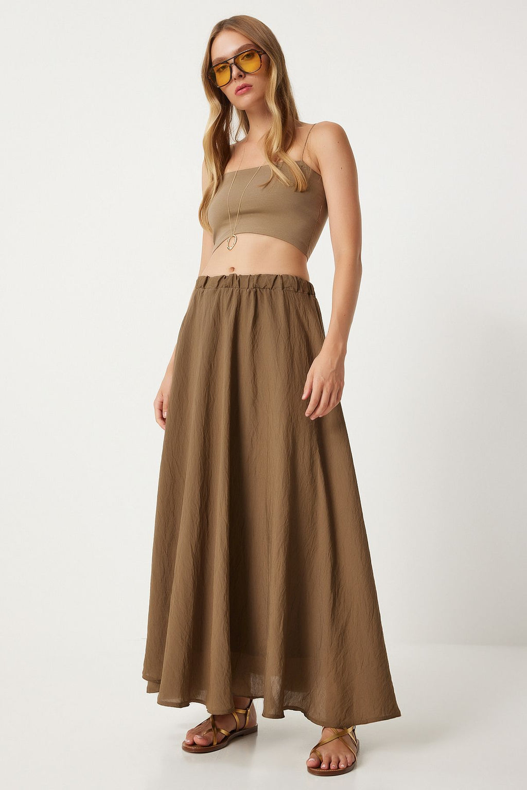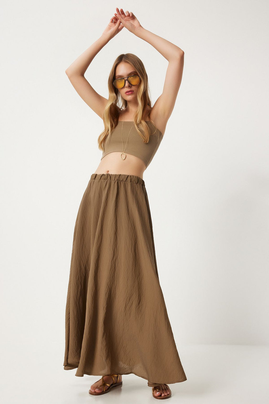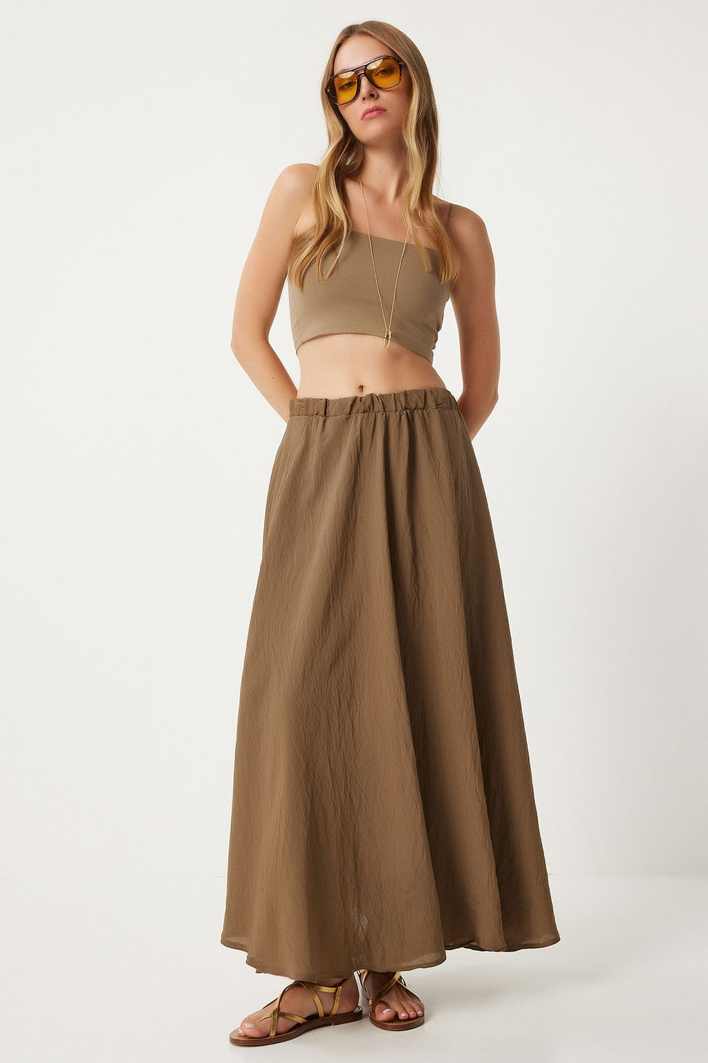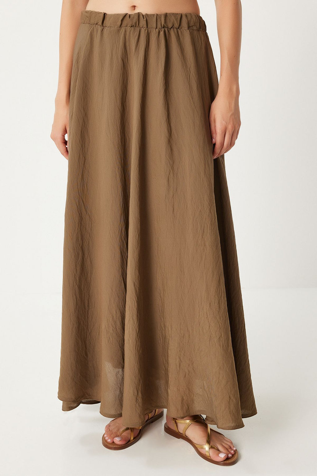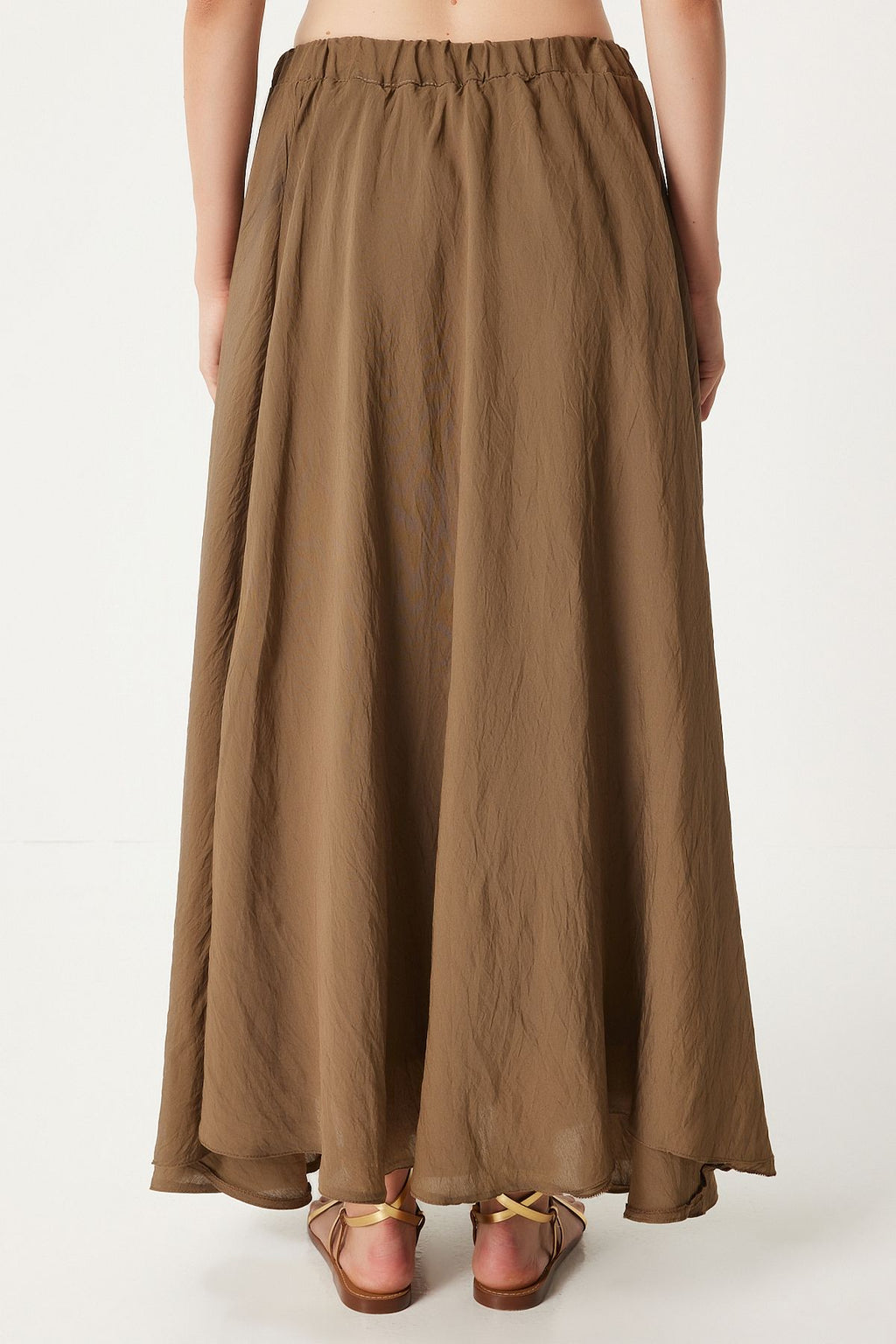 Women Khaki Flax Long Skirt with Linen Mixed DP00209