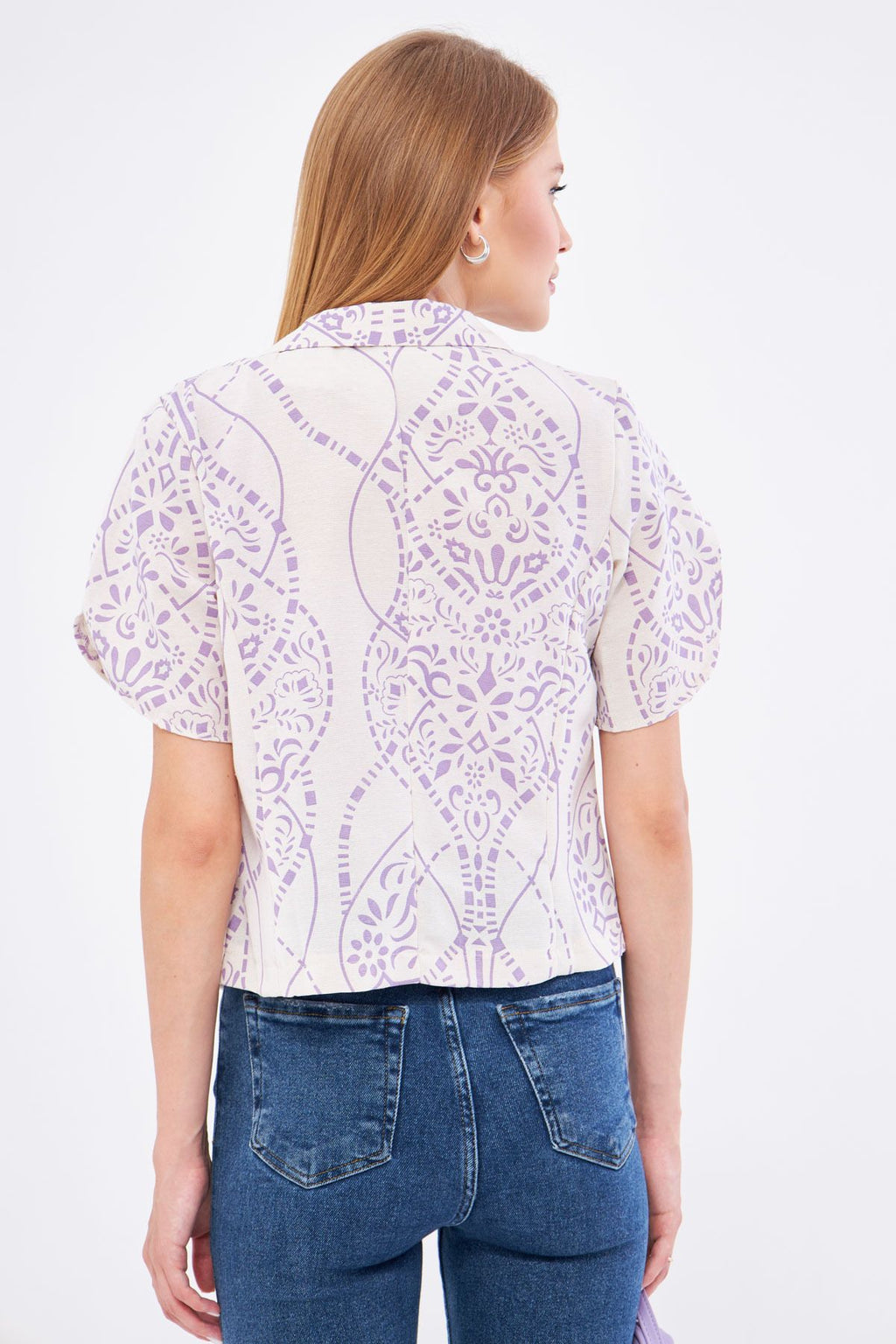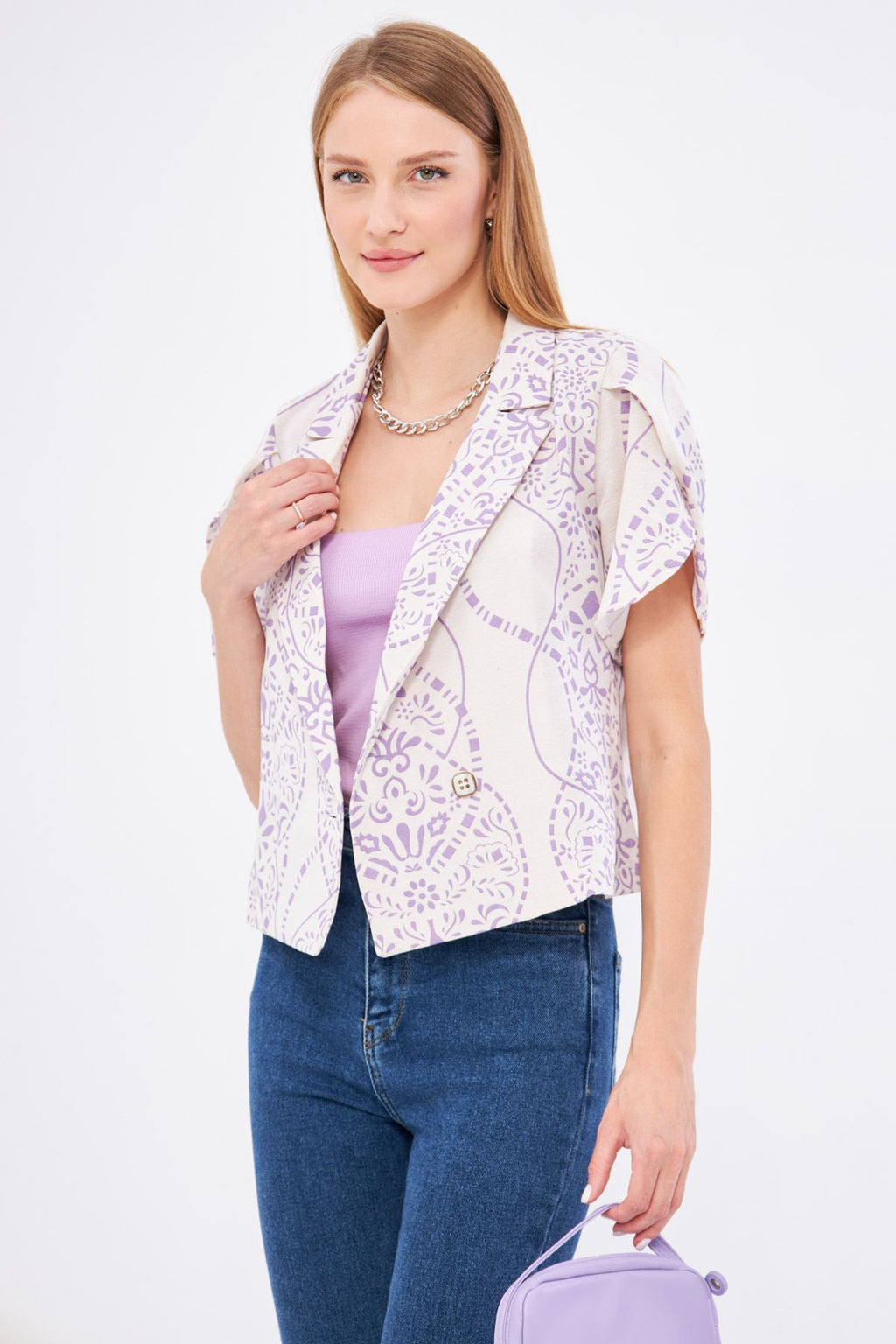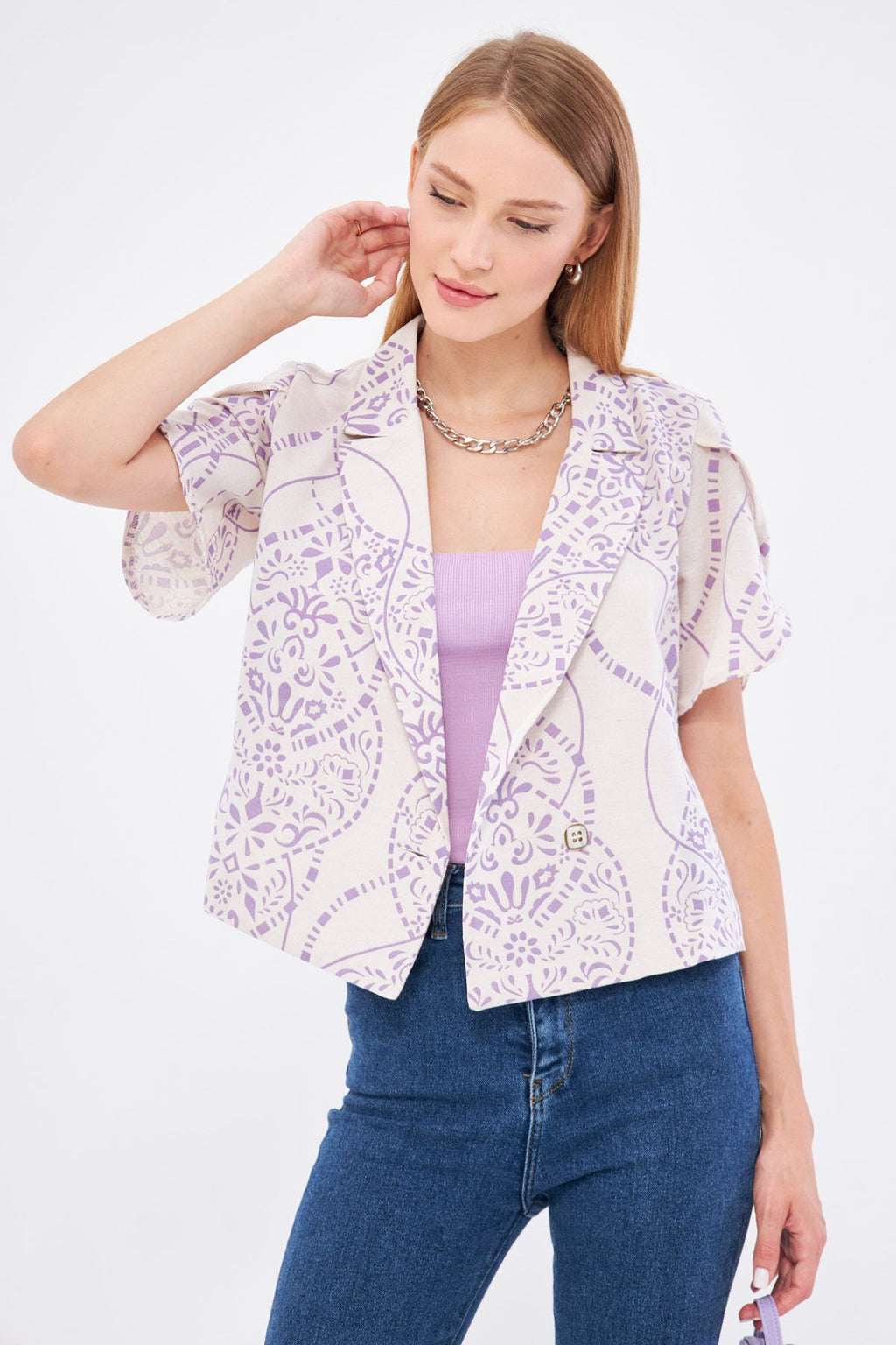 WOMEN OPEN LIL LIL LINE PATTERNED BLACK SLAMED CROP SHORT SOLD JACKET ARM-24Y001095
