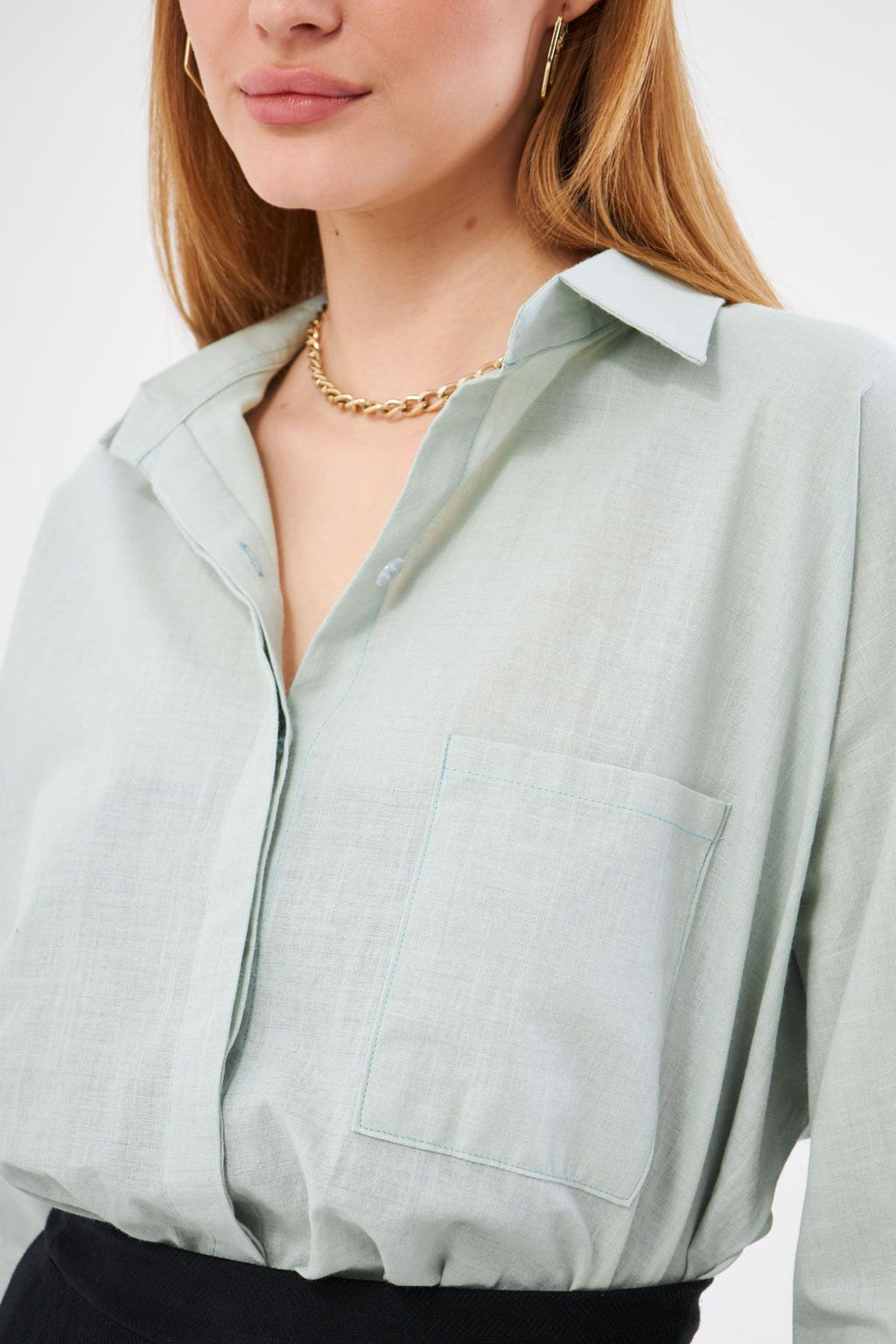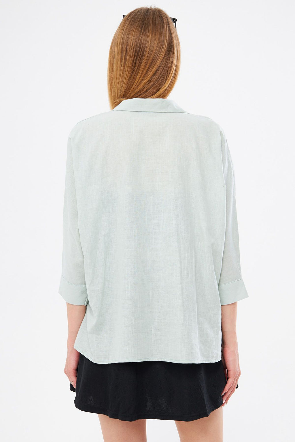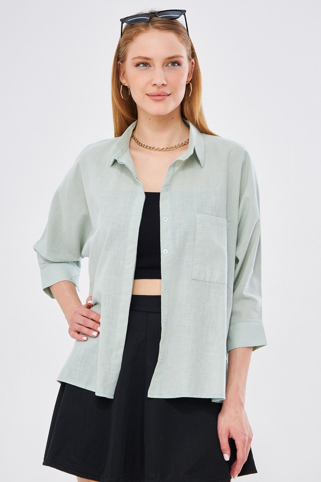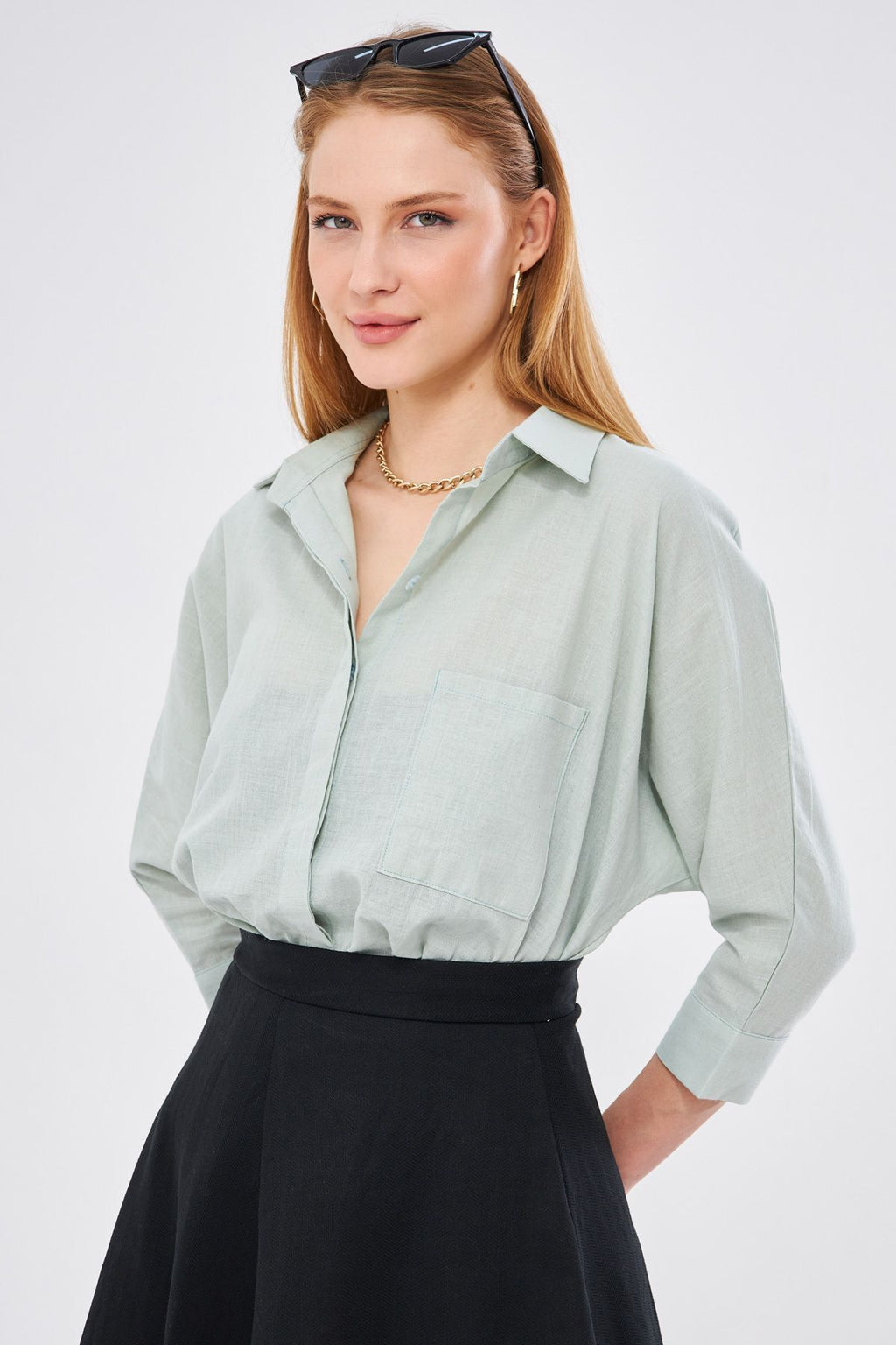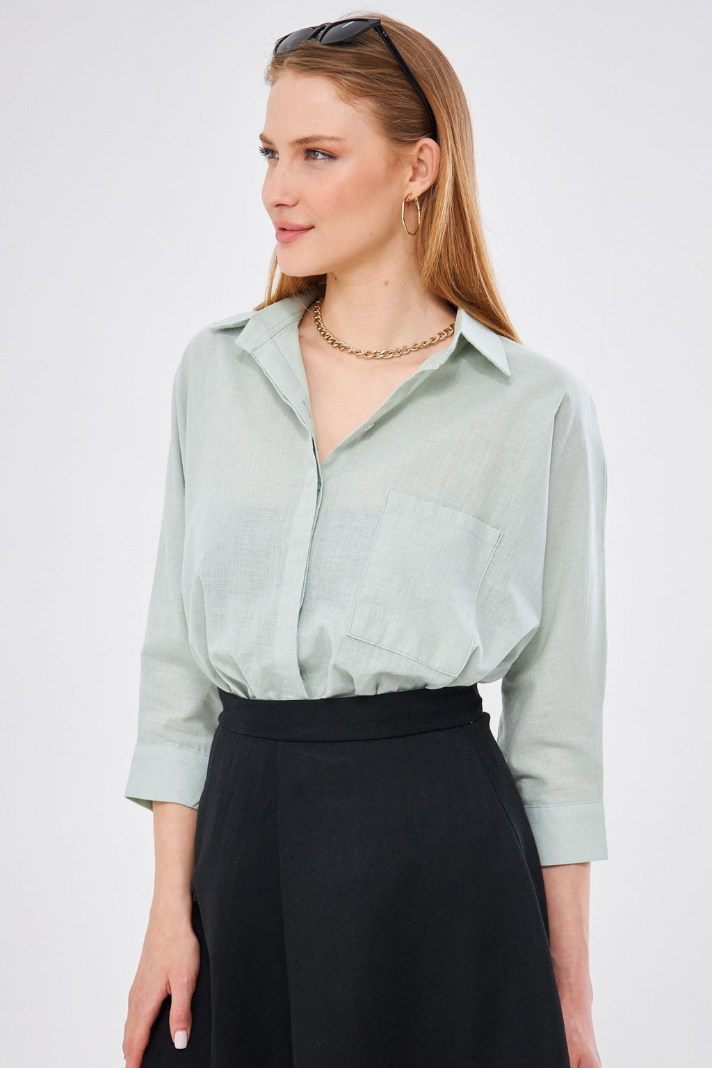 WOMEN OPEN MINT POCKET POET SET Linen Shirt ARM-21Y001035