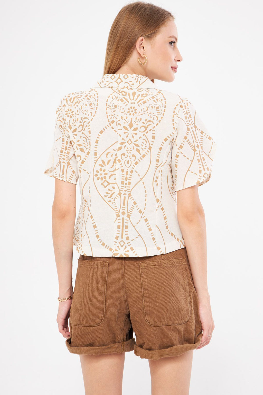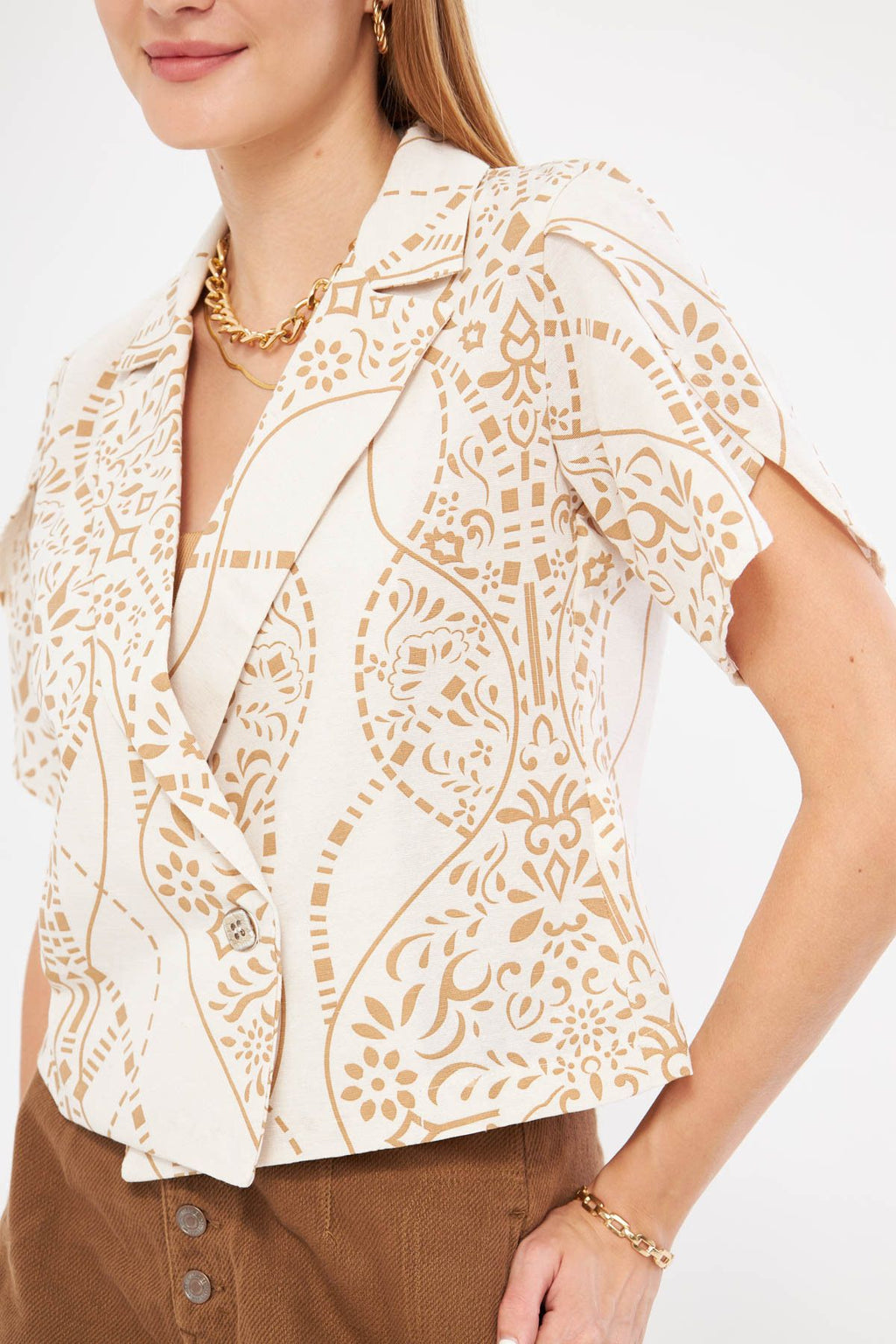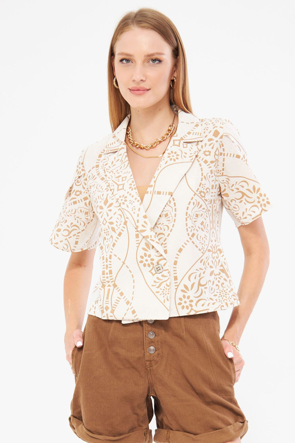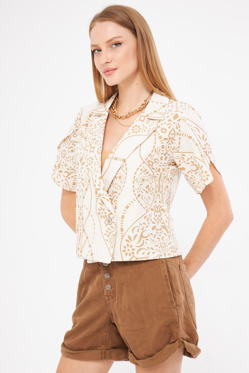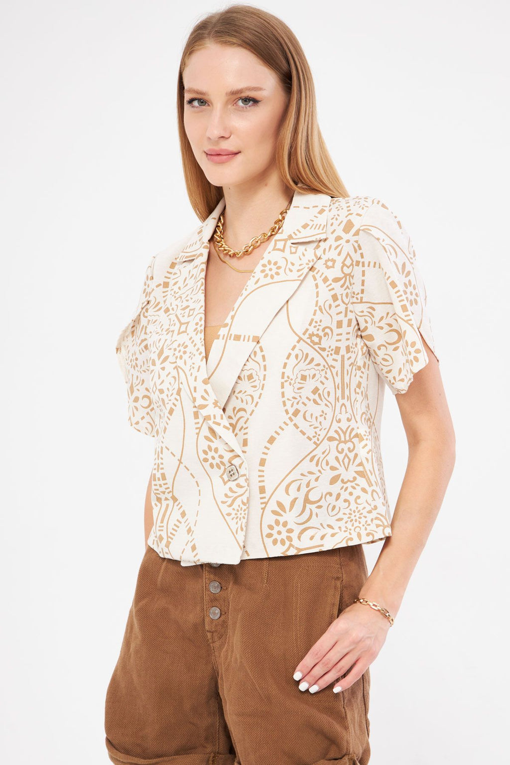 WOMEN OPEN MISSING FLY FLET-LEATED PATTERN Handle Slit Crop Short Sleeve Jacket ARM-24Y001095