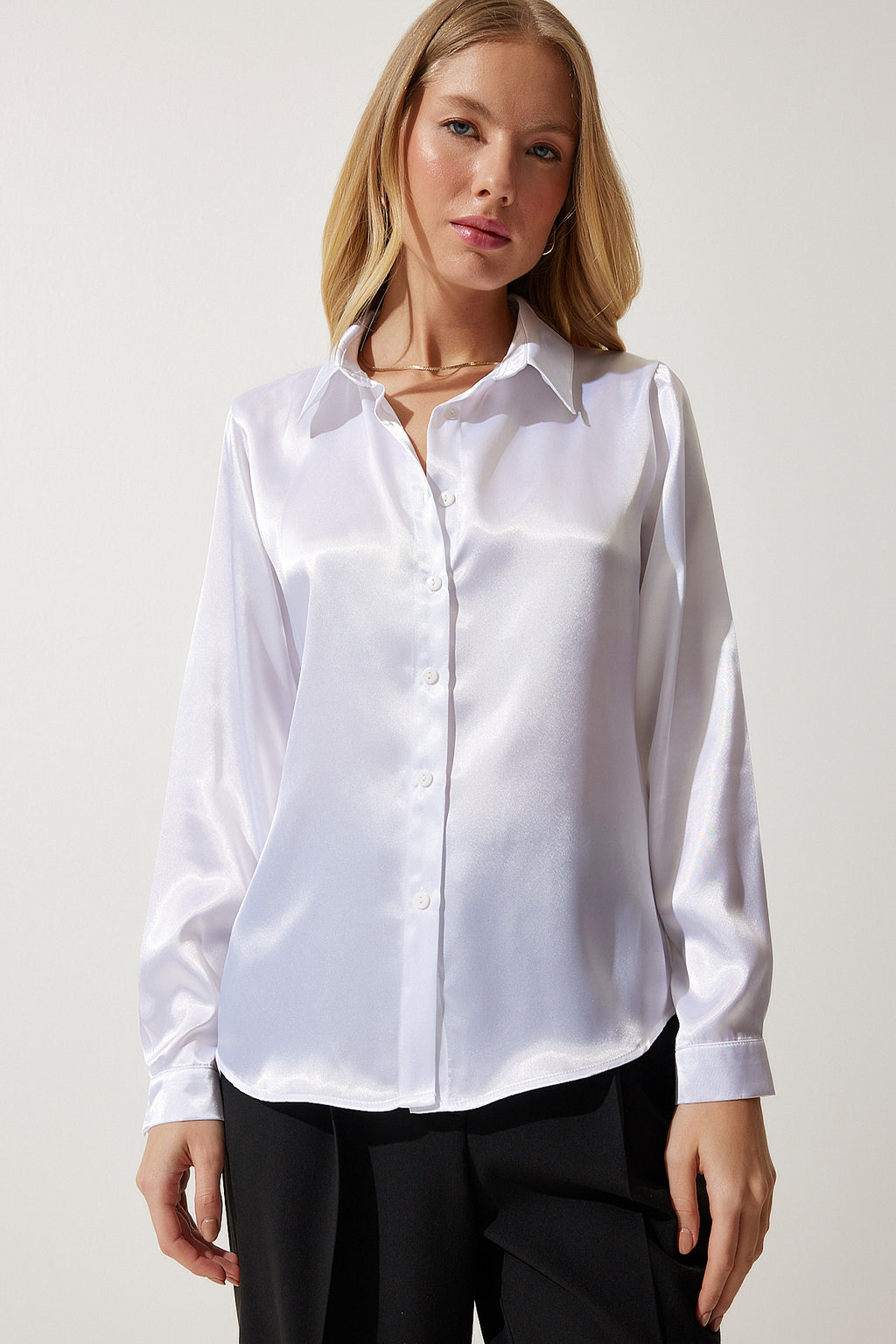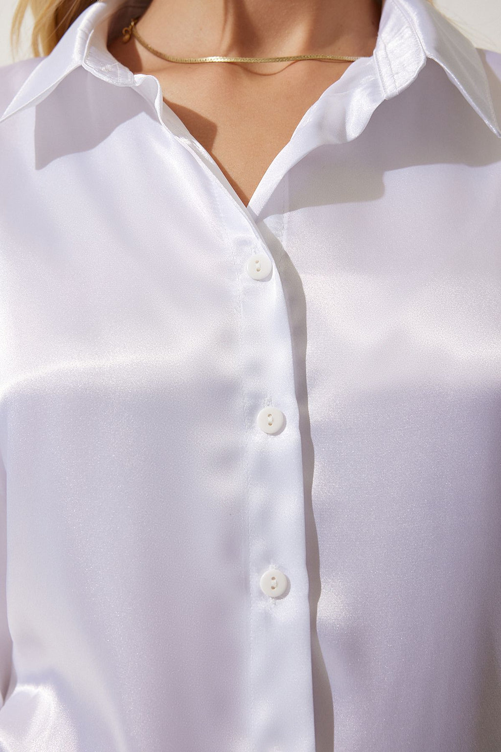 WOMEN WHITE LIGHTED SATIN SOLUTION SHIRT DD00990