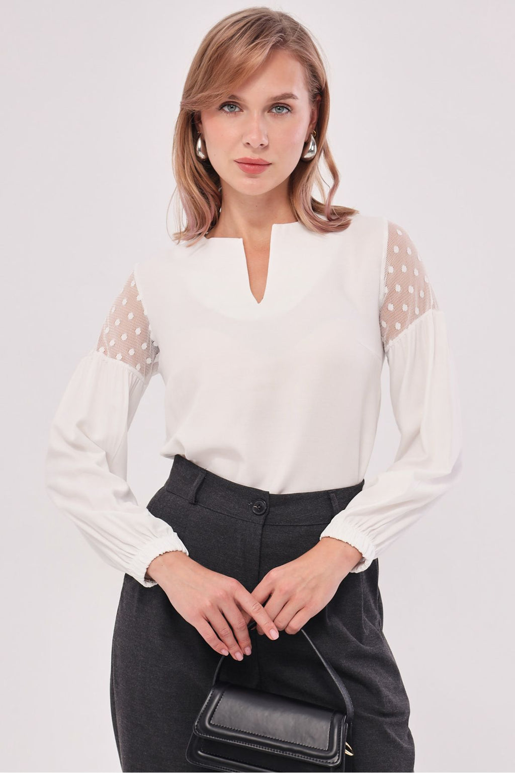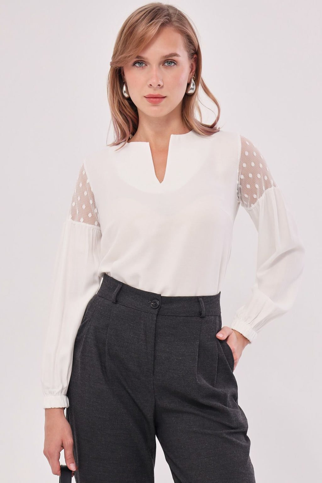 WOMEN WHITE V-YAR ARM TULLLU BALLOON BLOSE ARM-20K001038