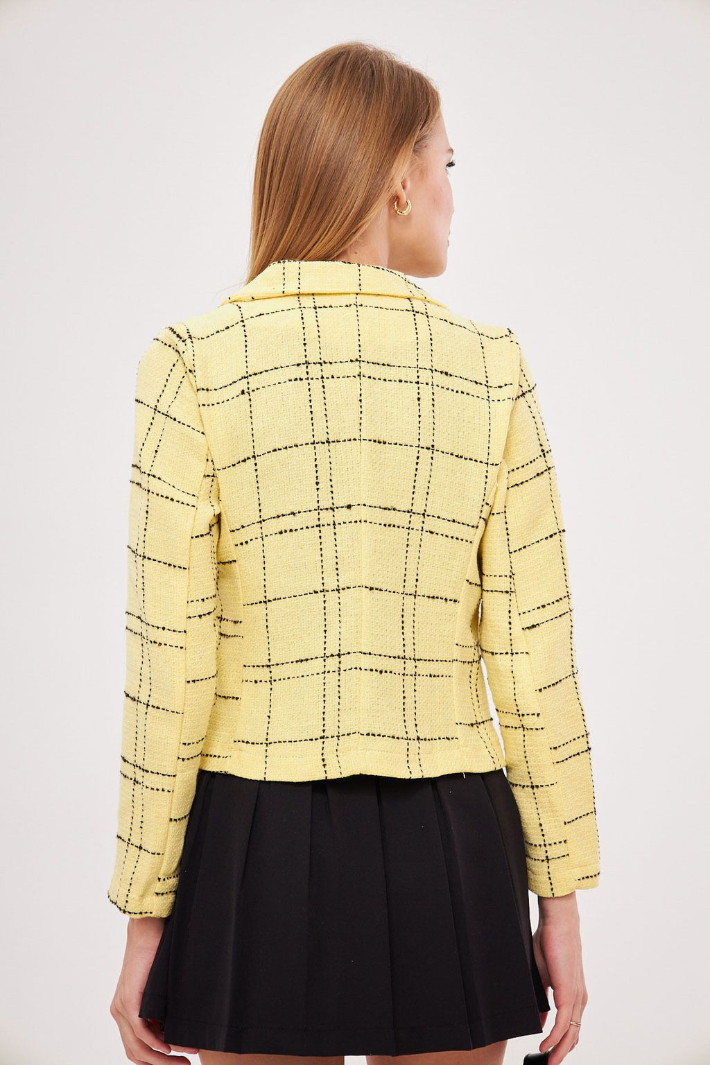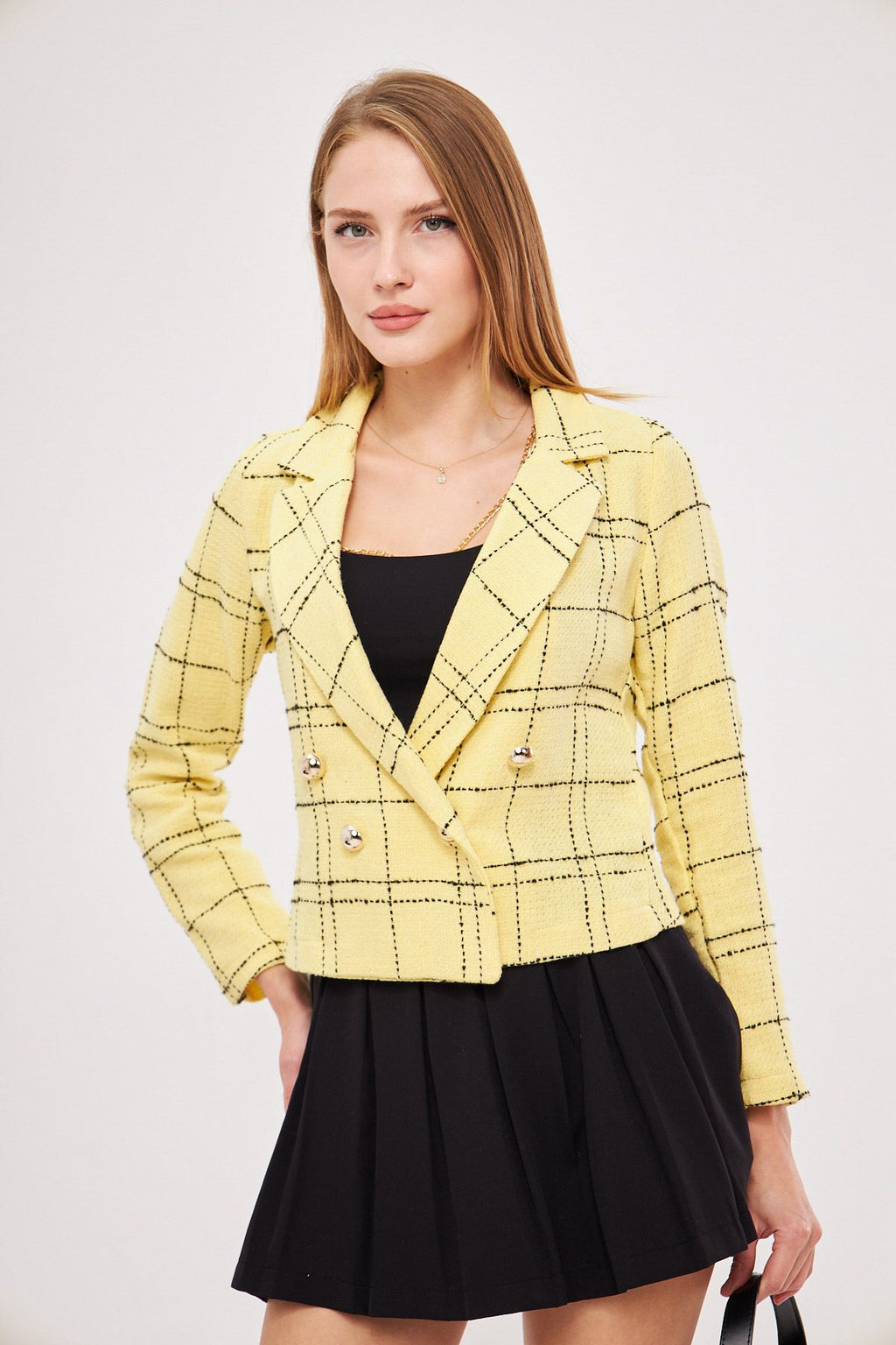 WOMEN Yellow-Black Cruve Yaka Tüvit Crop Jacket ARM-24K001014