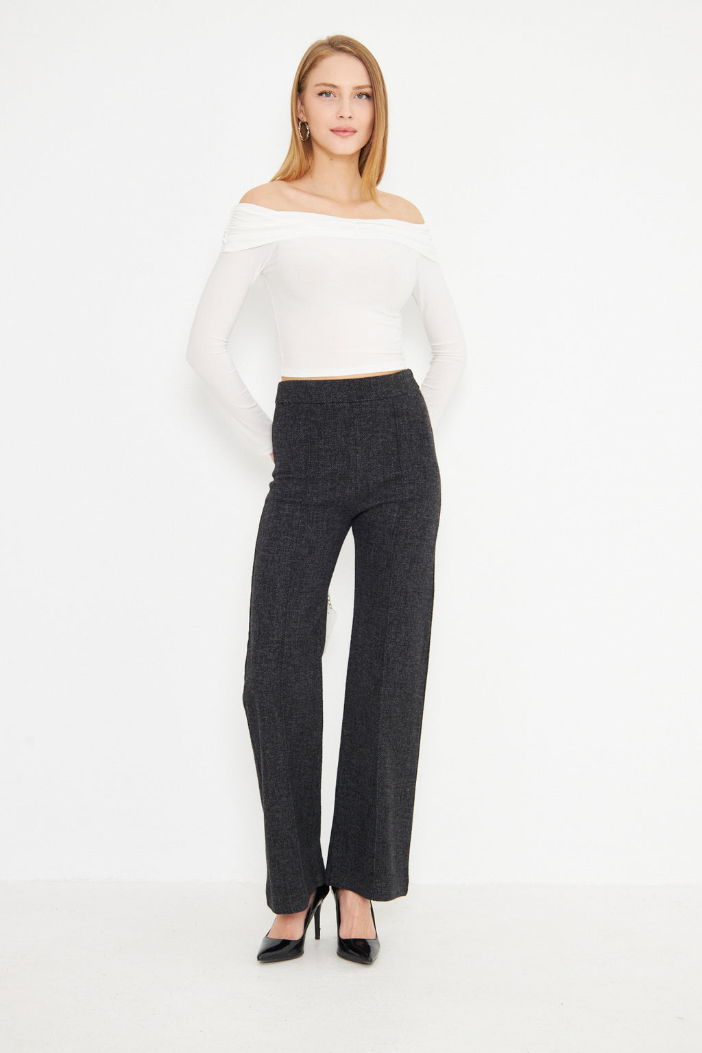 Women's Anthracite Elastic Waist Trousers with Iron Mark Stitching ARM-25K001058
