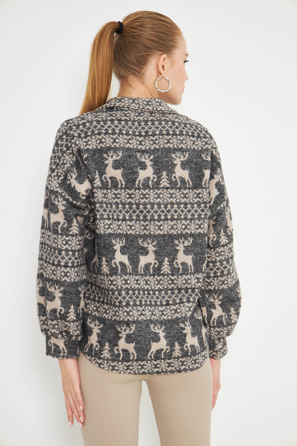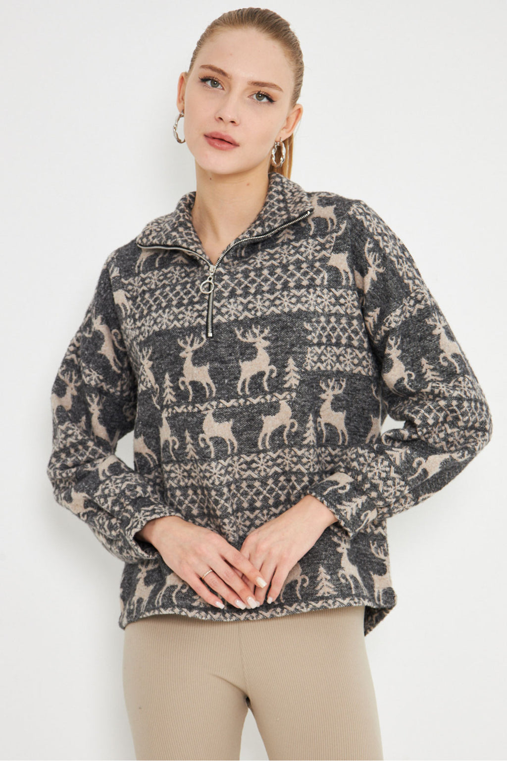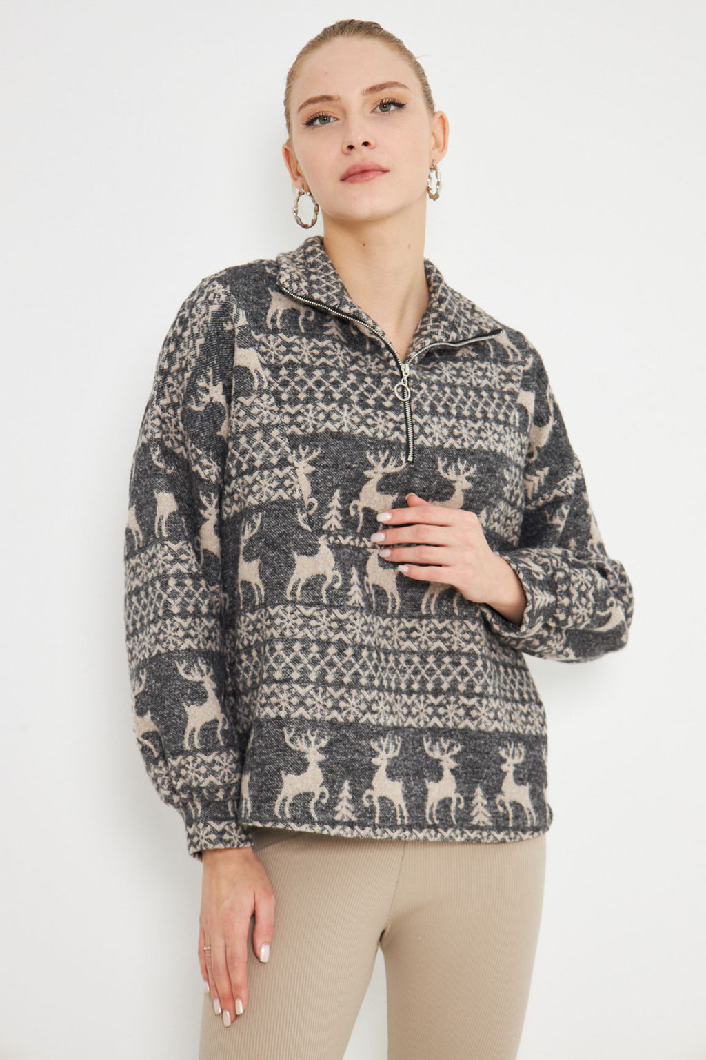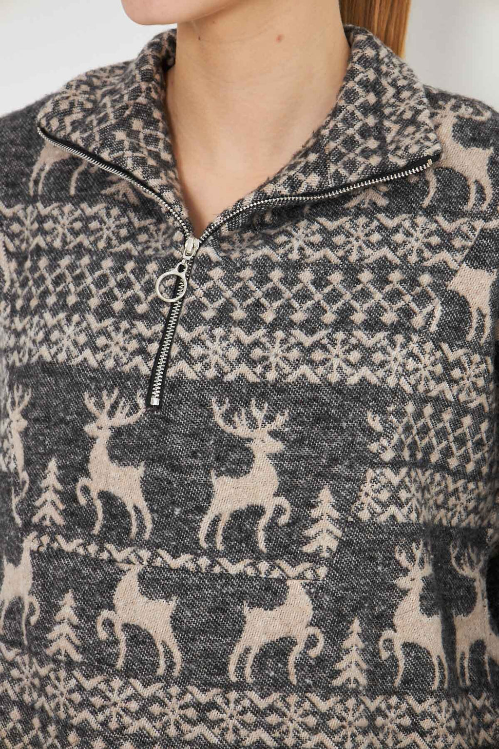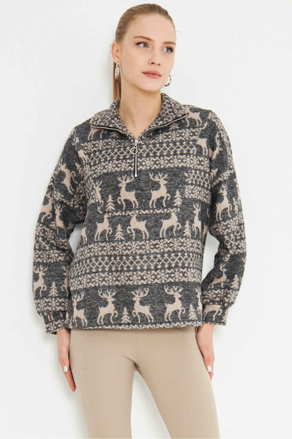Women's Anthracite Turtleneck Sweatshirt with Zipper Collar ARM-25K001056