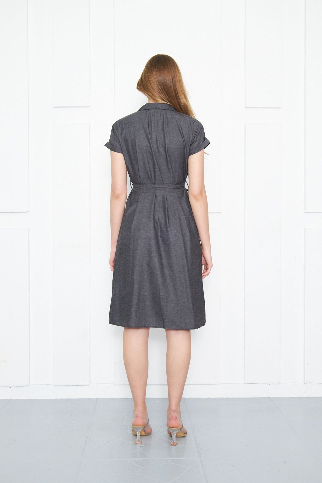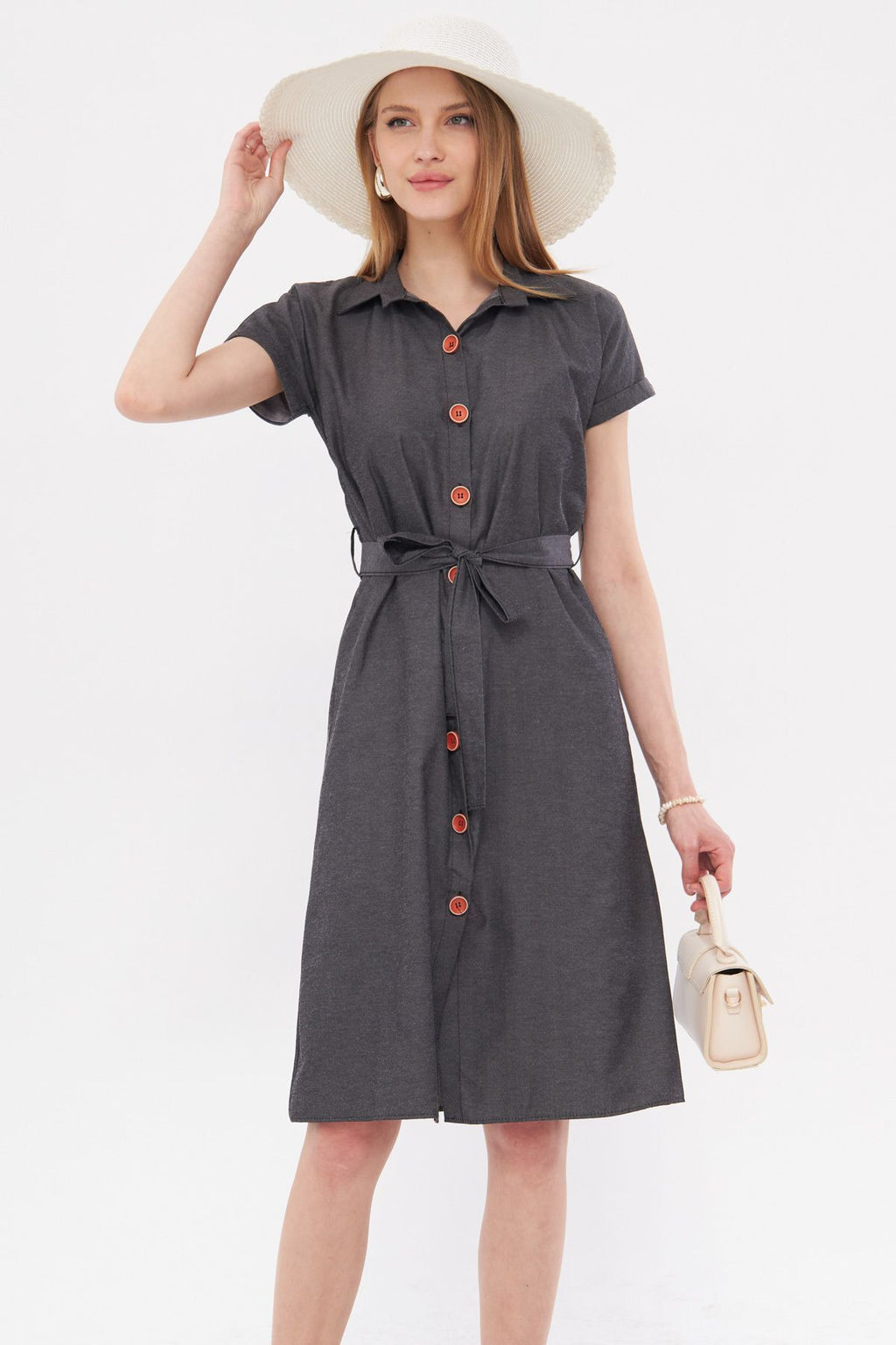 WOMEN'S ARRASİS WAST Belt Short Sleeve Shirt Dress ARM-19Y001068