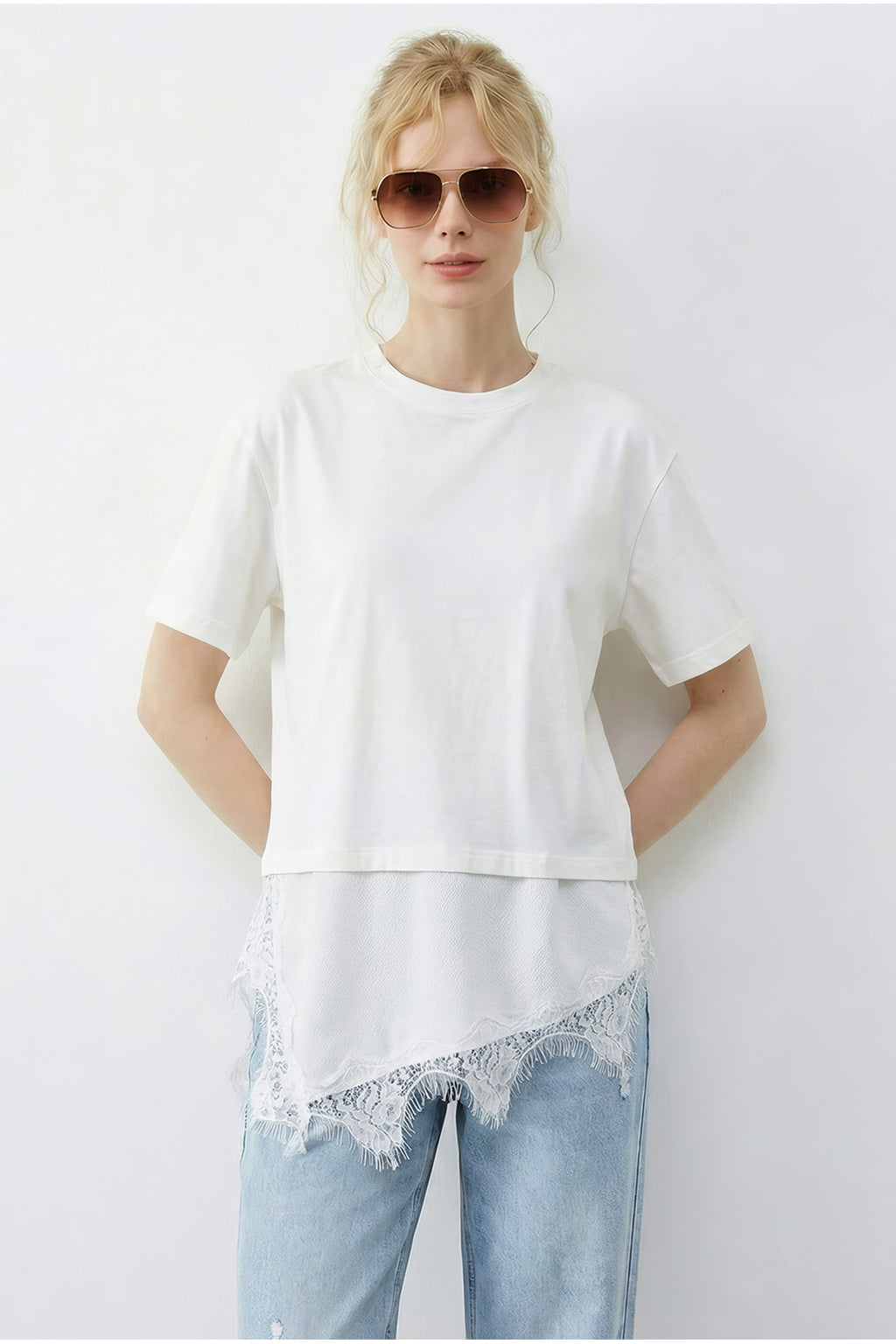 Women's Asymmetrical Lace Hemline Oversize T-Shirt 8716 60283956