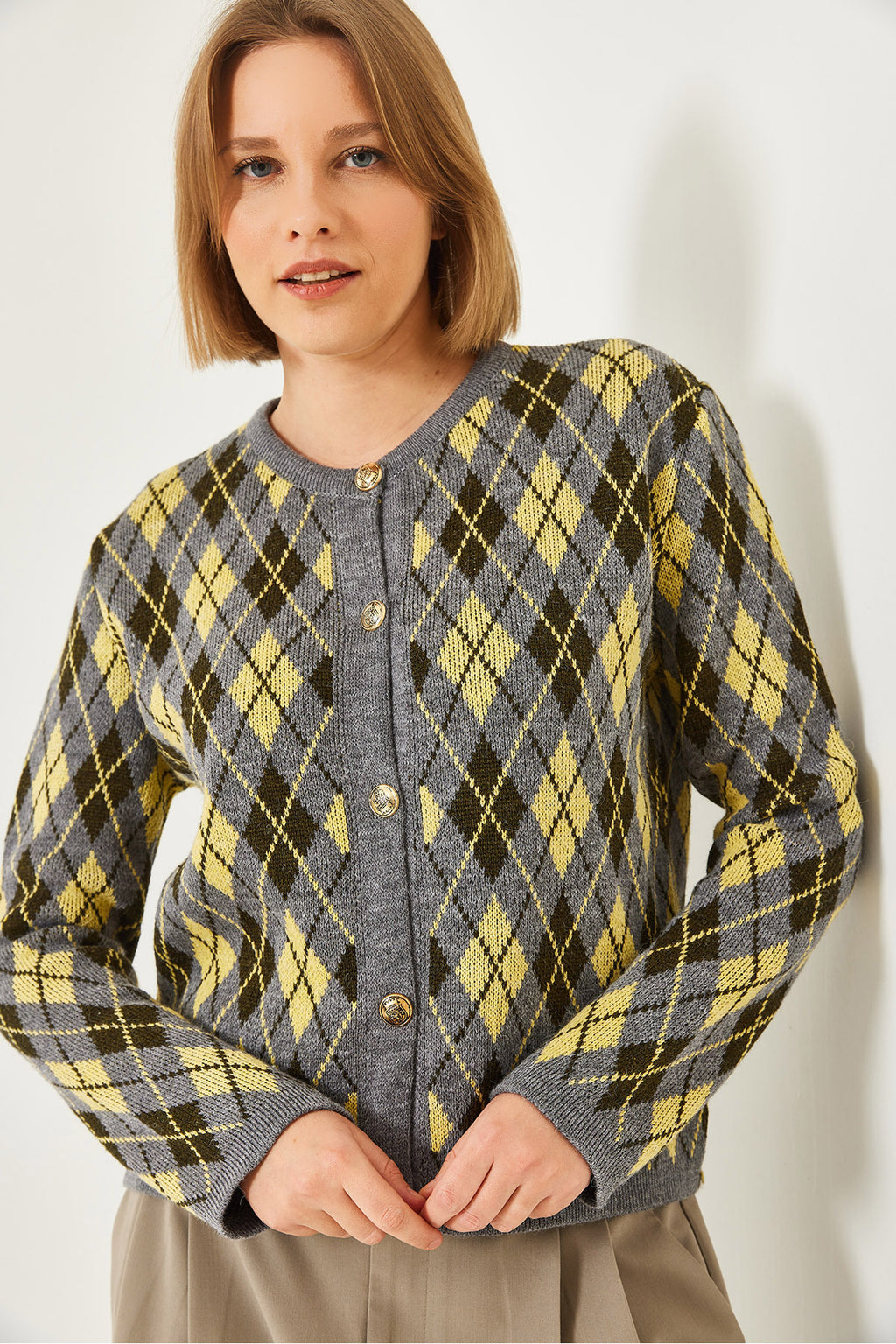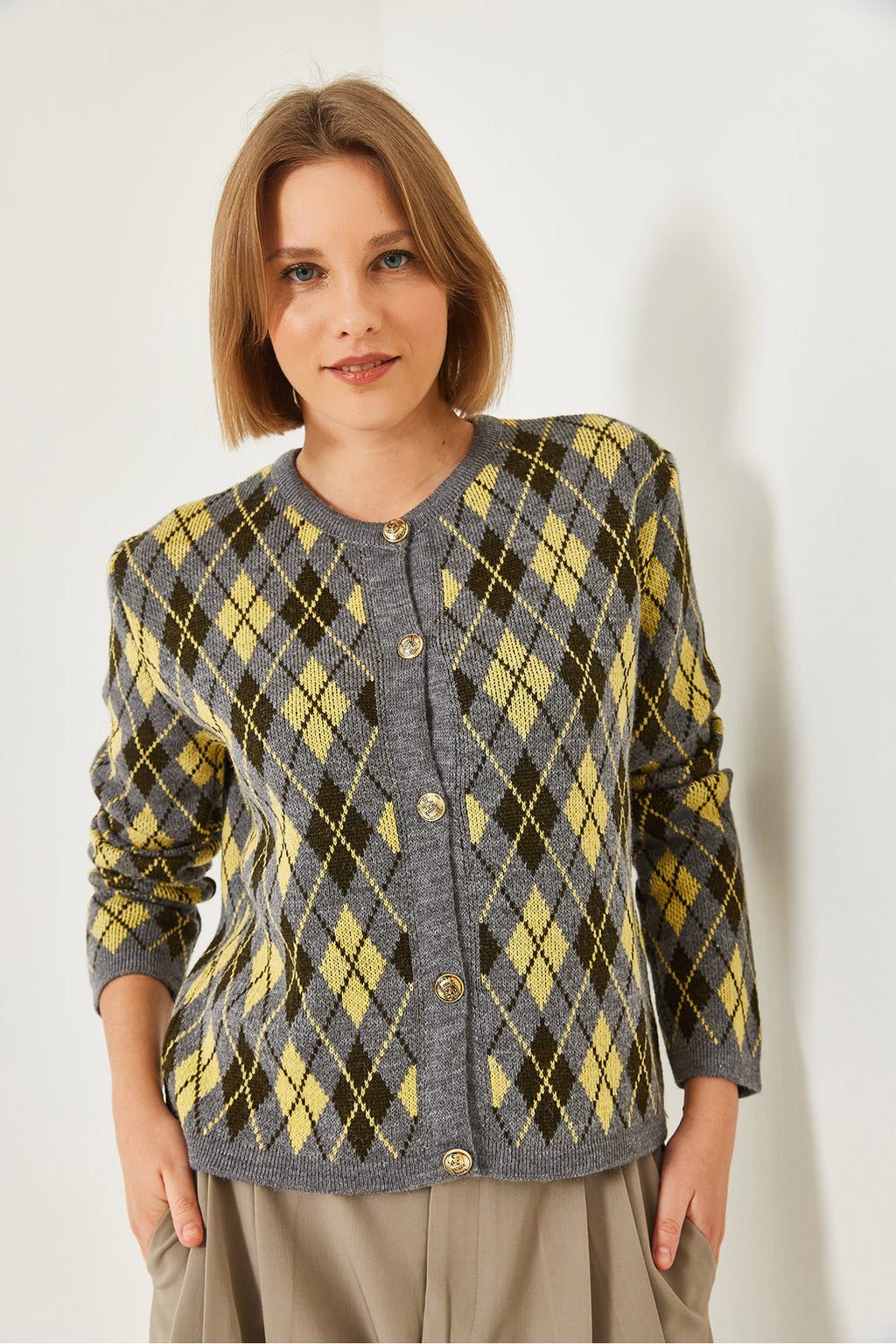 Women's Baklava Pattern Crew Neck Buttoned Knitwear Cardigan 241152 60261341