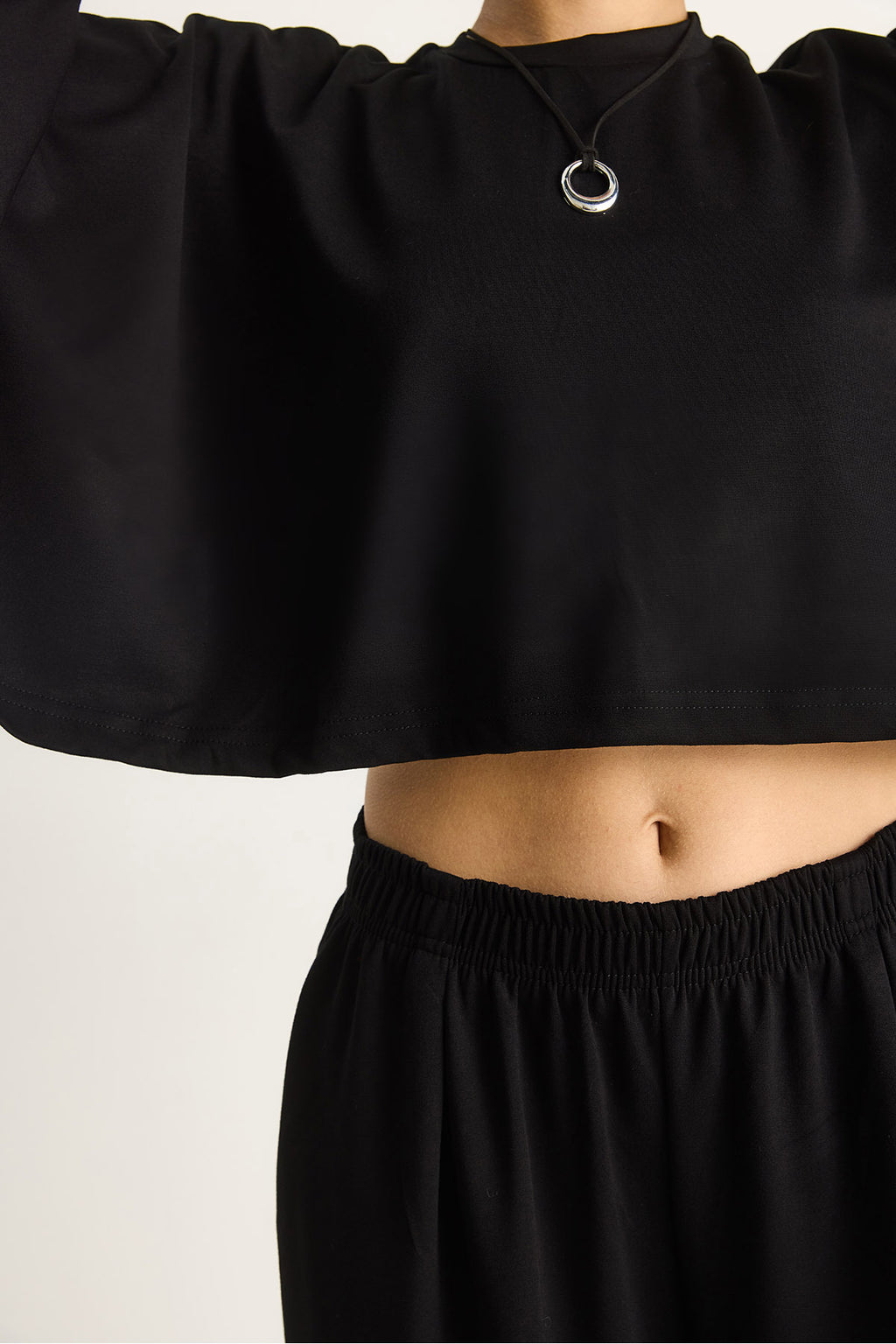 Women's Bat Sleeve Crop Elastic Waist Trousers Modal Bottom-Top Set 4025 60284068