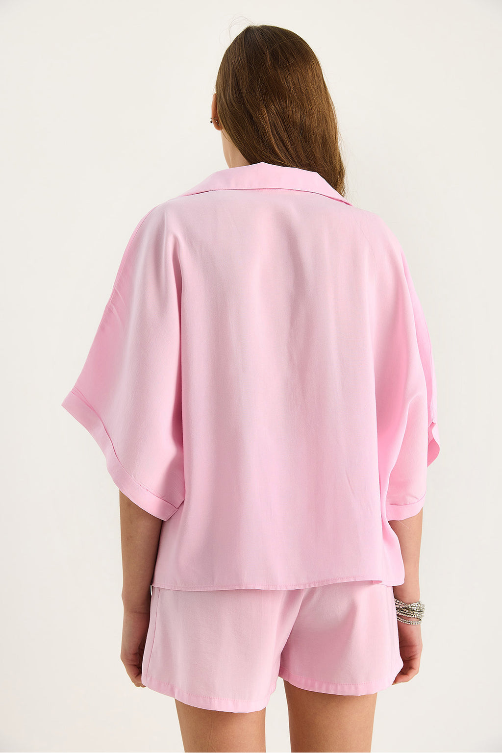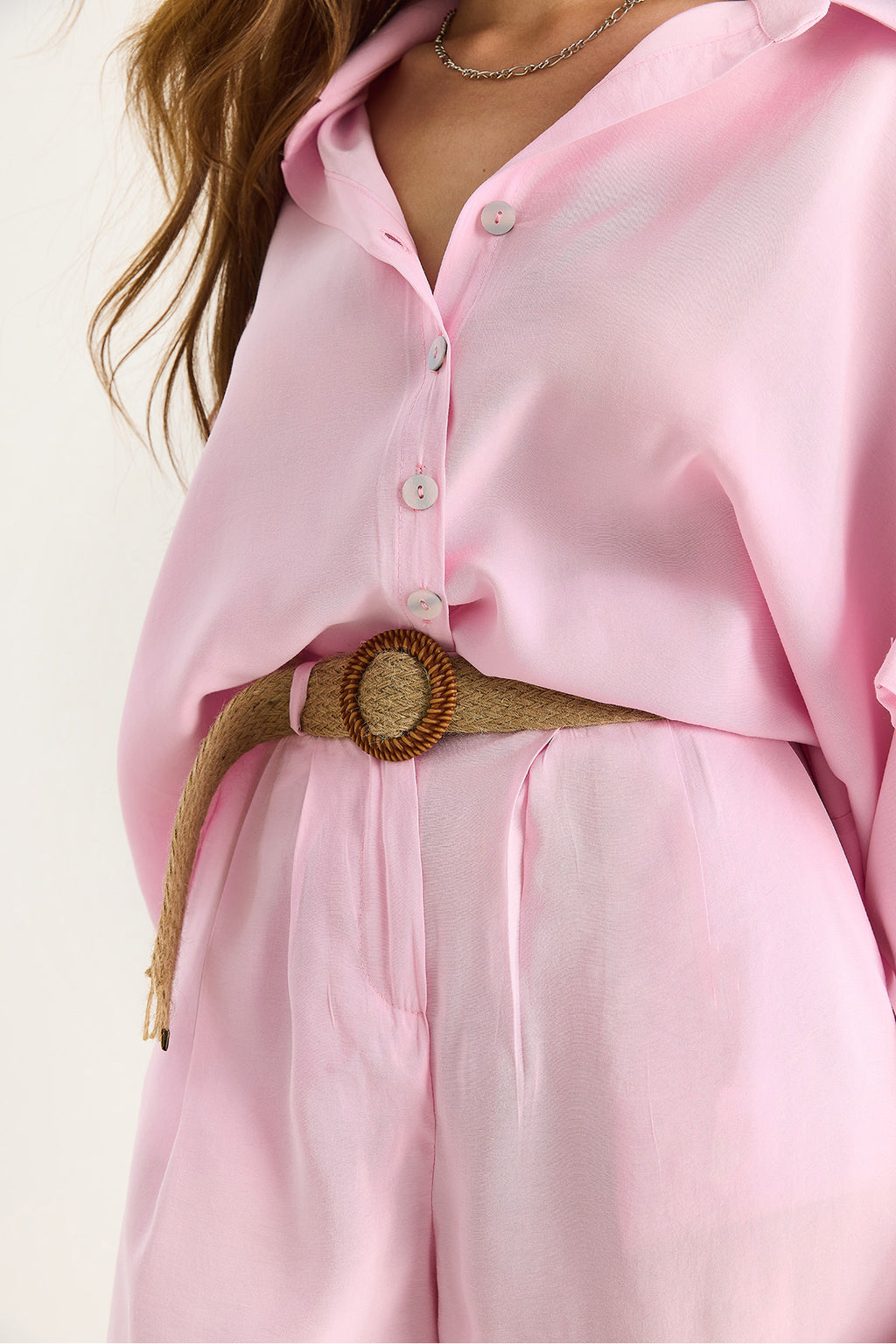 Women's Bat Sleeve Oversize Shirt Straw Belt Shorts Modal Suit 4010 60283476