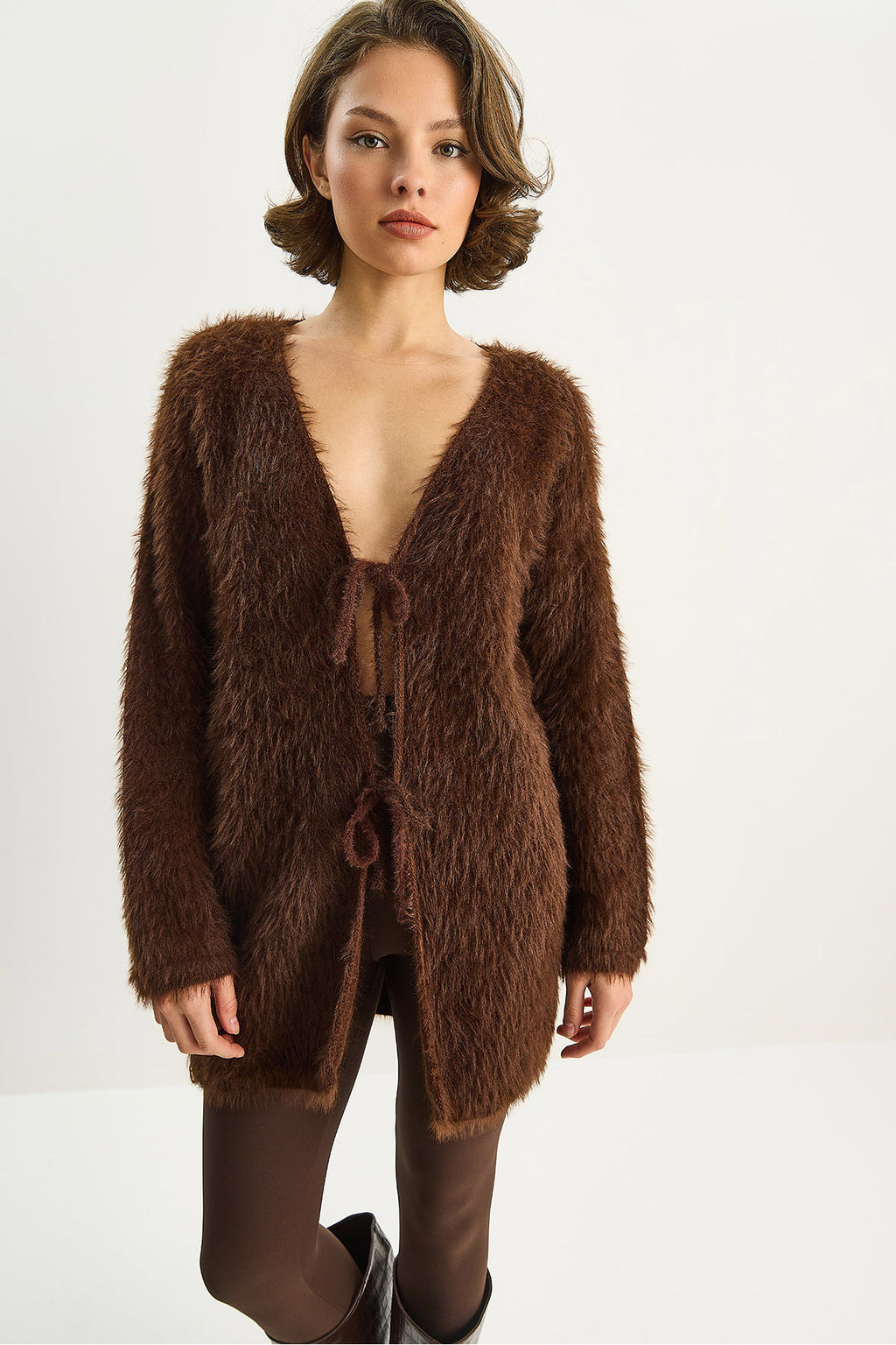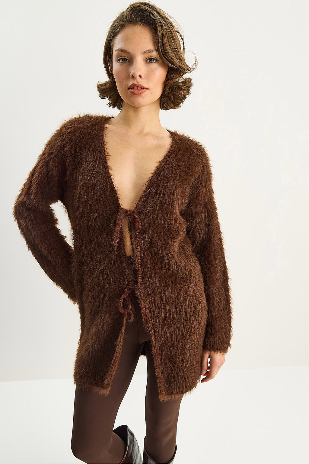 Women's Bearded Soft Textured Knitwear Cardigan with Tie Detail 9064 60283754