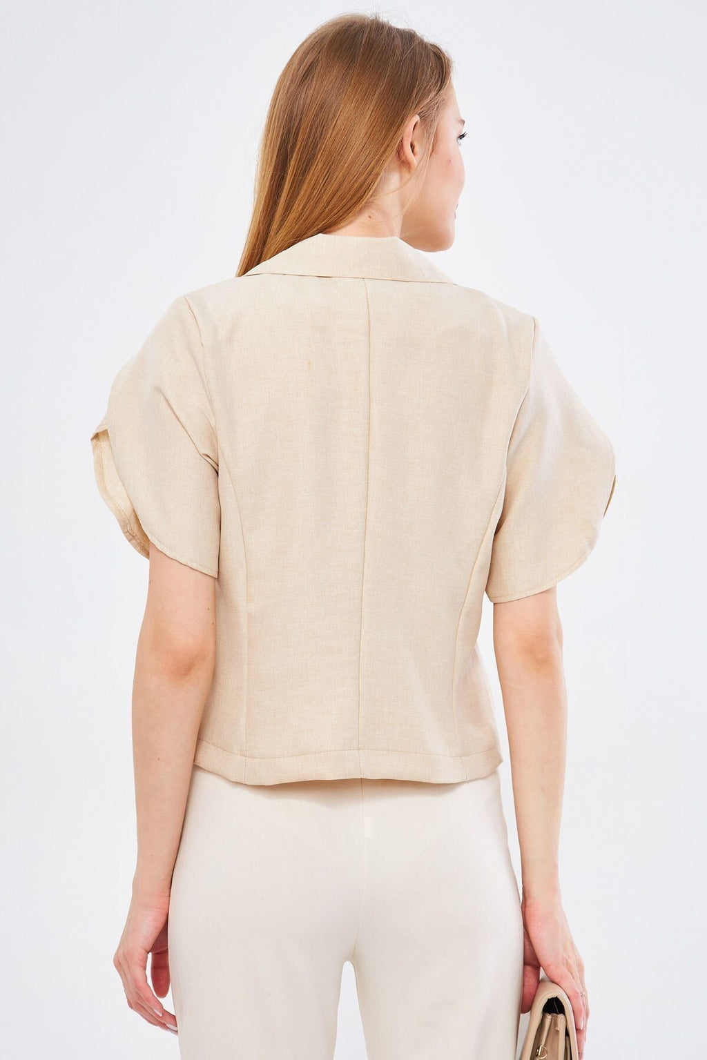 Women's Beige Ikosiokto Jacket Slit Detailed Crop Short Sleeve ARM-24Y001048