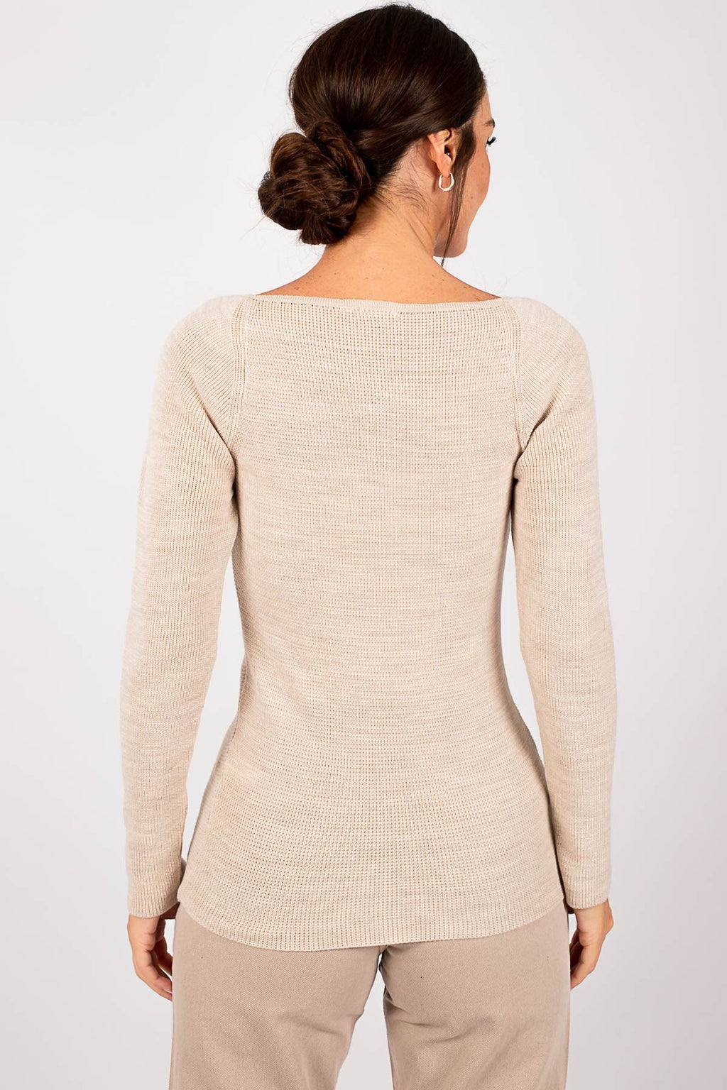 Women's Beige Square Collar Knitwear Sweater Arm-22Y012005