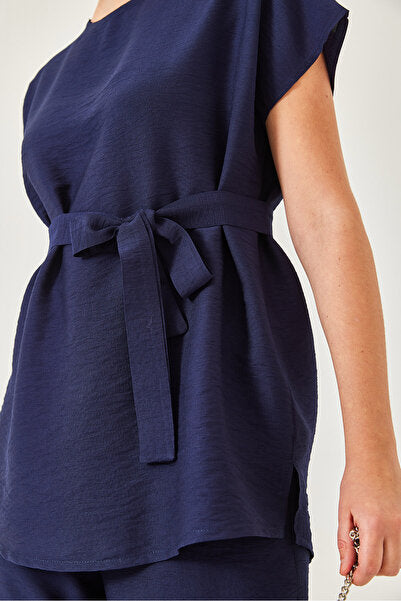 Women's Belted Palazzo Trousers Linen Ayrobin Bottom-Top Set 60323 60271039