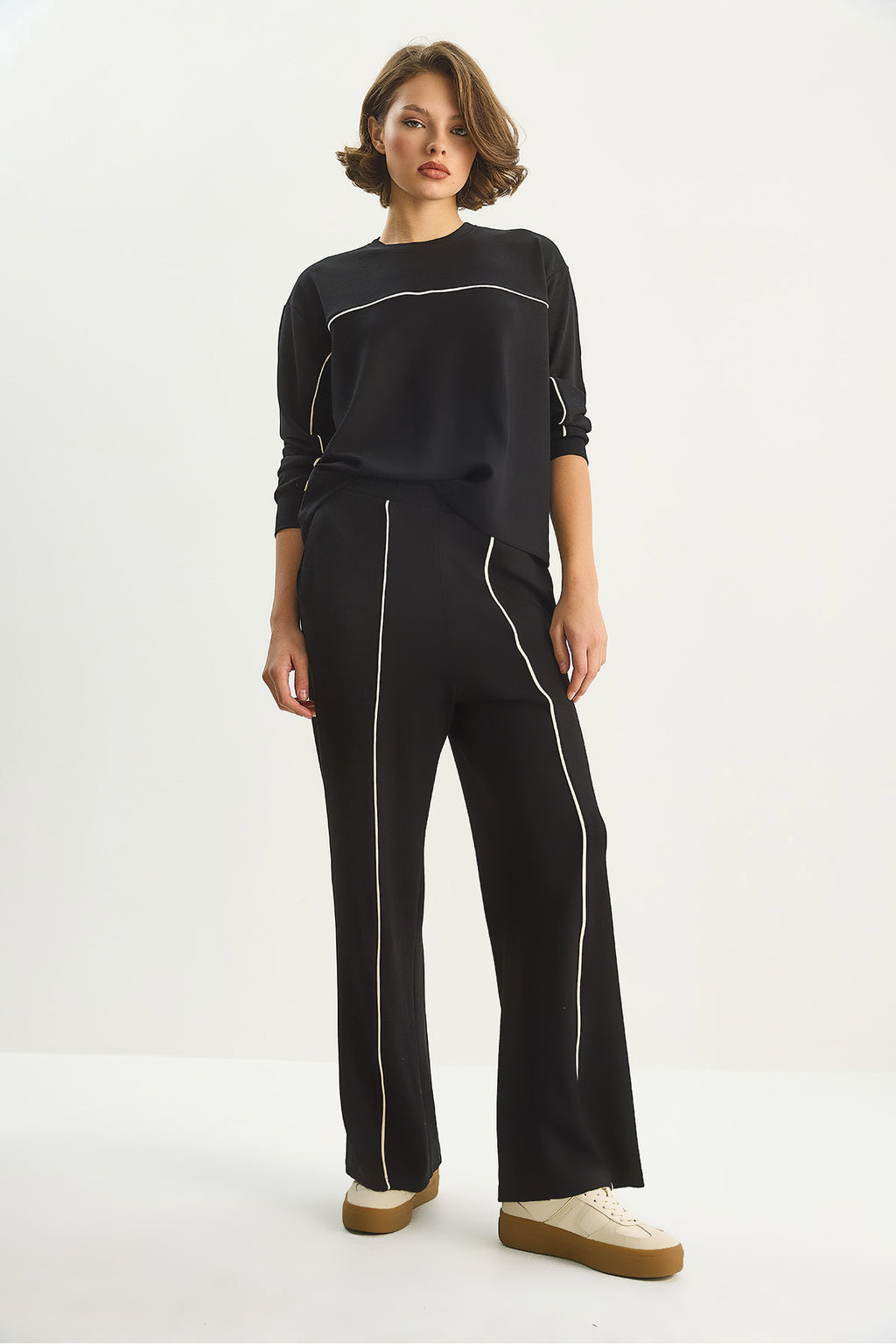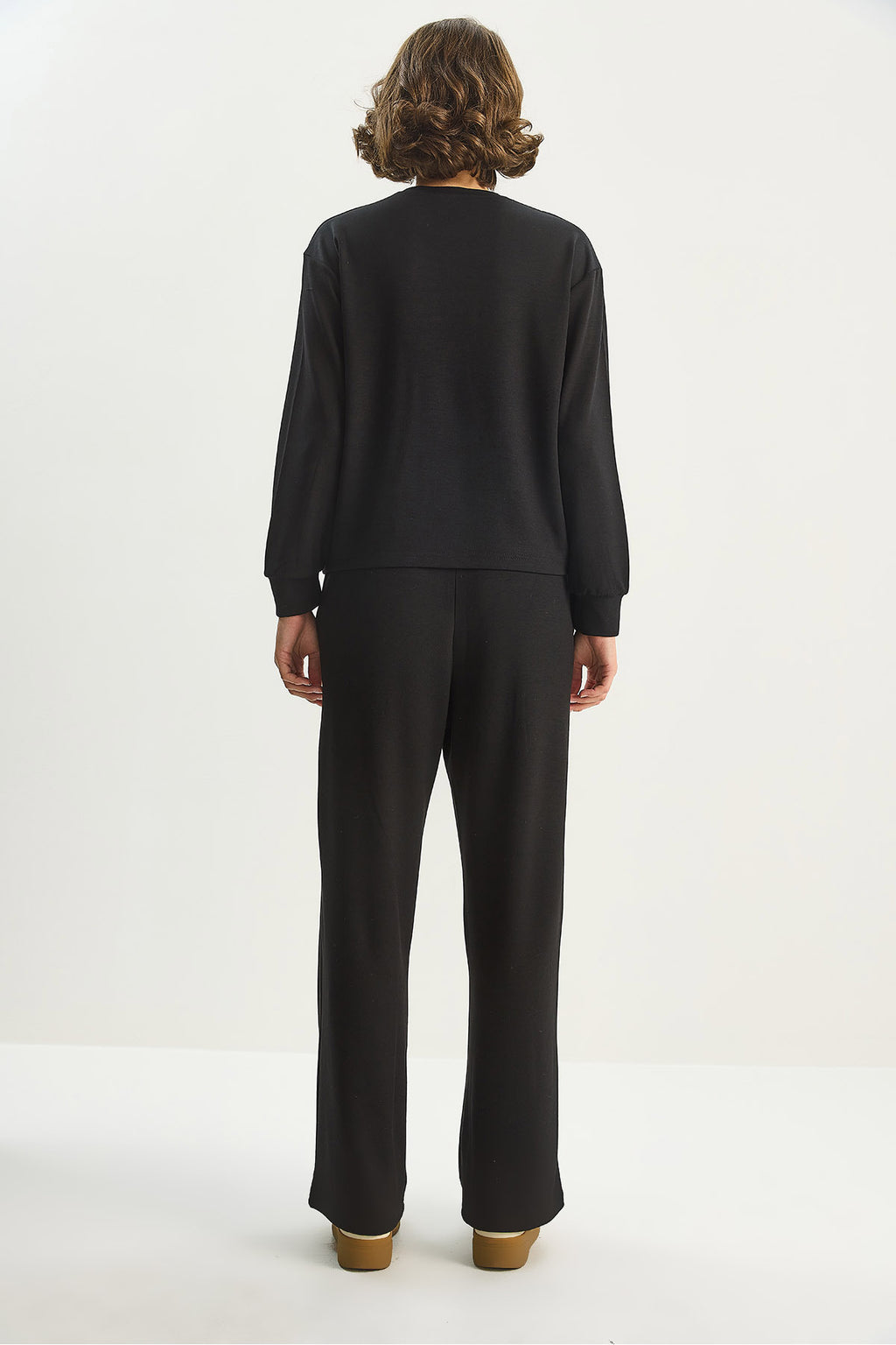 Women's Bikini Neck Long Sleeve Top Elastic Waist Loose Bottom Bias Detailed Modal Suit 60283620
