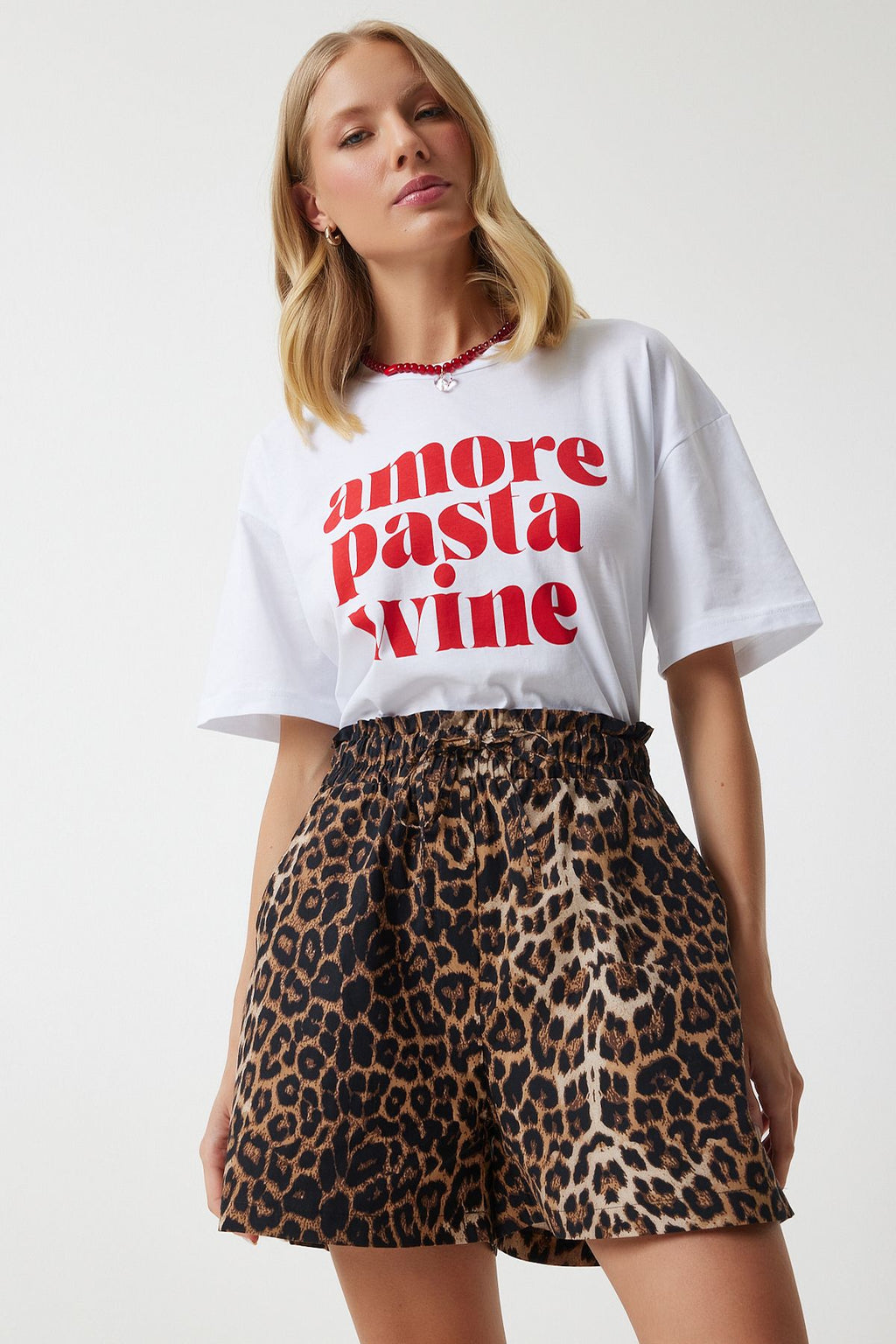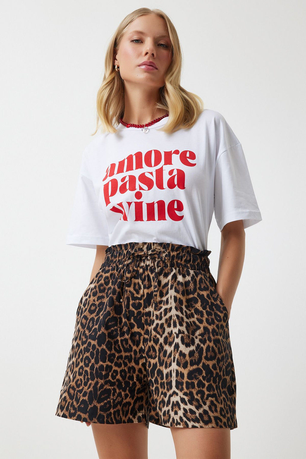 Women's black beige leopard patterned high waist shorts ul00025
