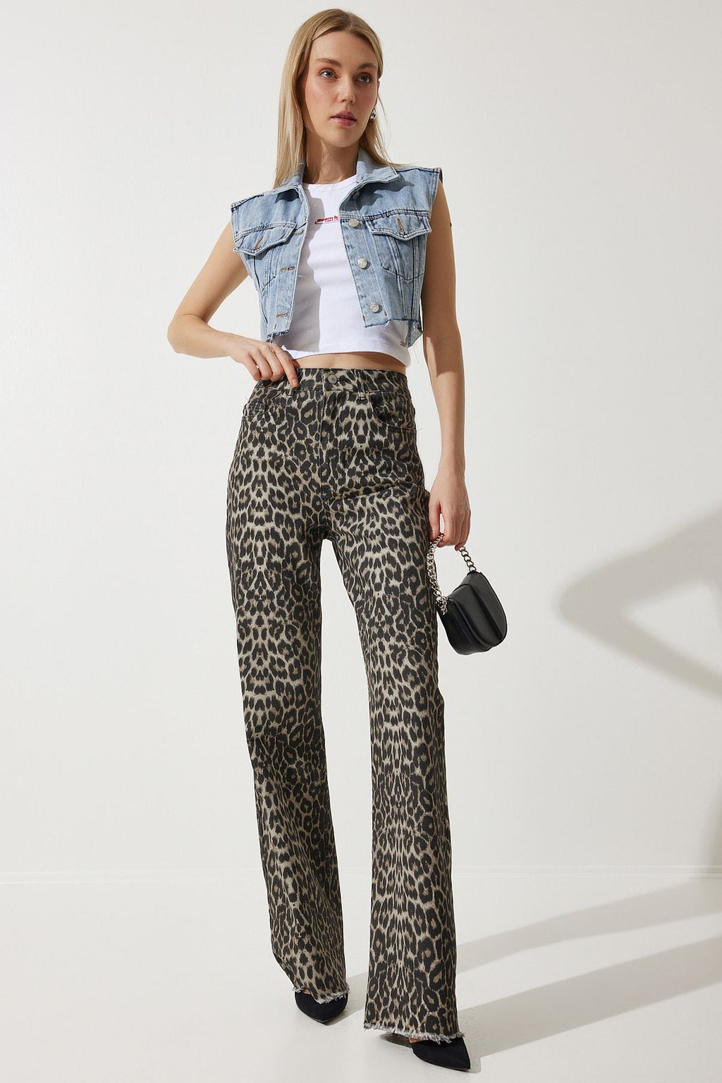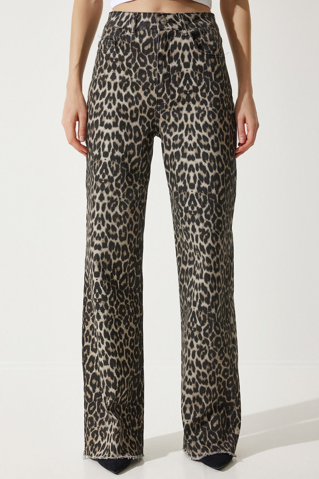 Women's black beige leopard patterned Palazzo Jean VC00002
