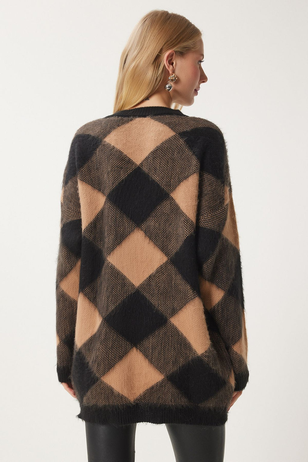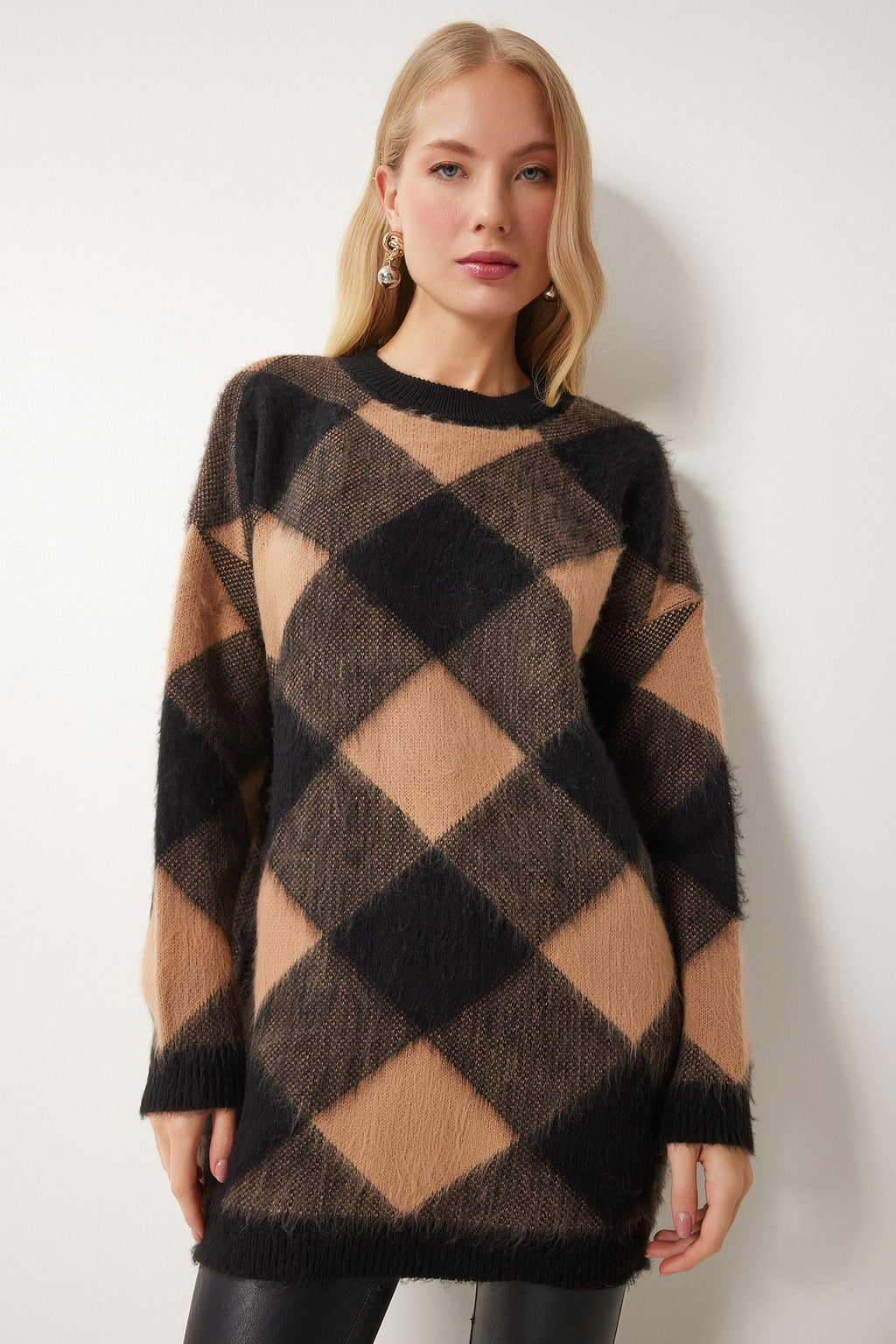 Women's black biscuit plaid patterned texture long knitwear sweater AN00215