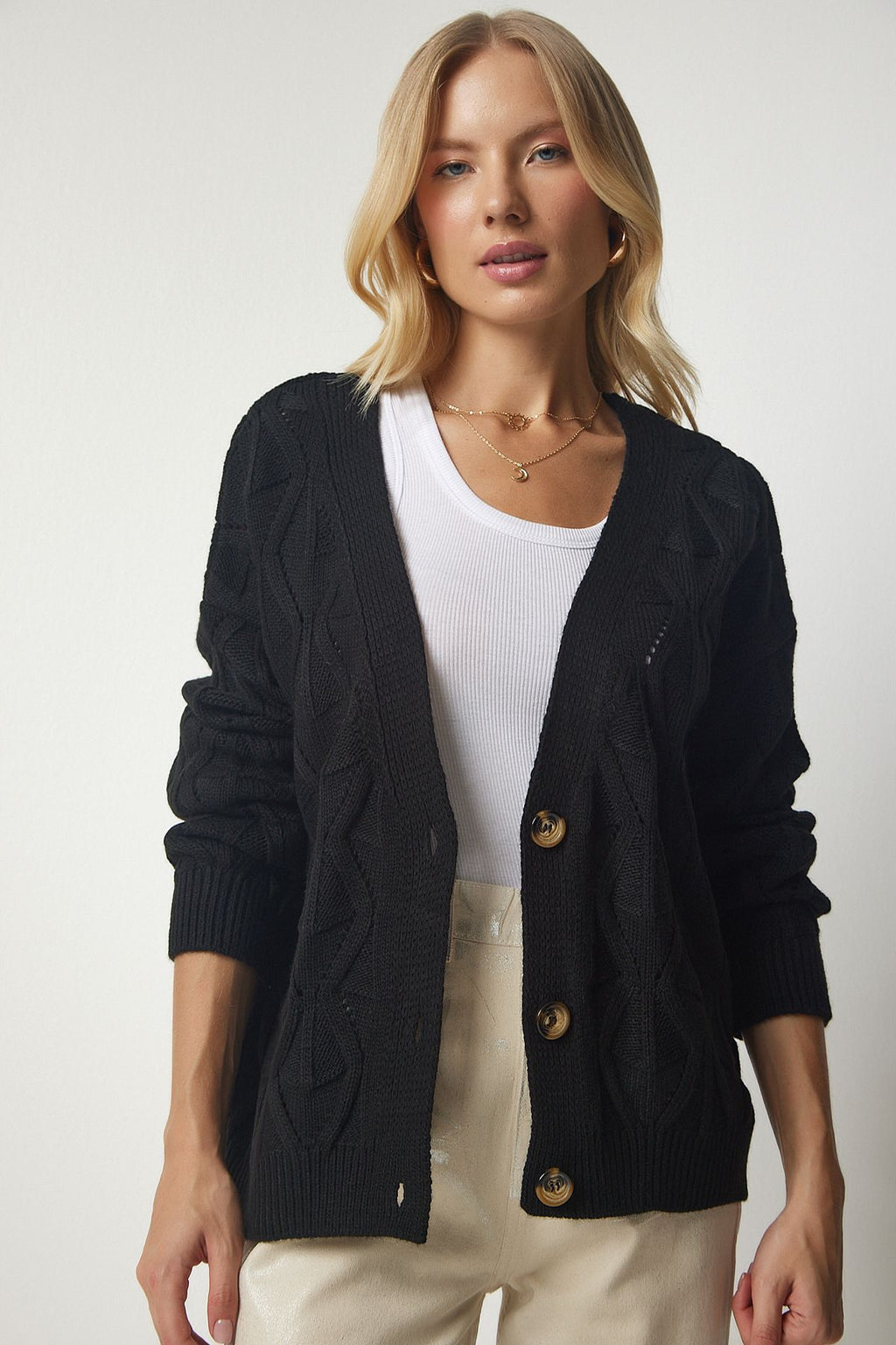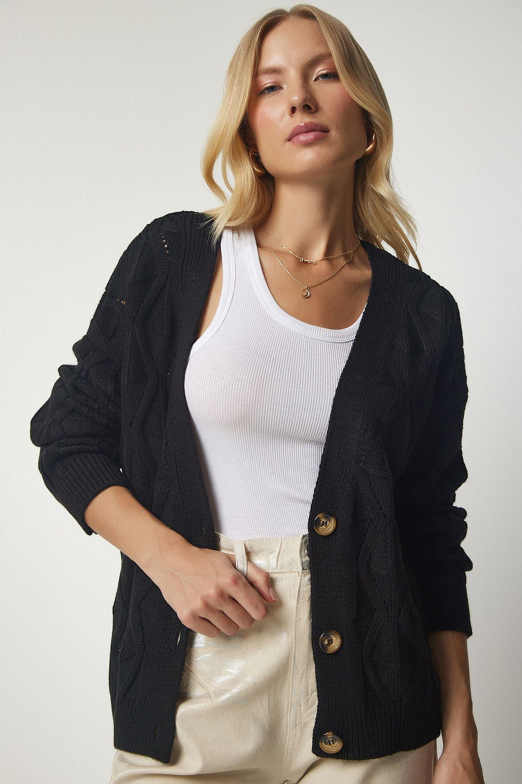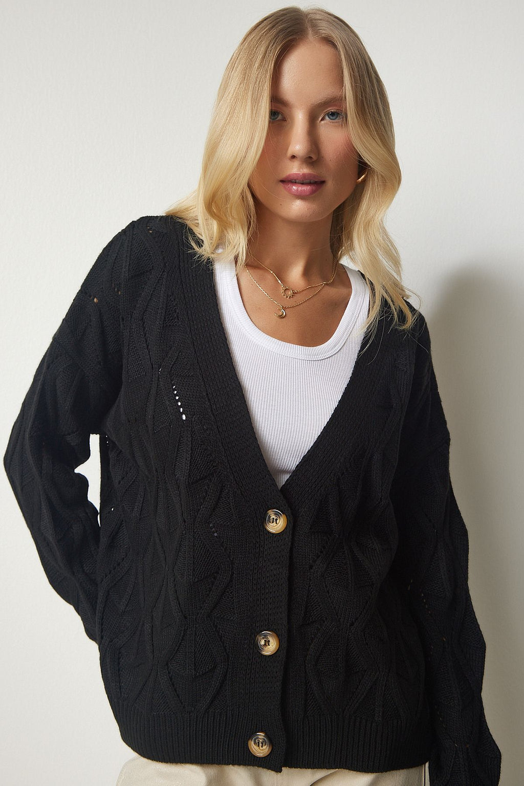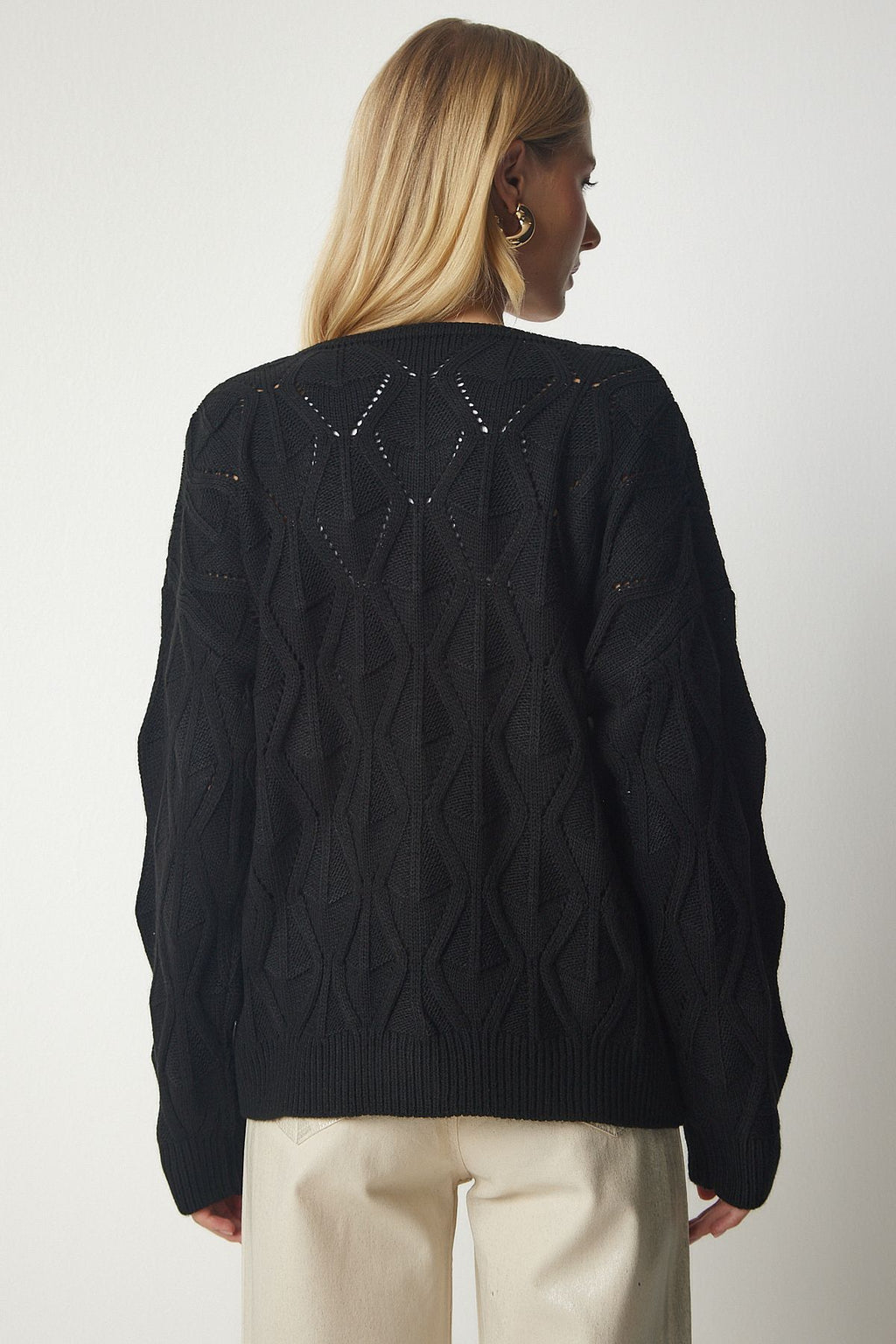 Women's Black Knitting Motif Offer Triko Cardigan PF00014