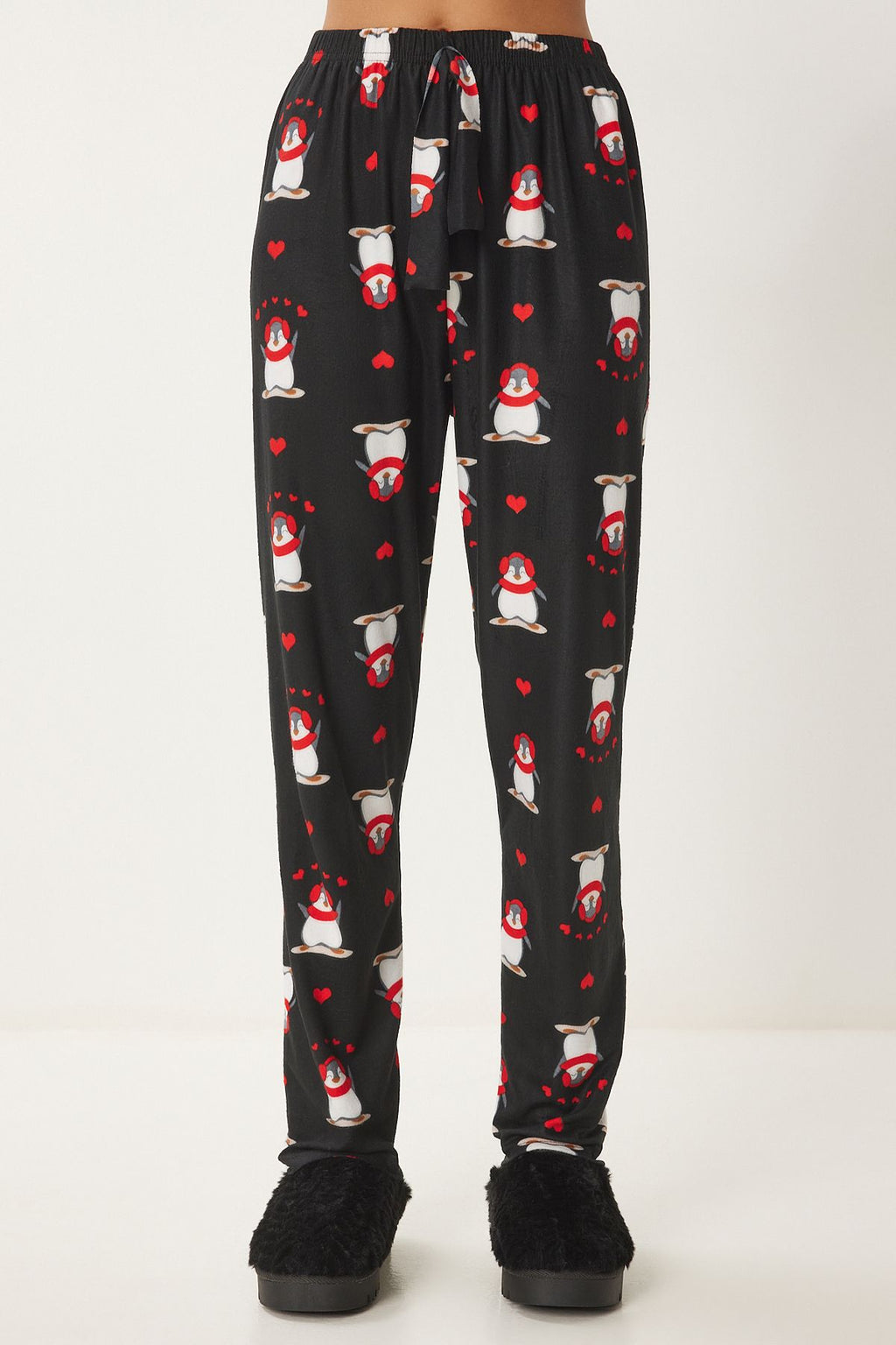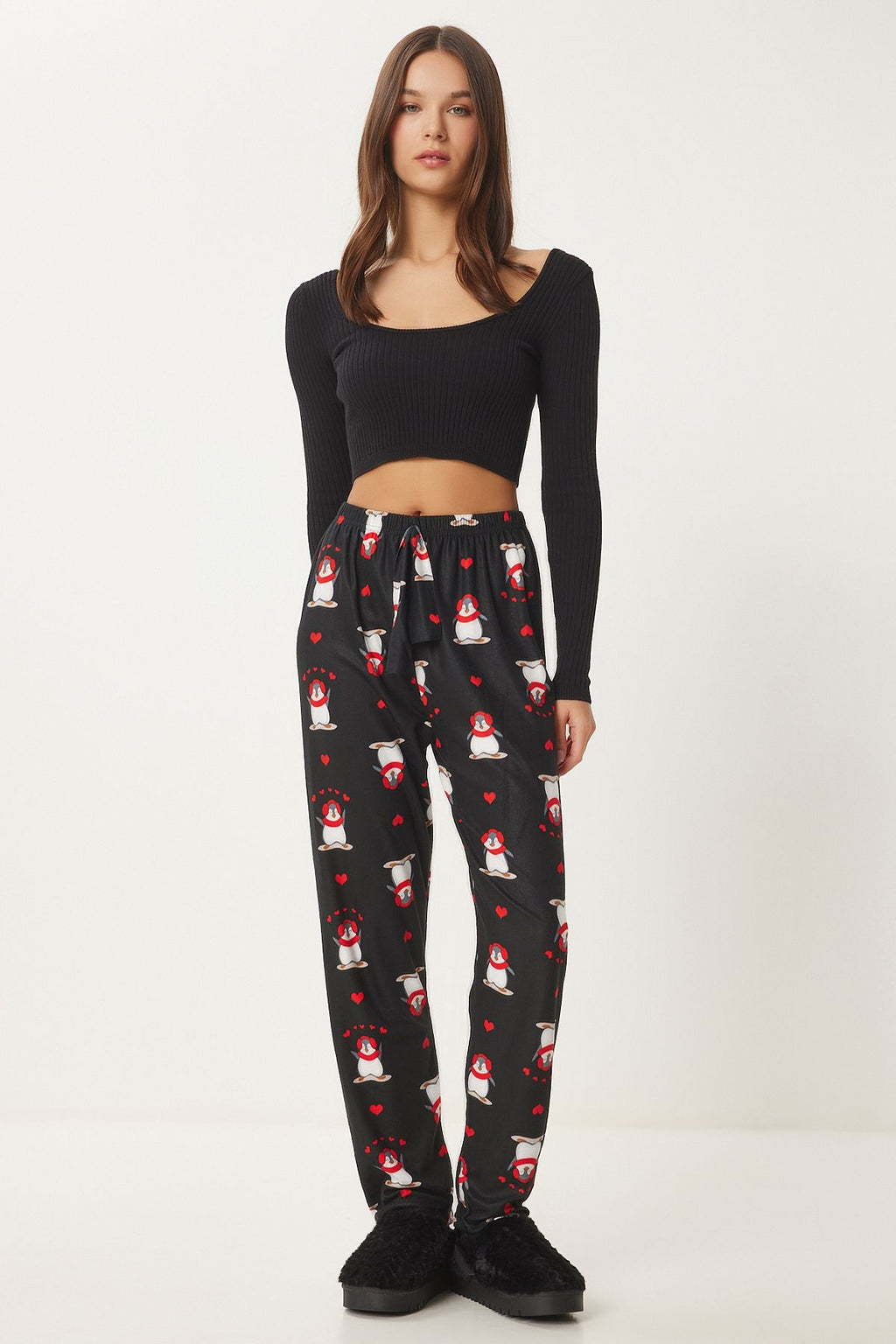 Women's black patterned soft textured knitting pajamas six Ce00089