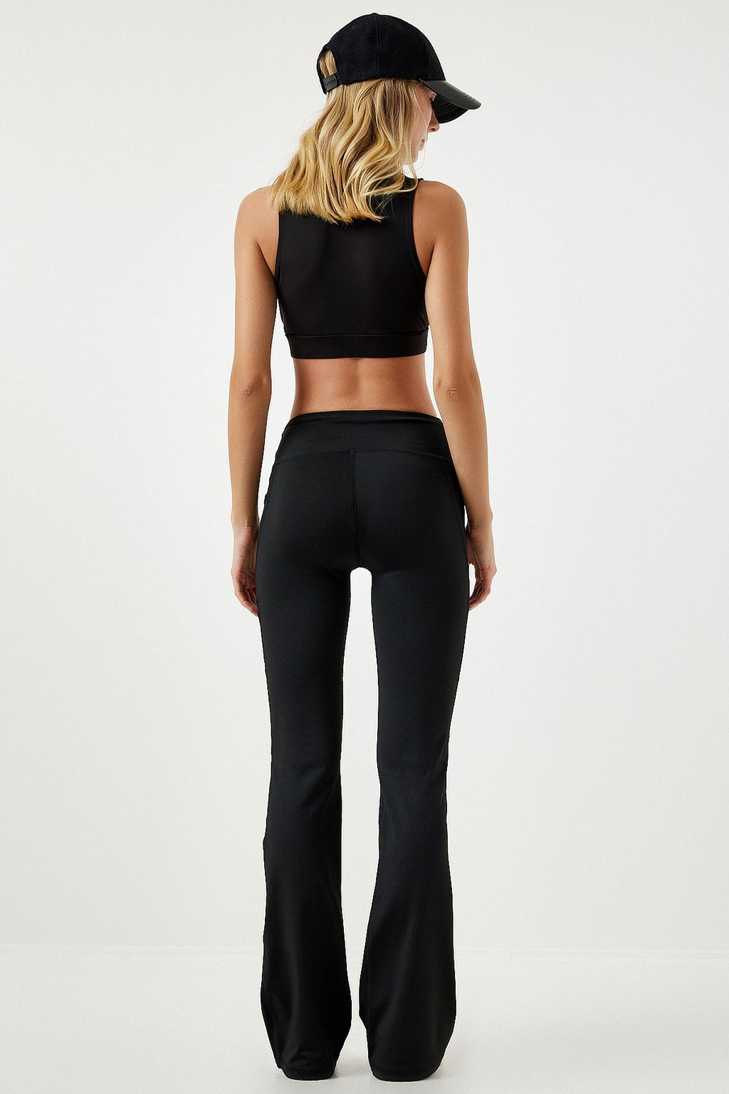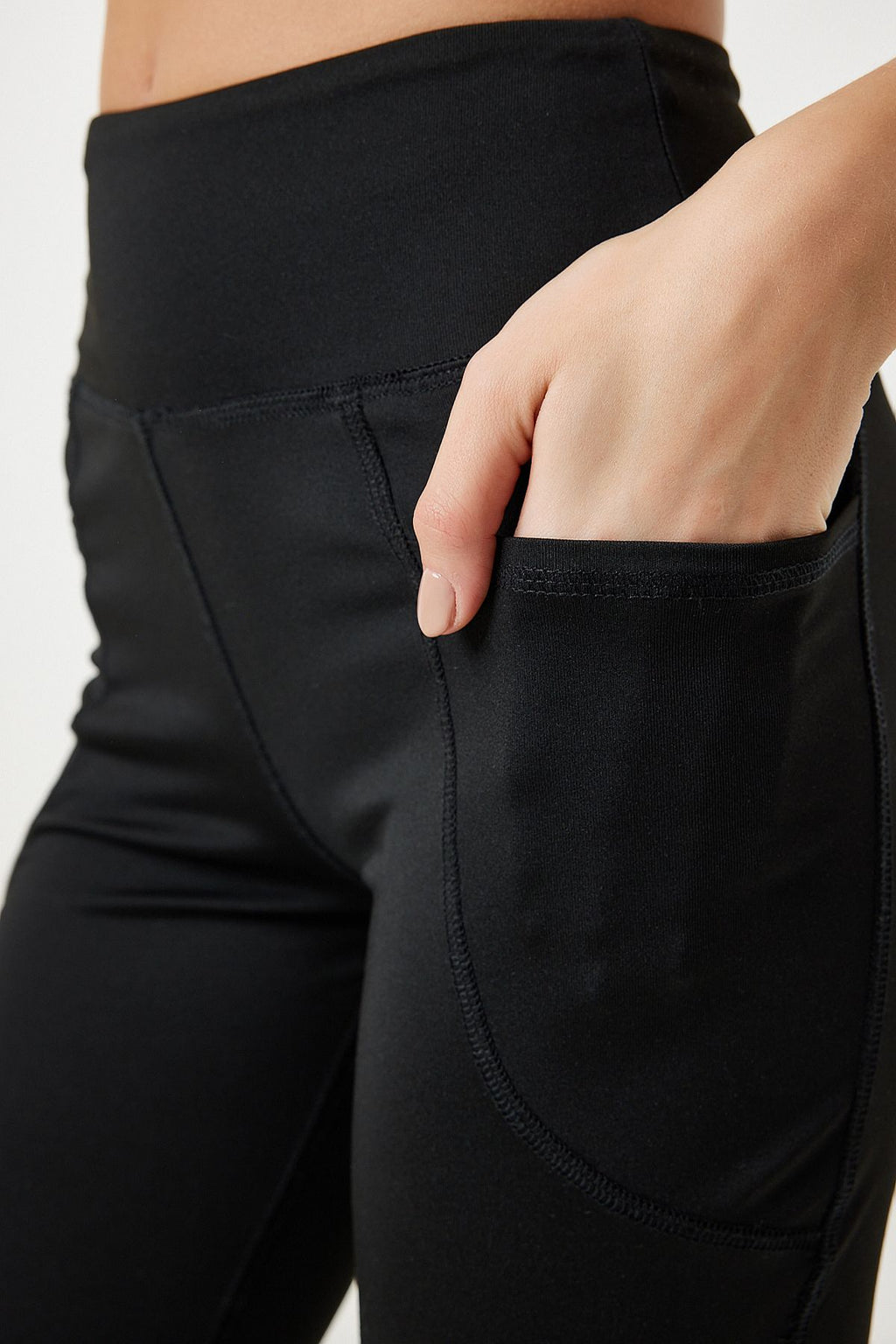 Women's Black Pocket Detail High Waist Scuba Tight Ow00038