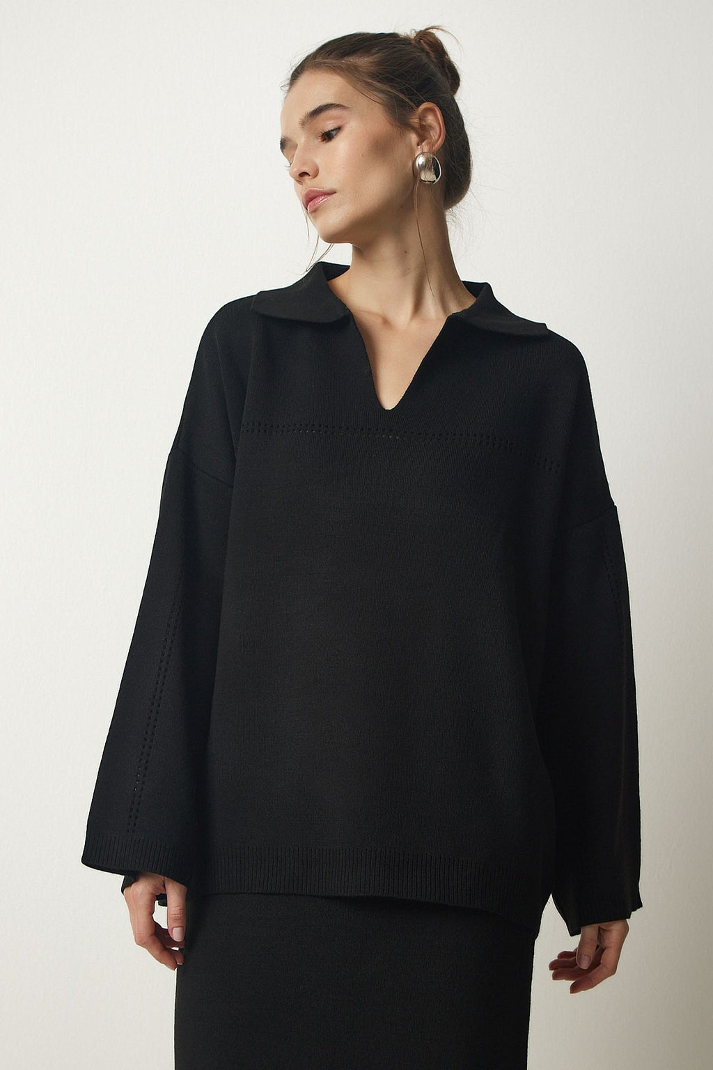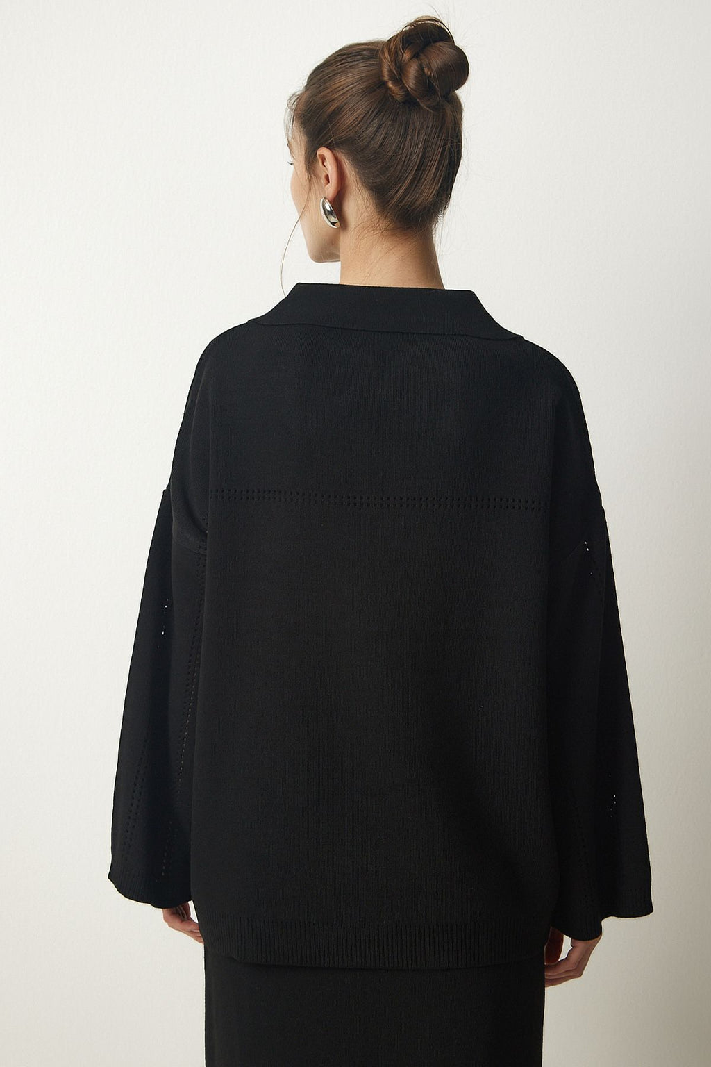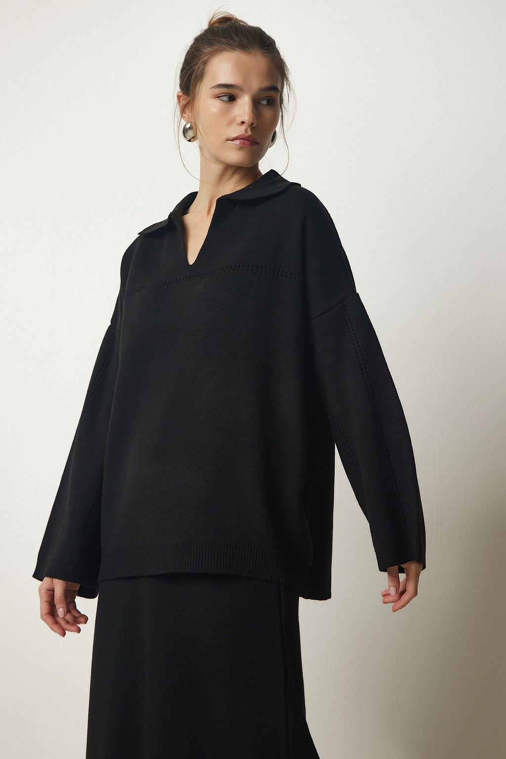 Women's Black Polo Yaka stylish knitwear sweater skirt set yy00186