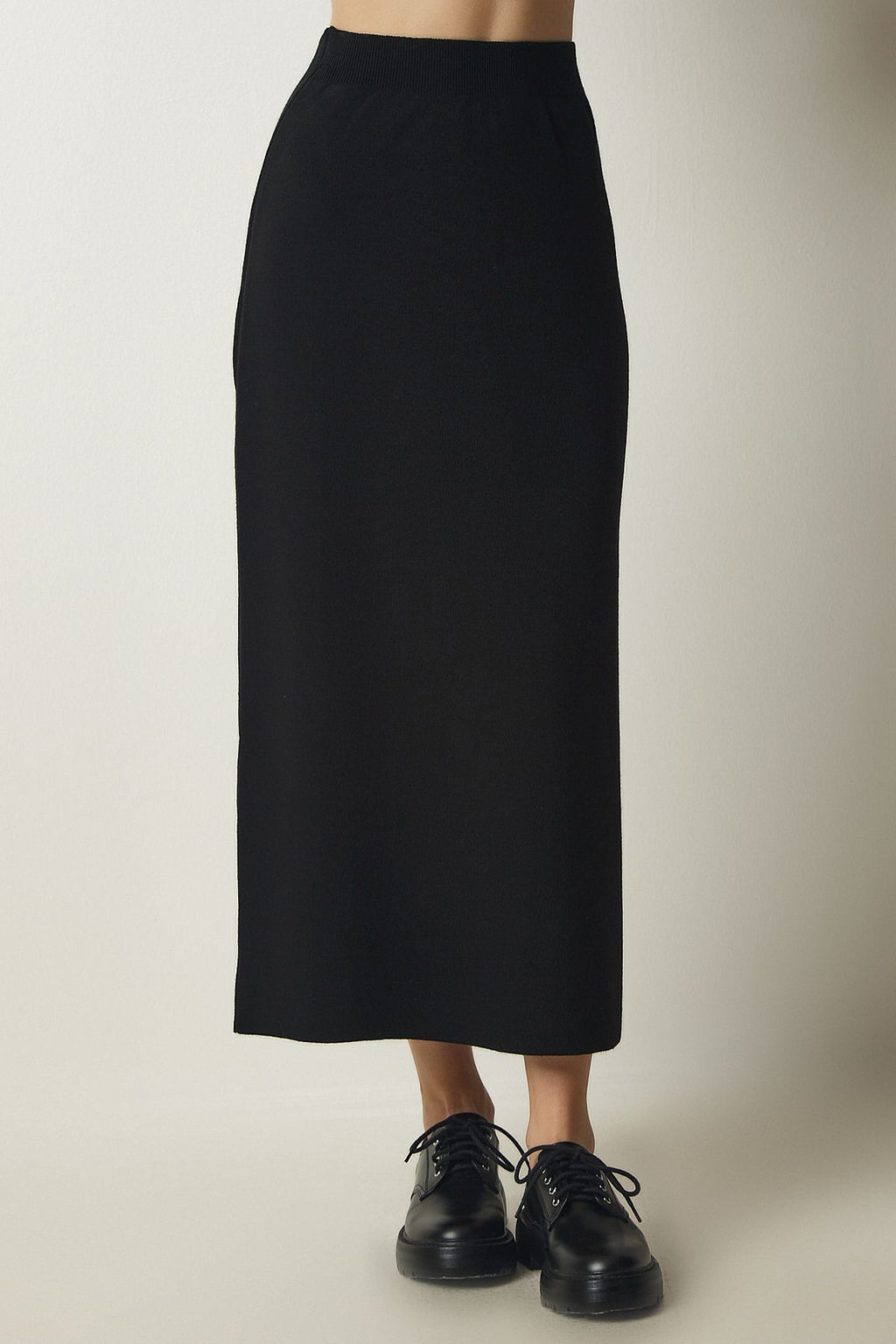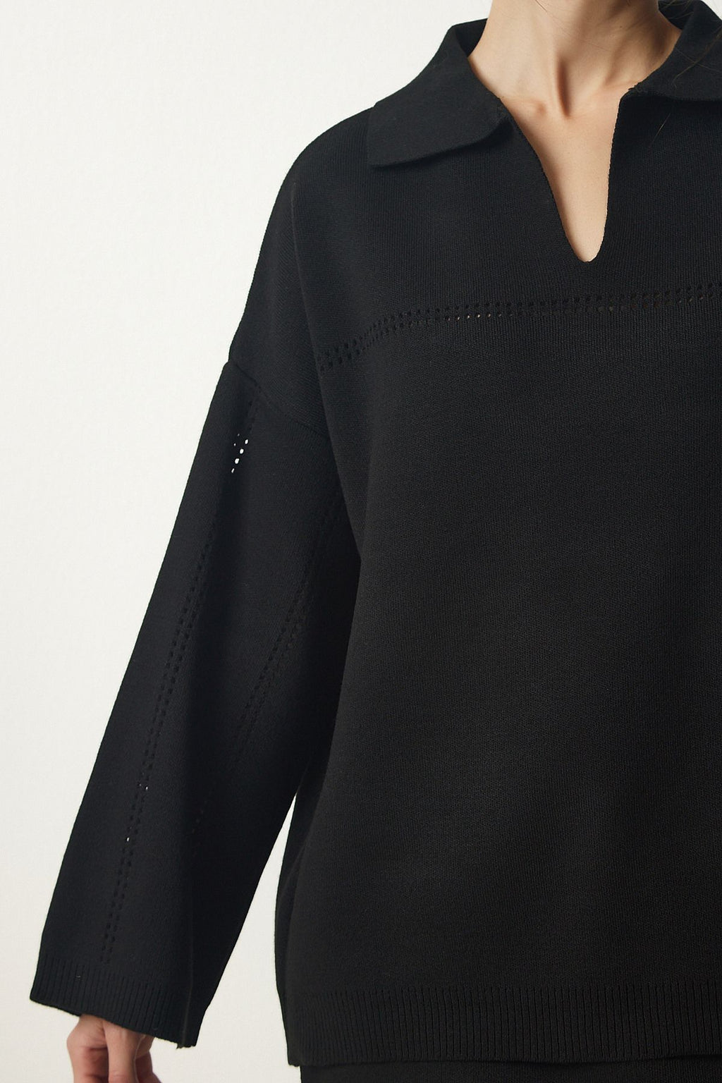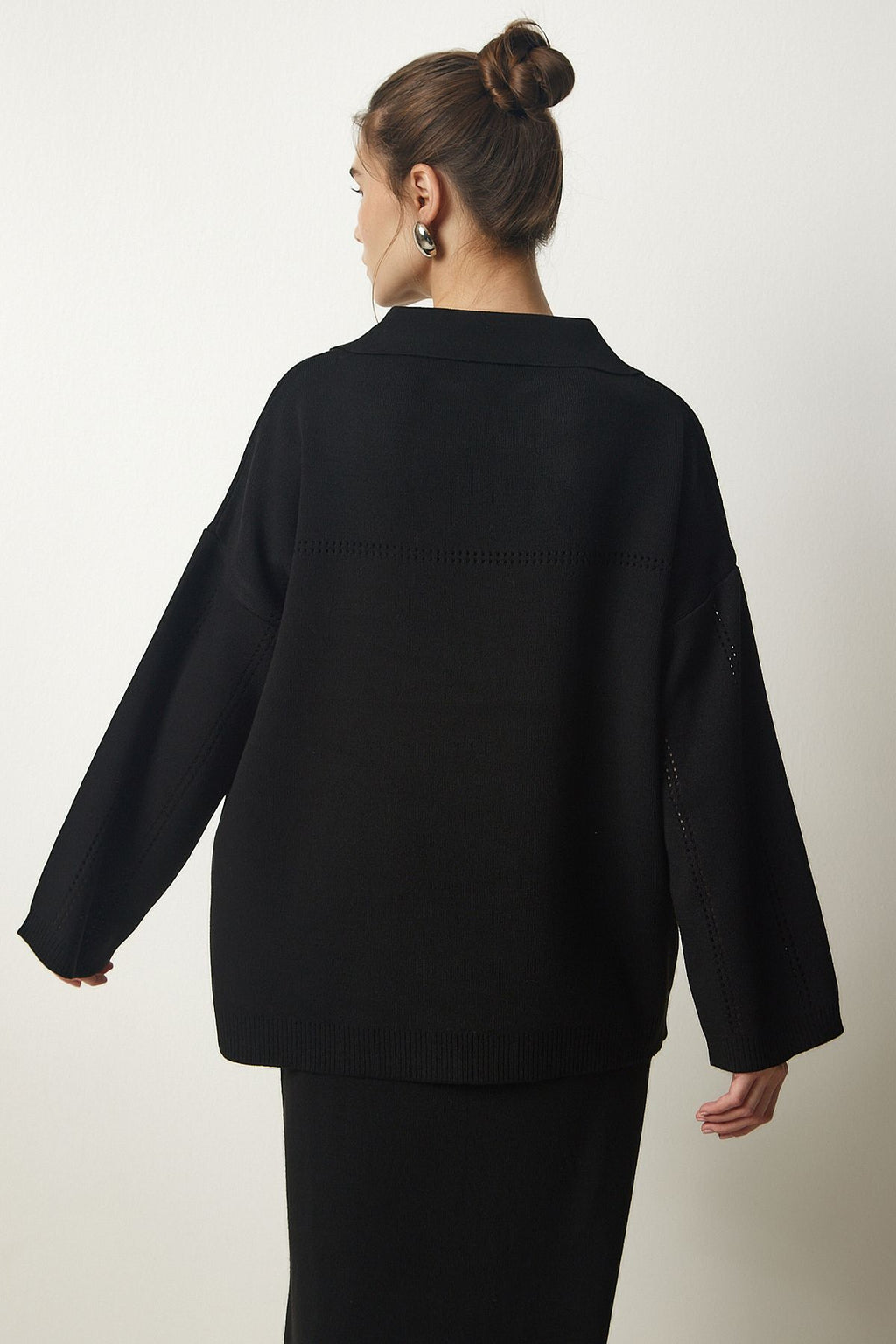 Women's Black Polo Yaka stylish knitwear sweater skirt set yy00186