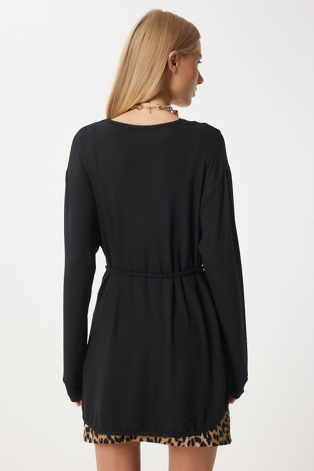 Women's Black Seasonal Knitting Knitwear Cardigan EN00620