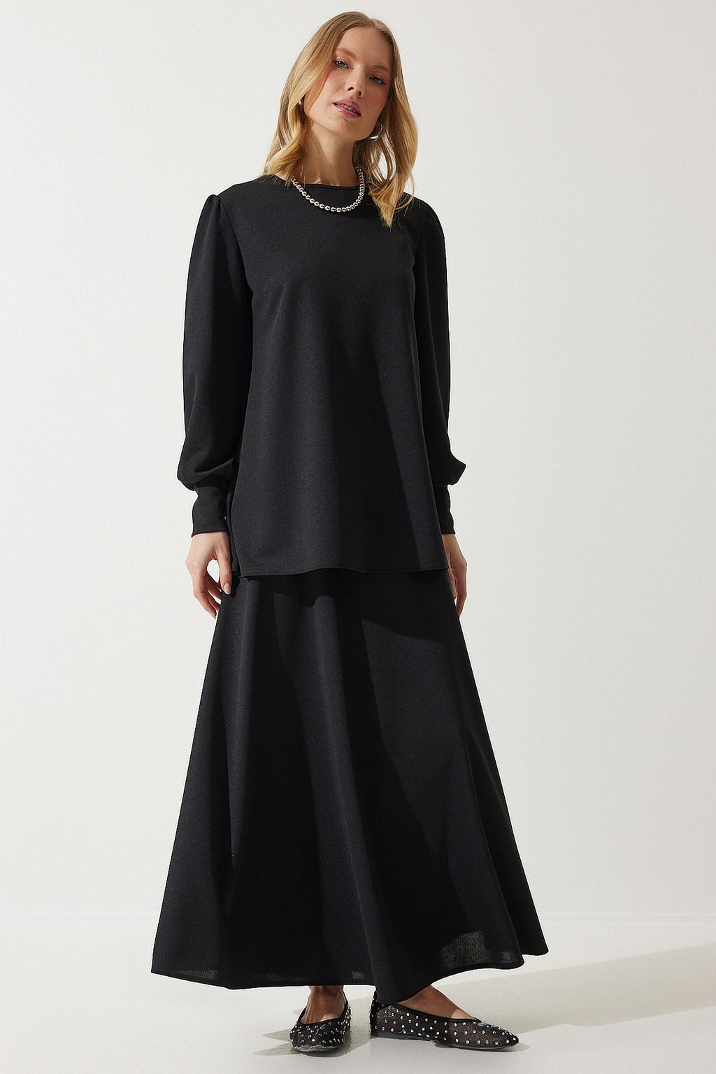 Women's Black Tunic Skirt Knitting Set DD01317
