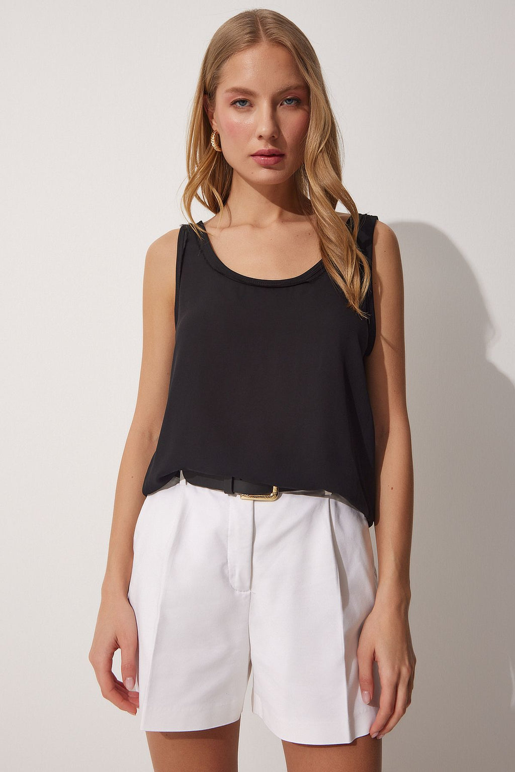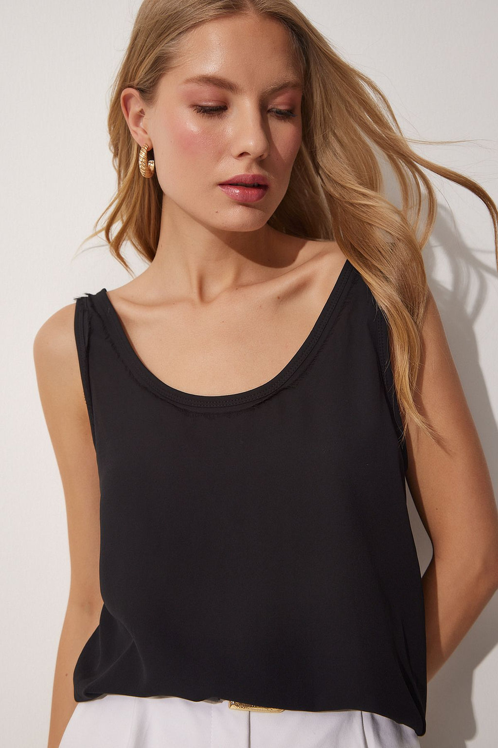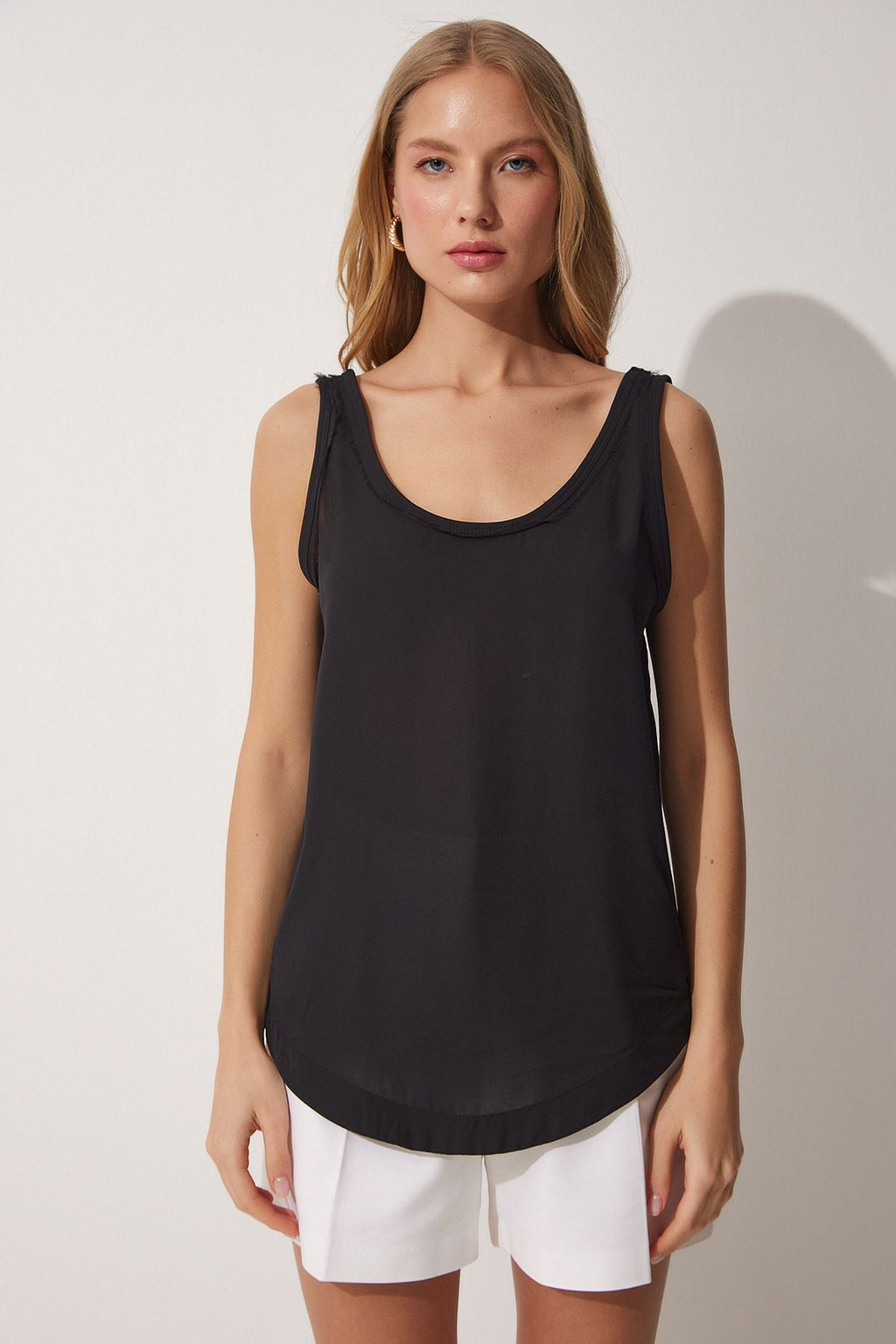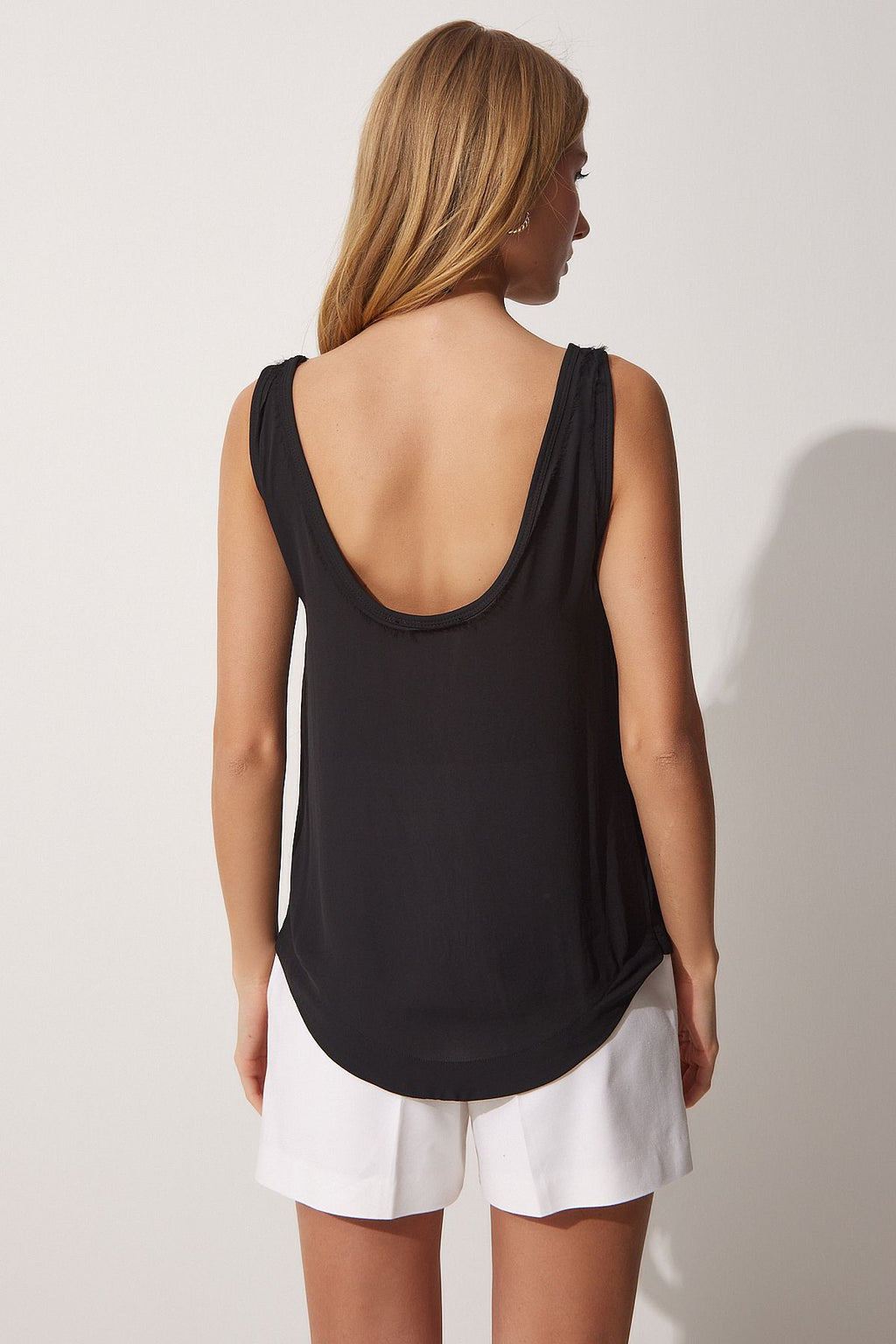 WOMEN'S BLACK U -DUK CREPIAL BLOSE RC00148