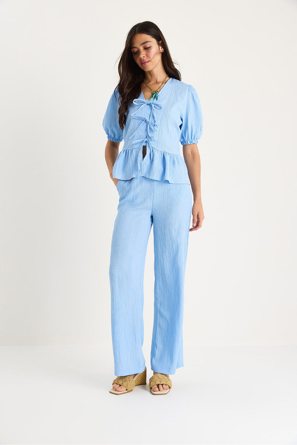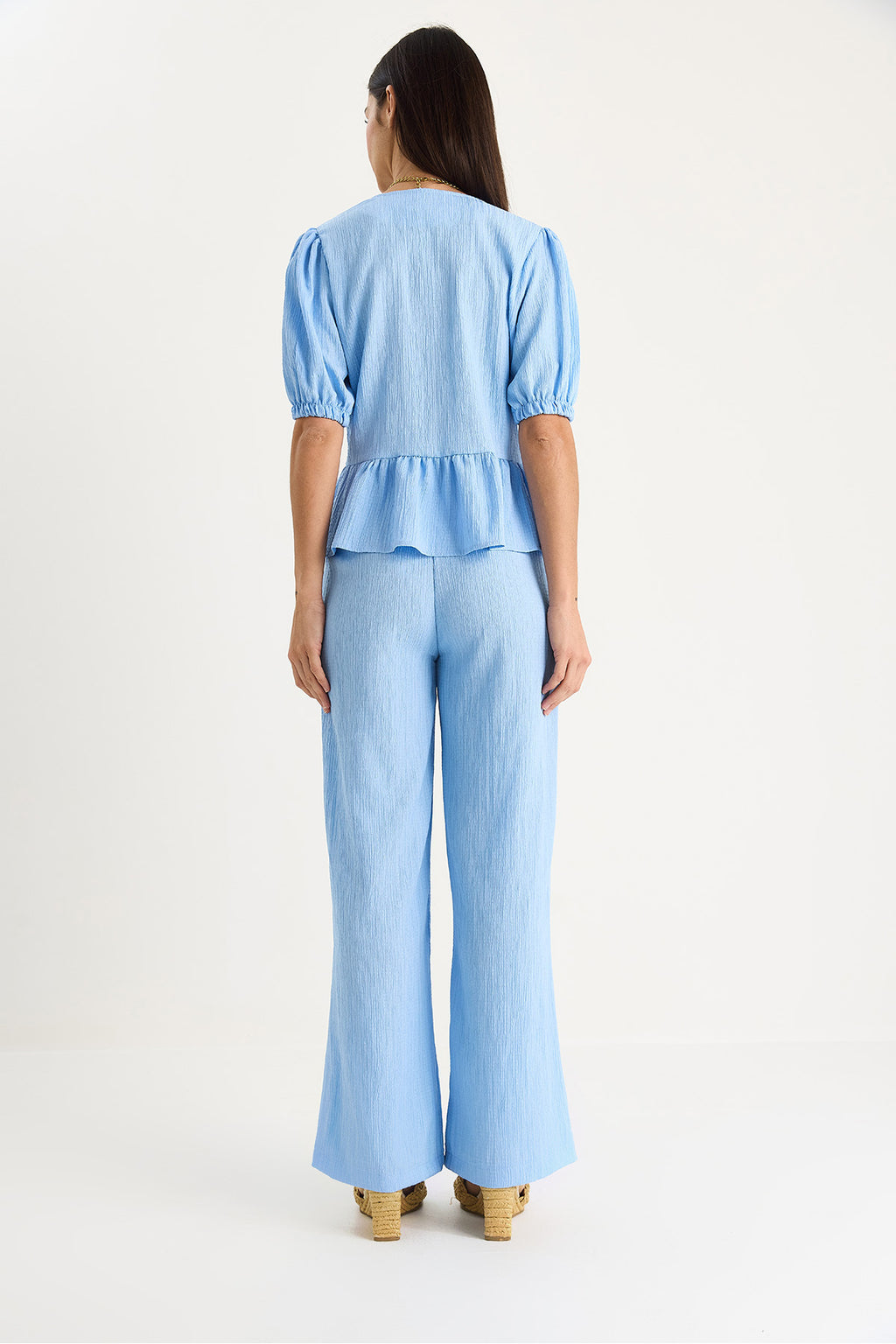 Women's Blouse with Tie Detail and Elastic Sleeves Trousers Wrap Suit 8015 60283448