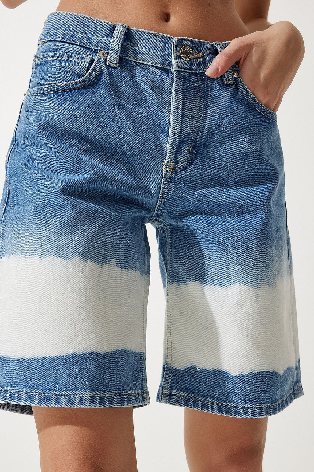Women's Blue Batik Patterned Denim Shorts UT00009