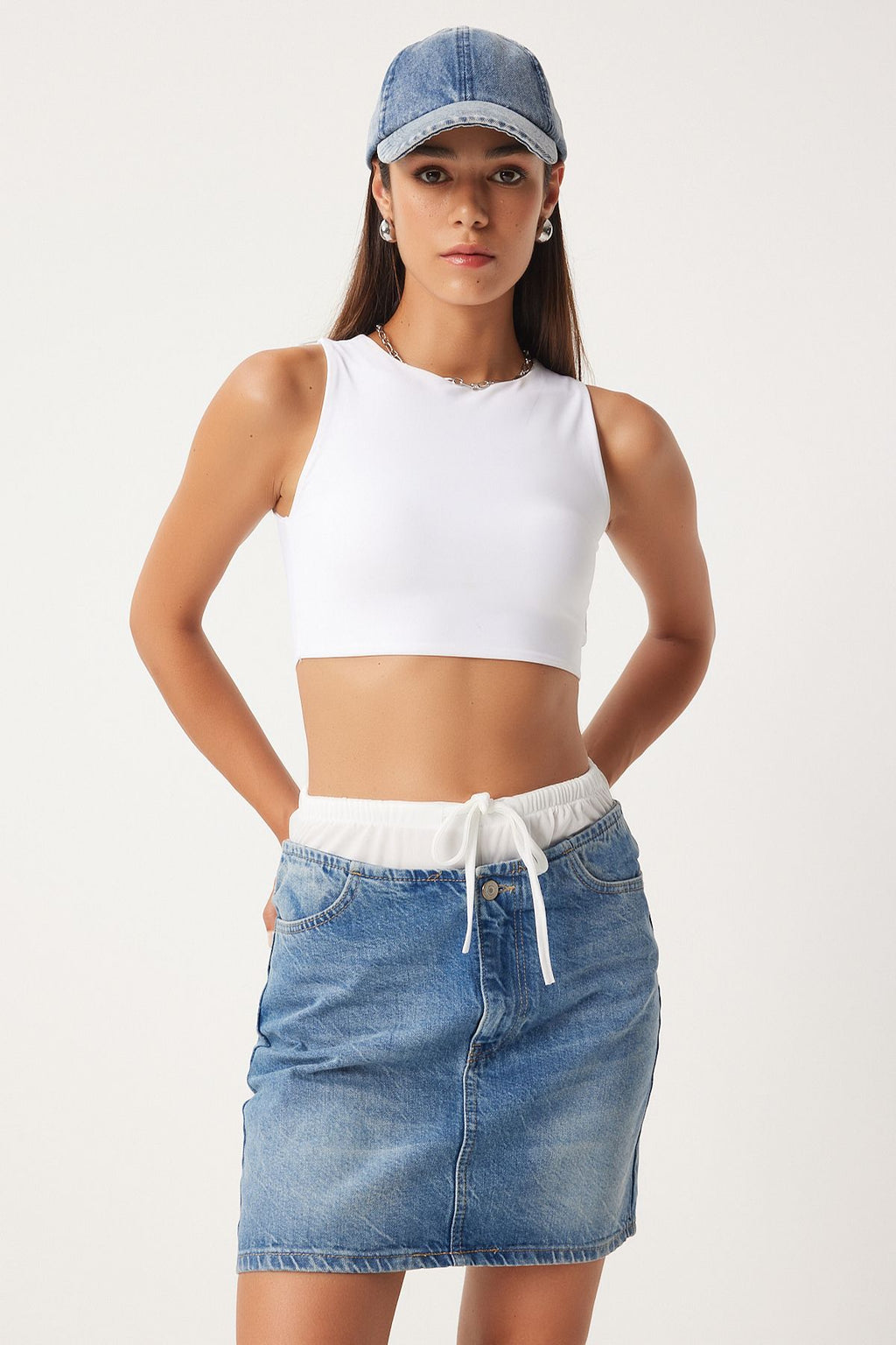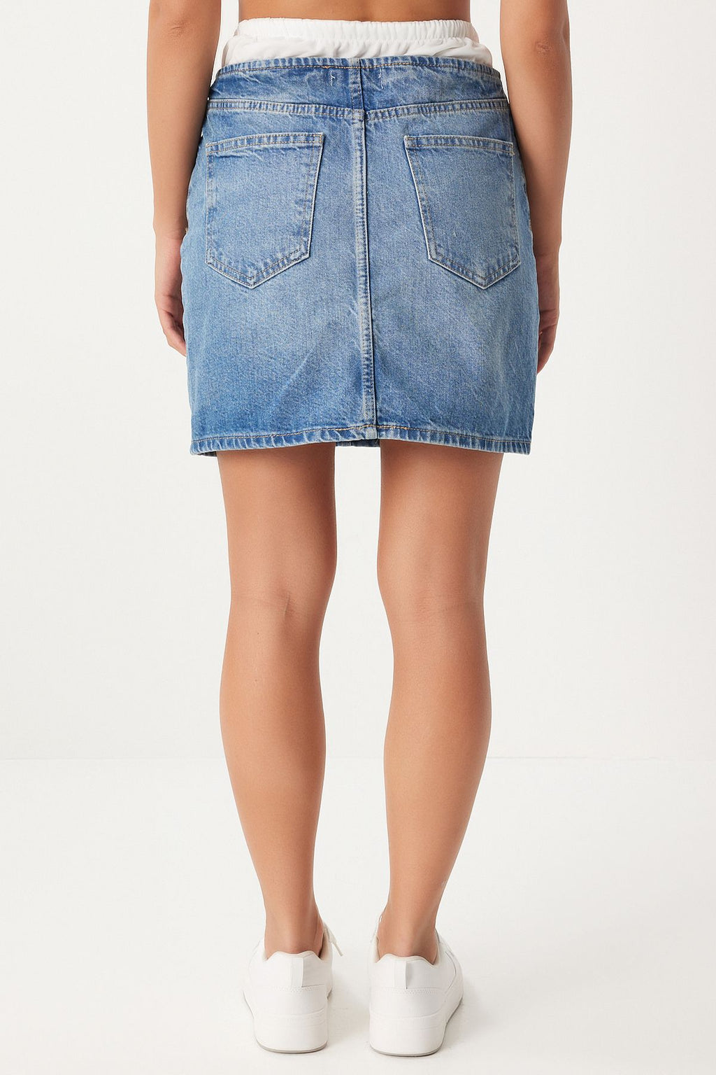 Women's Blue Boxer Detailed Denim Skirt FN03225