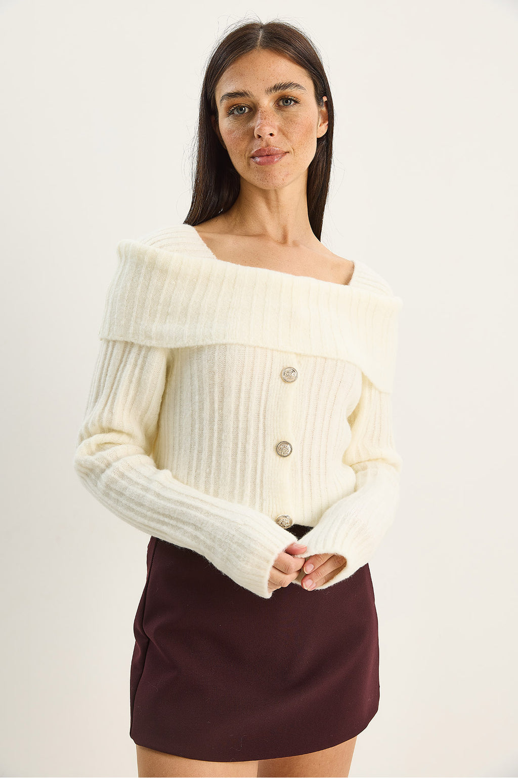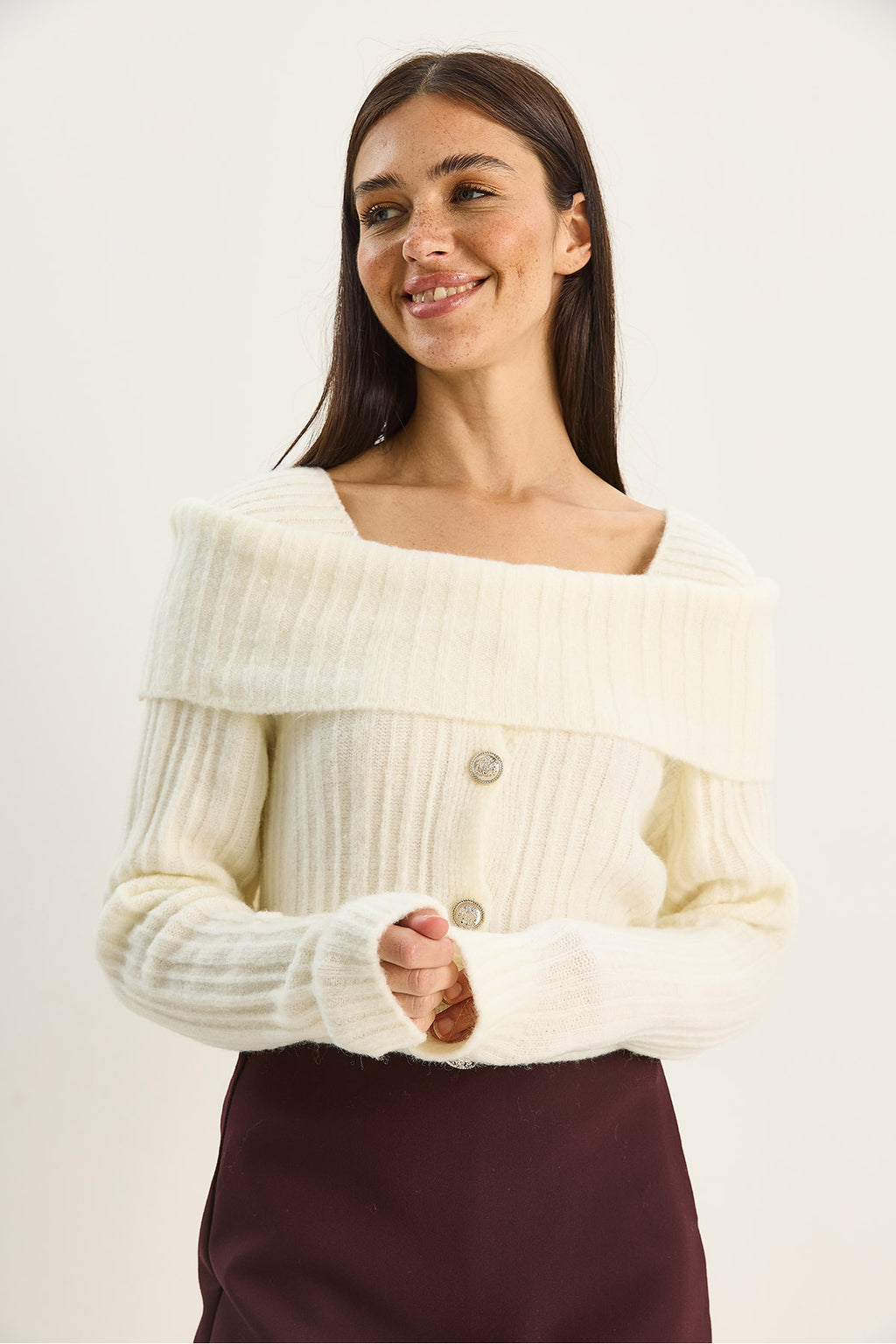Women's Boat Neck Button Detailed Knitwear Sweater 9059 60283778