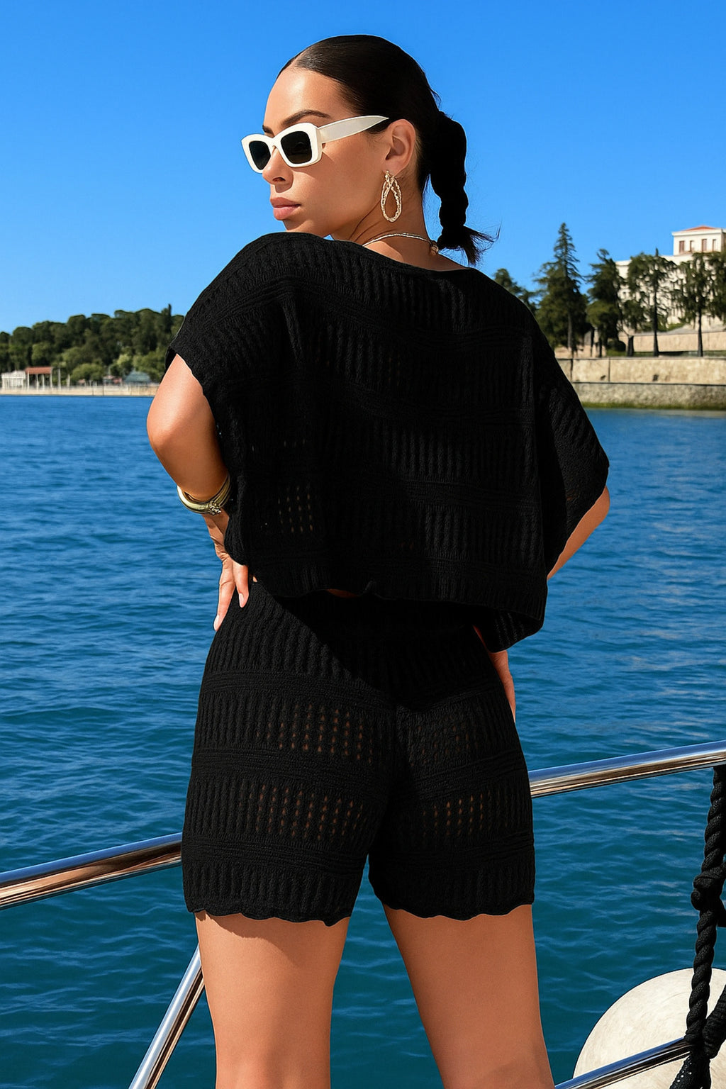 Women's Boat Neck Openwork Knitted Knitwear Bottom-Top Set 20251020