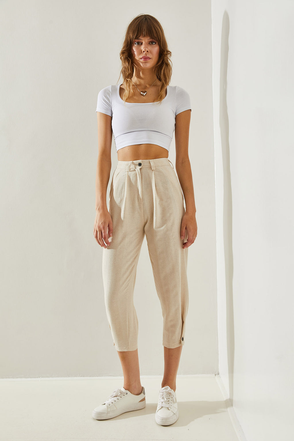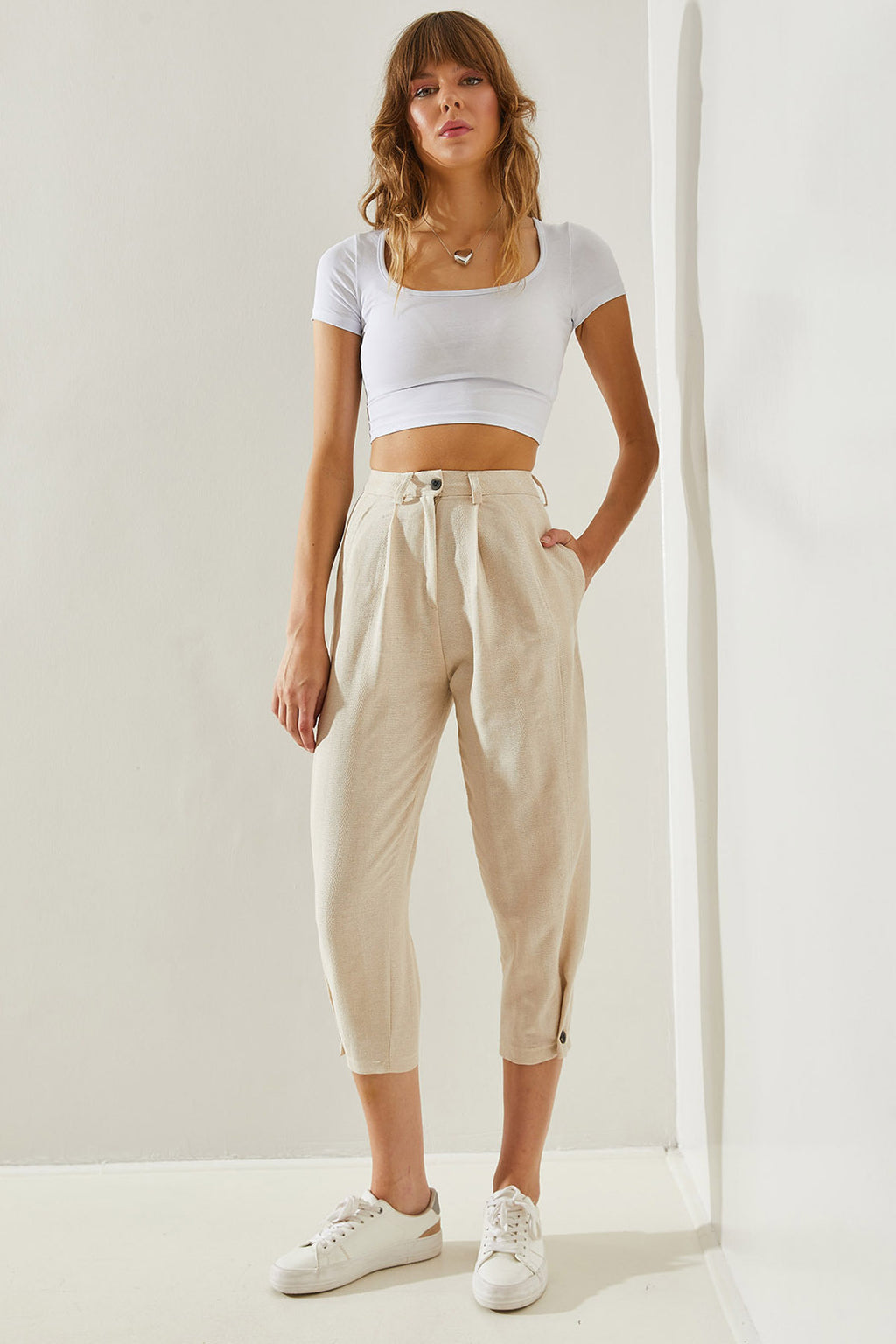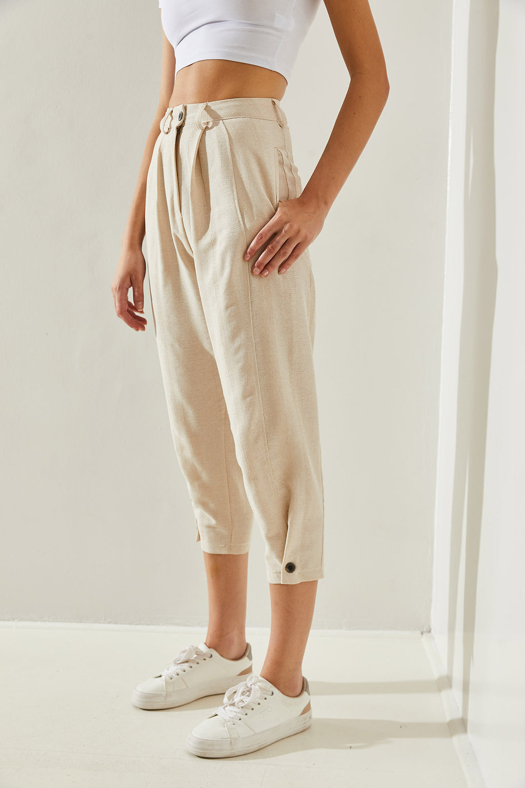 Women's Button Detailed Linen Textured Trousers 60251262