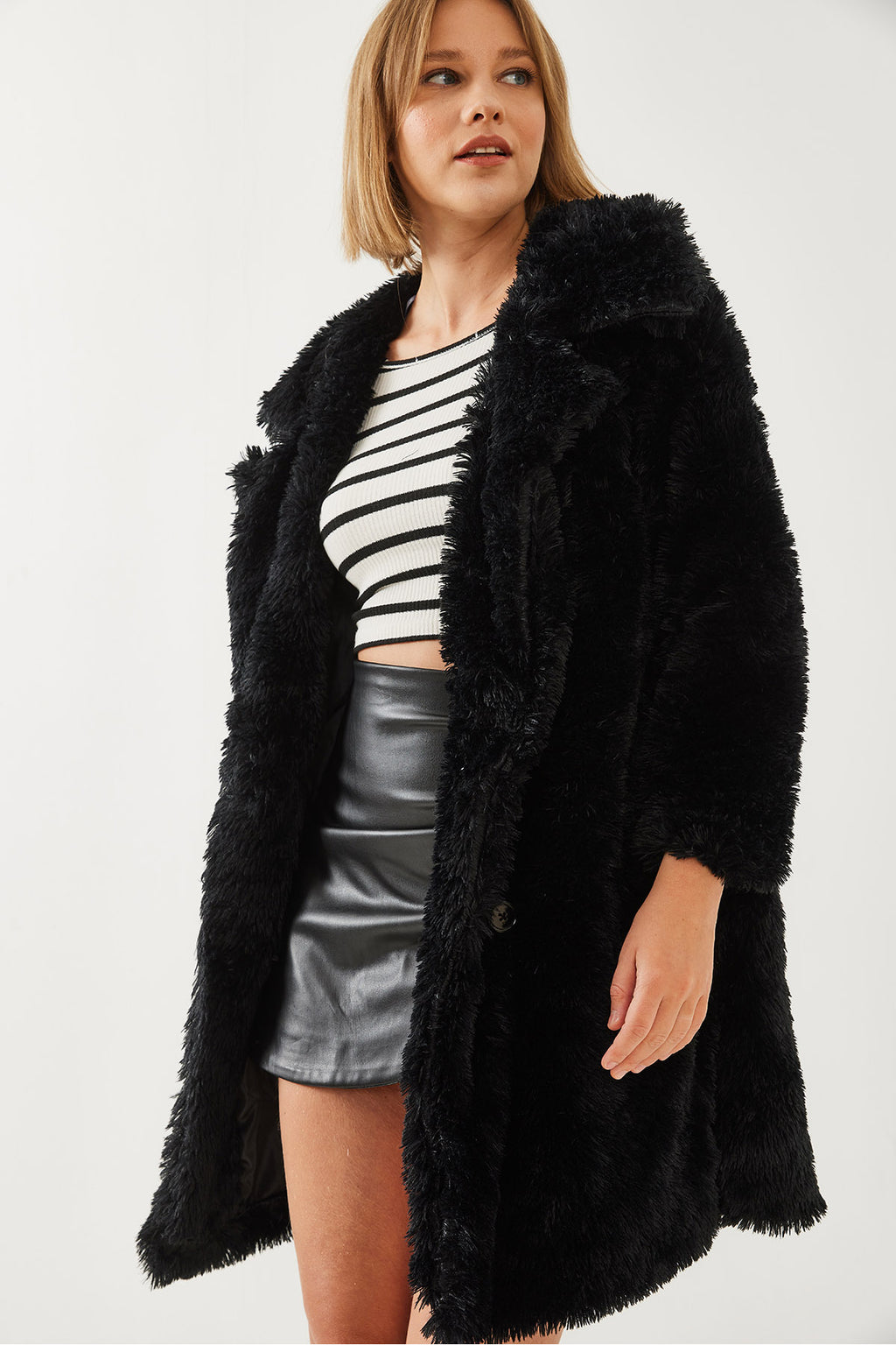 Women's Button Detailed Plush Coat 2480 60351114