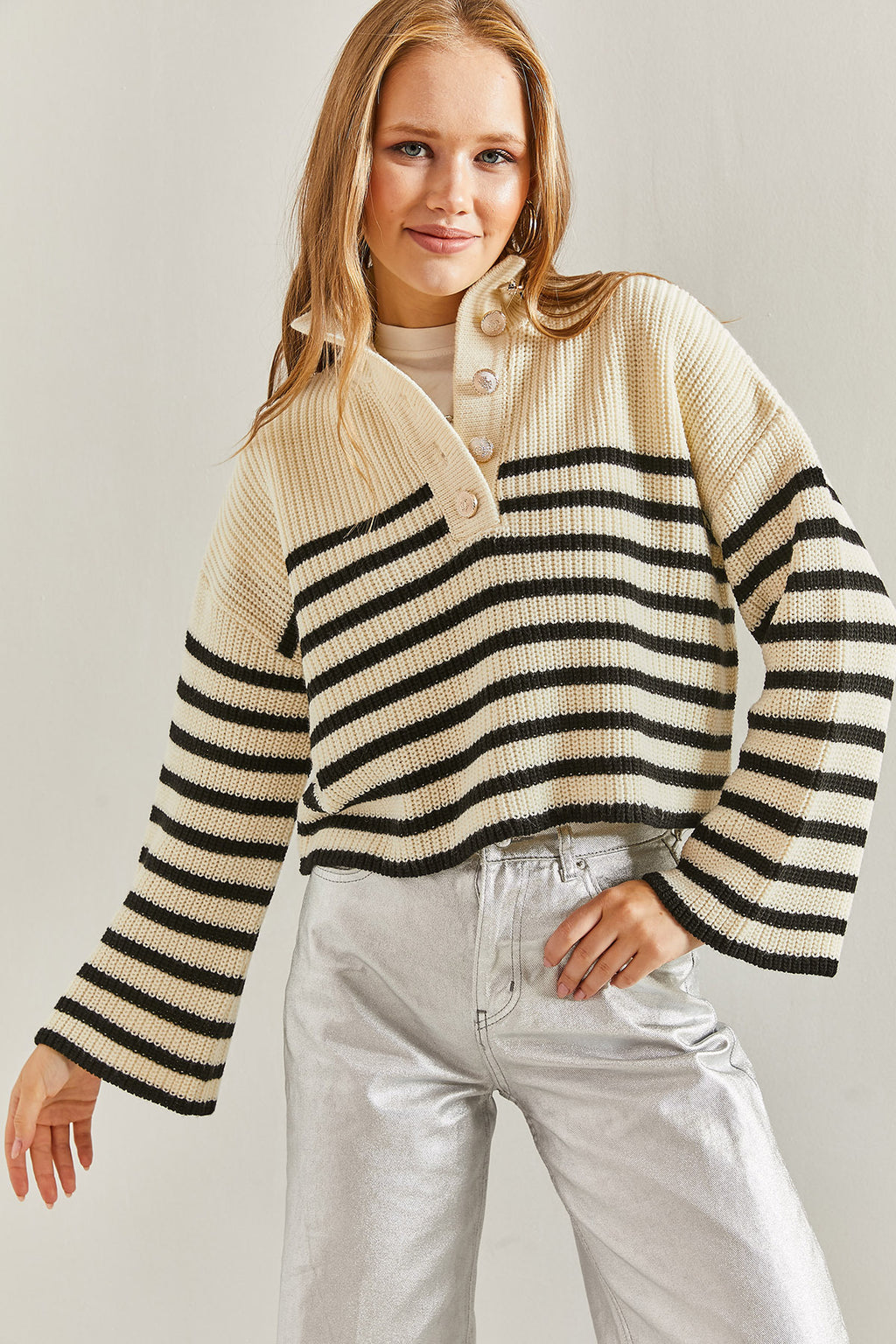 Women's Buttoned Collar Striped Knitwear Sweater 20234204