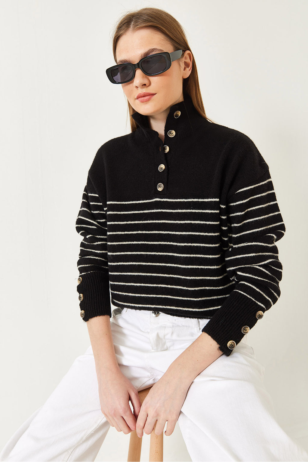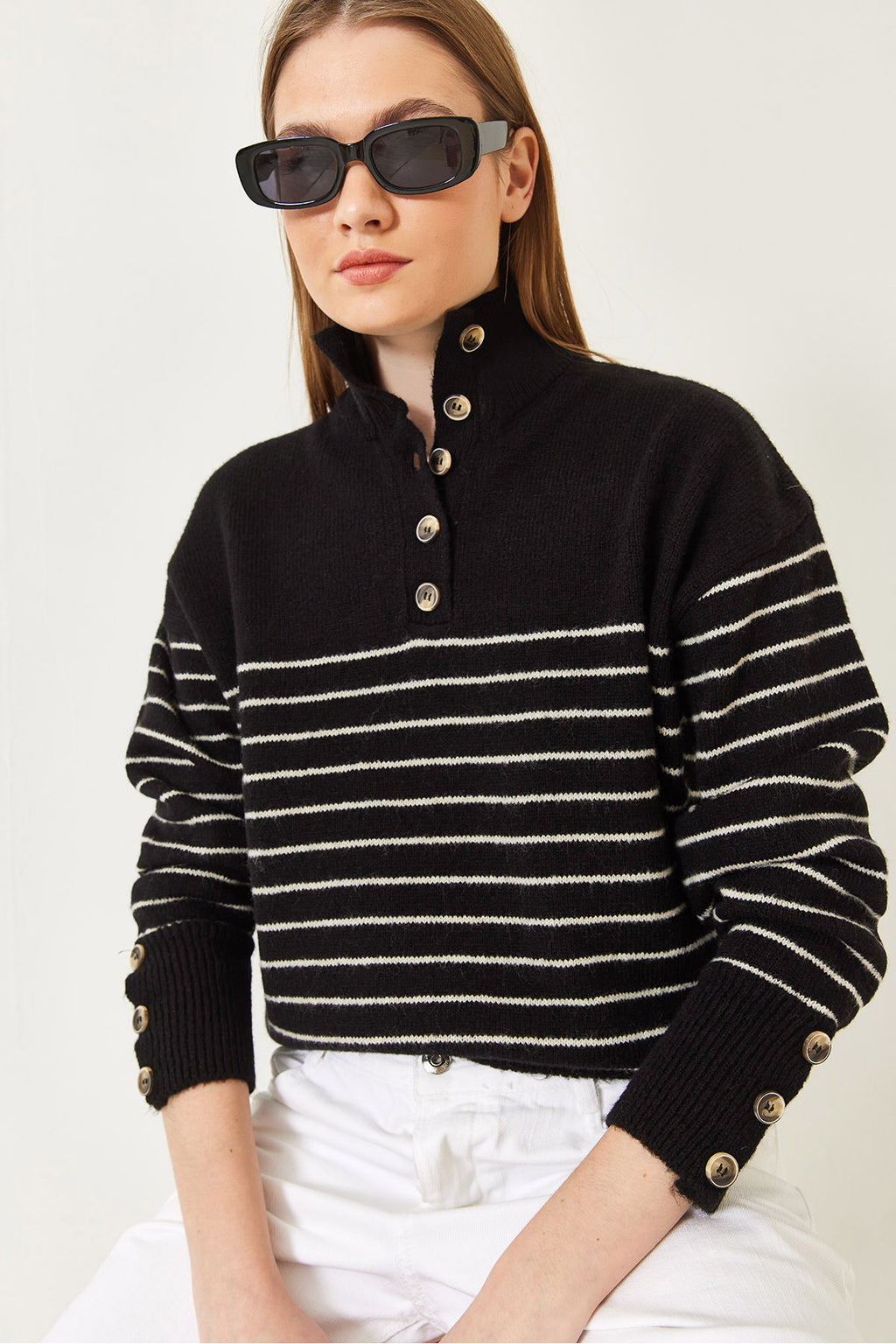 Women's Buttoned Sleeve Patchwork Knitwear Sweater 20247584
