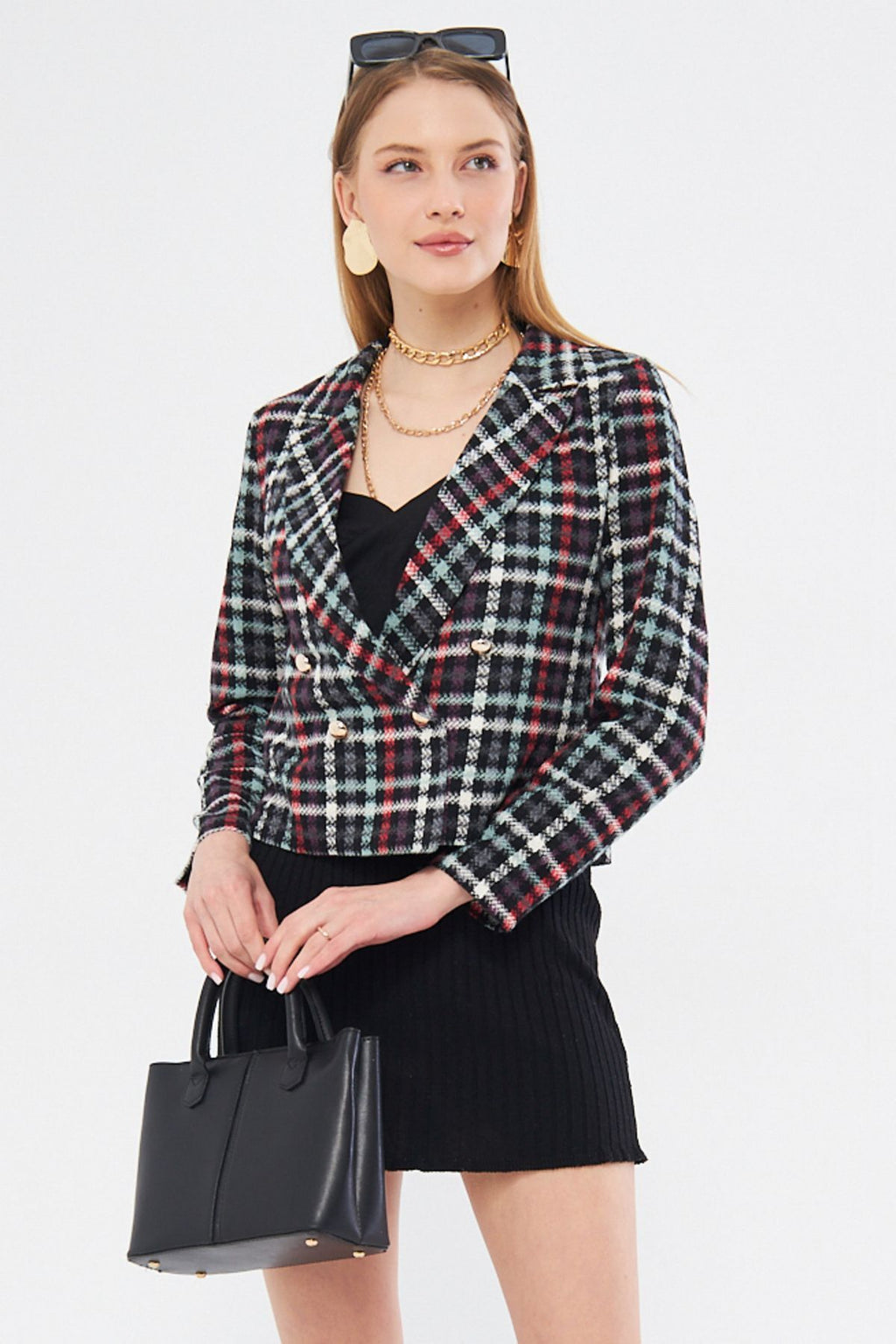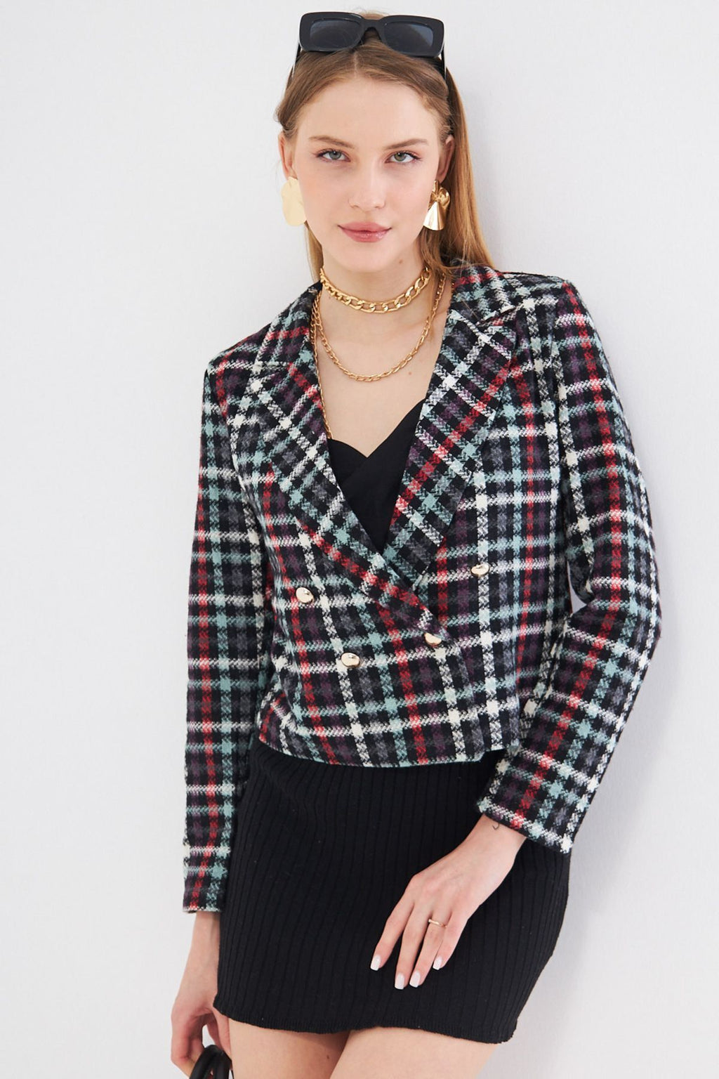 Women's Cagla Green Cruve Yaka Tüvit Crop Jacket ARM-24K001014